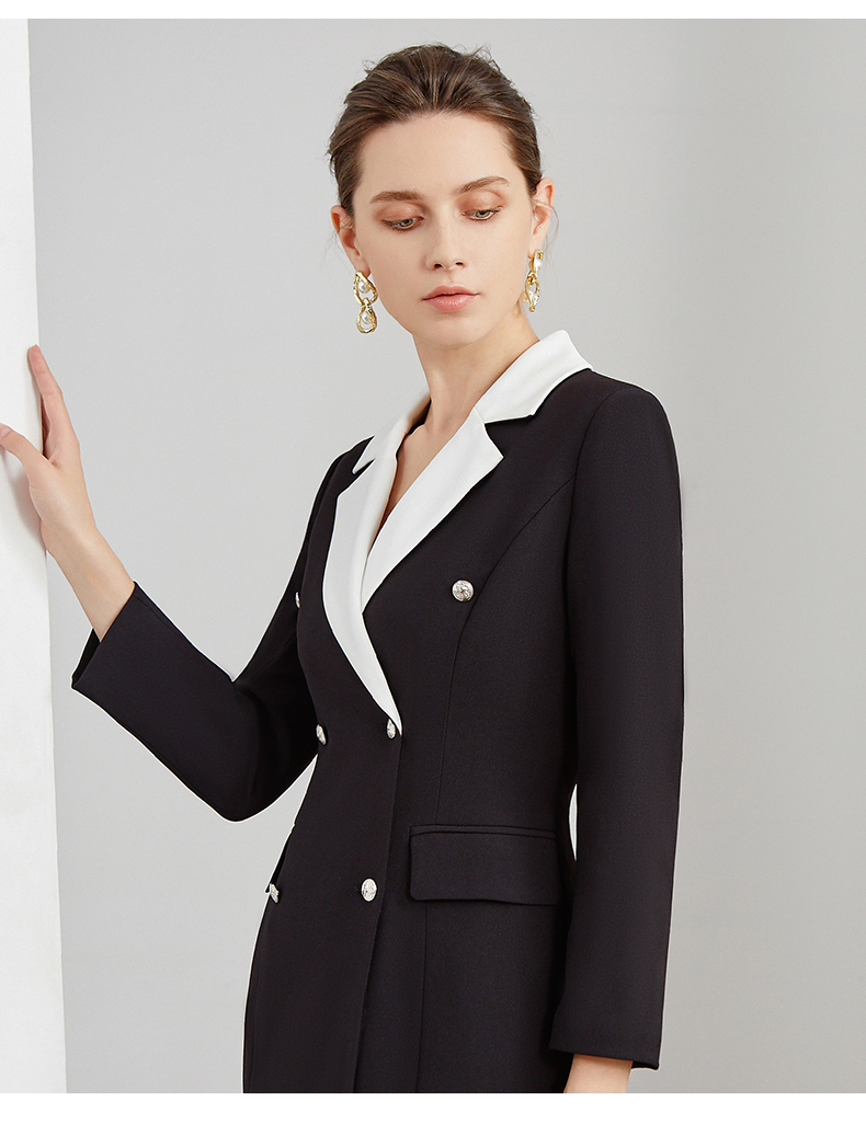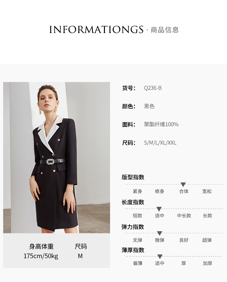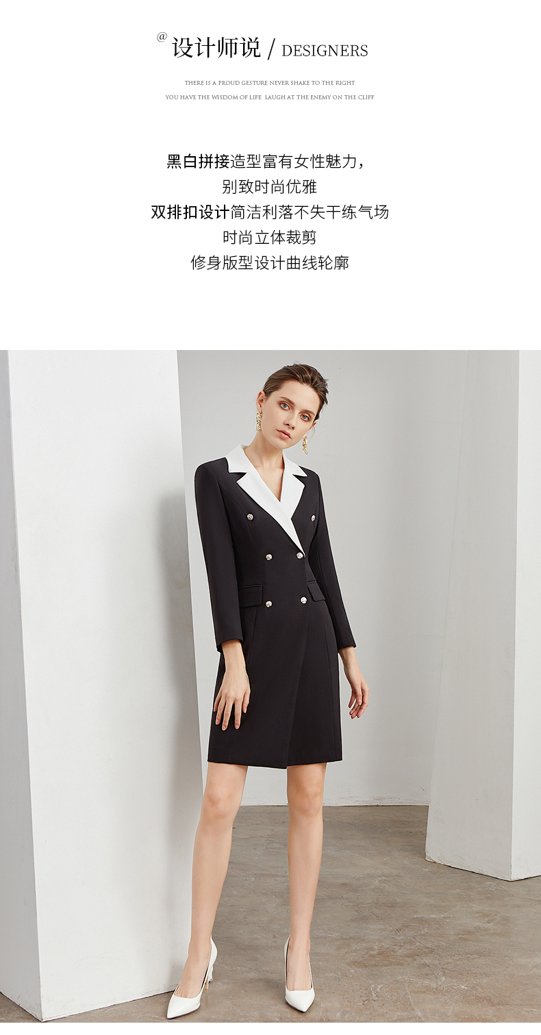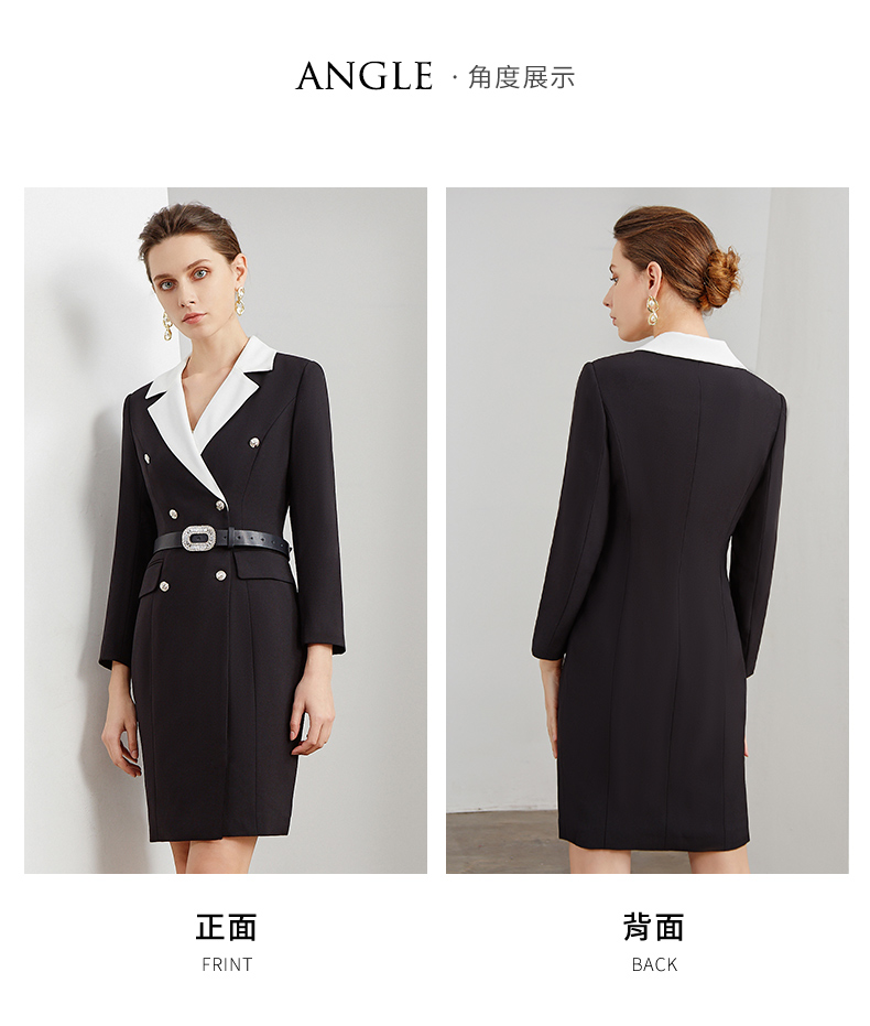 IWY/气质黑色连衣裙 拼接白色西装领职业装Q236+D1+GB