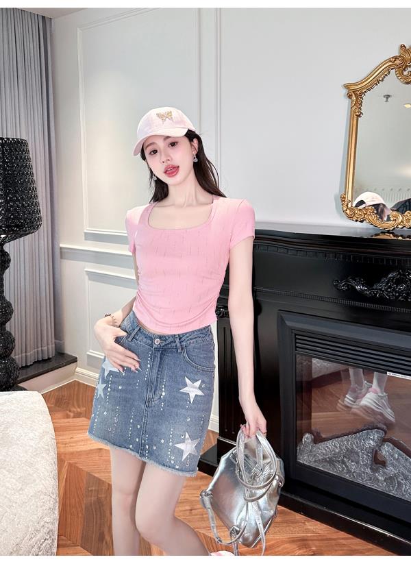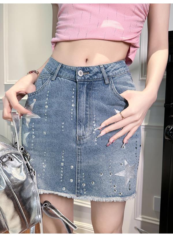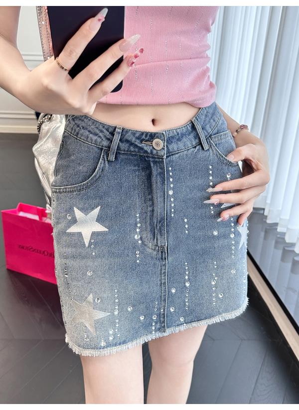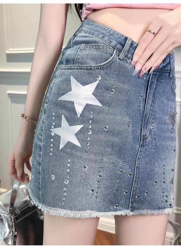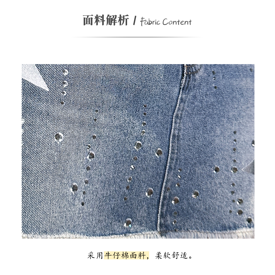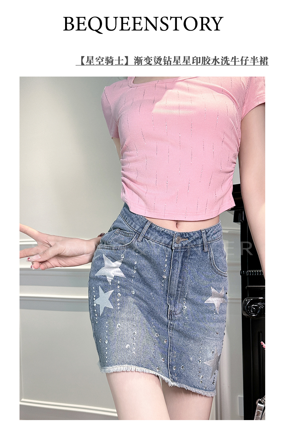 BeQueenStory【星空骑士】重工渐变烫钻星星印胶水洗牛仔半裙