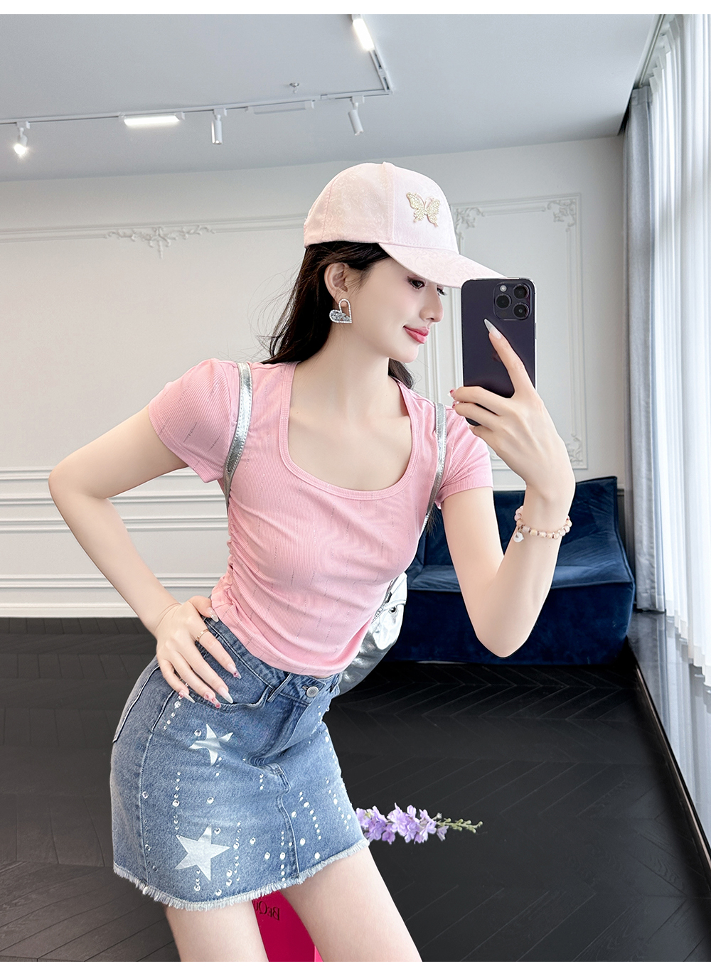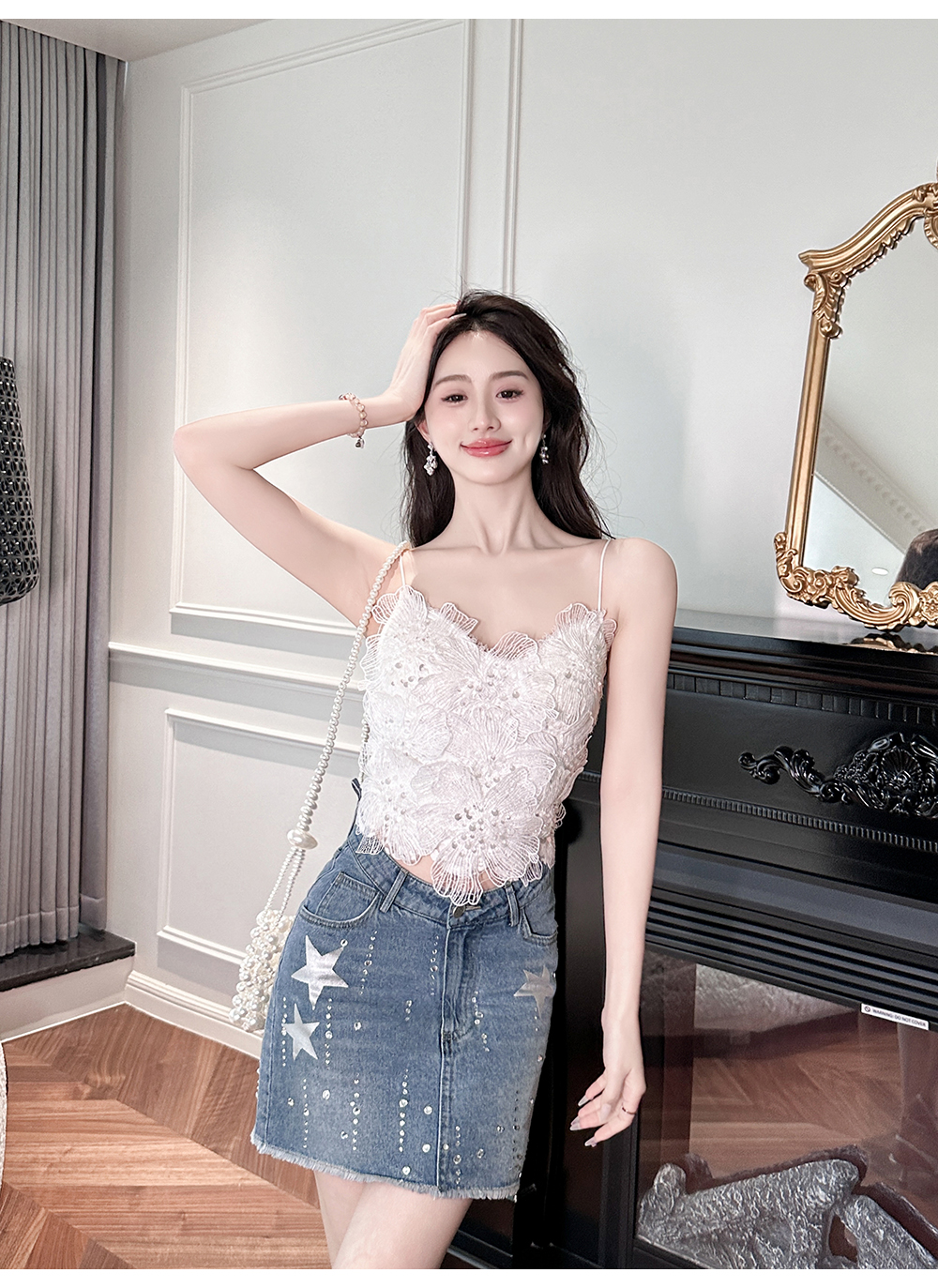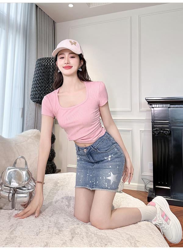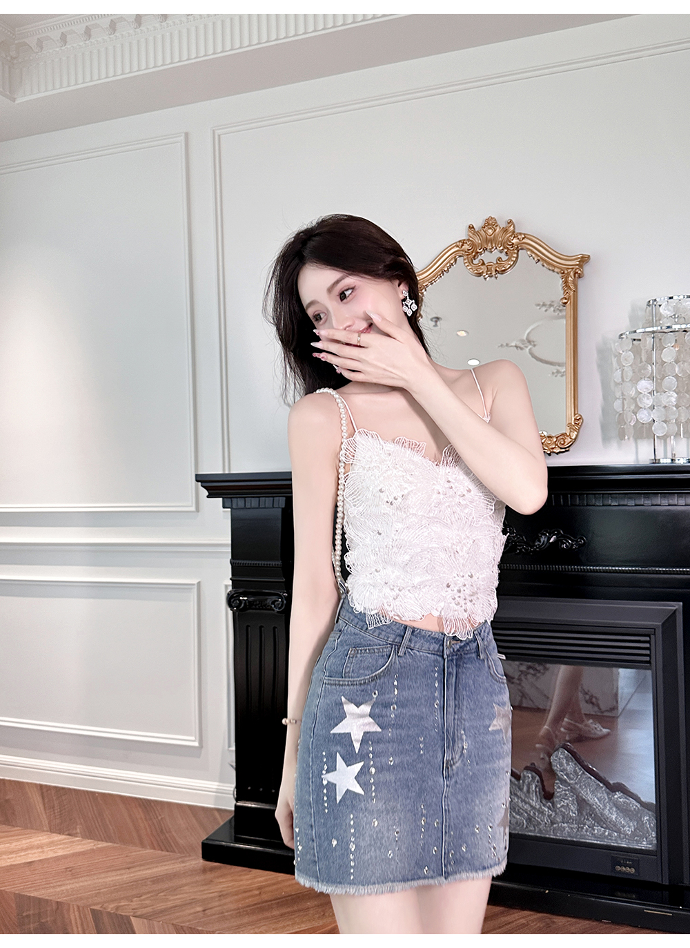 BeQueenStory【星空骑士】重工渐变烫钻星星印胶水洗牛仔半裙