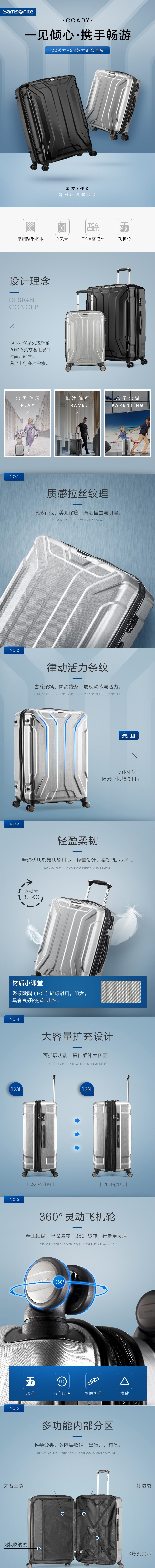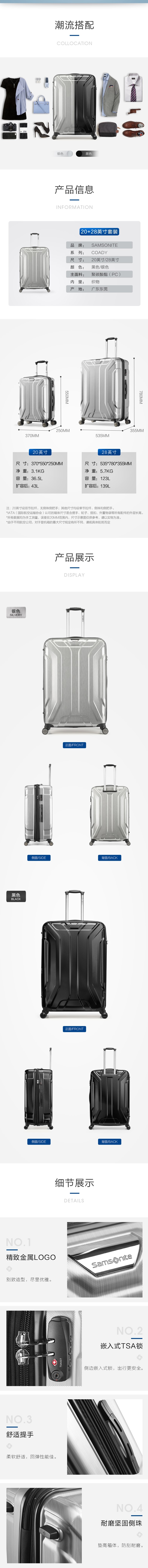 新秀丽COADY系列PC材质拉杆箱【套装】20寸+28寸款号TS7