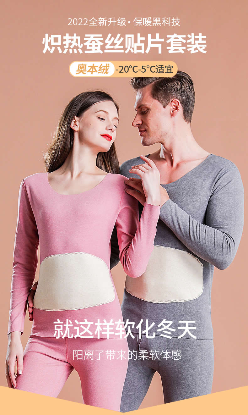 【两件立减20 三件立减40 加购物车再下单自动减价】秋冬蚕丝贴片德绒保暖内衣套装 男女款 亲子款情侣款 加倍保暖 恒温秋衣 无痕修身
