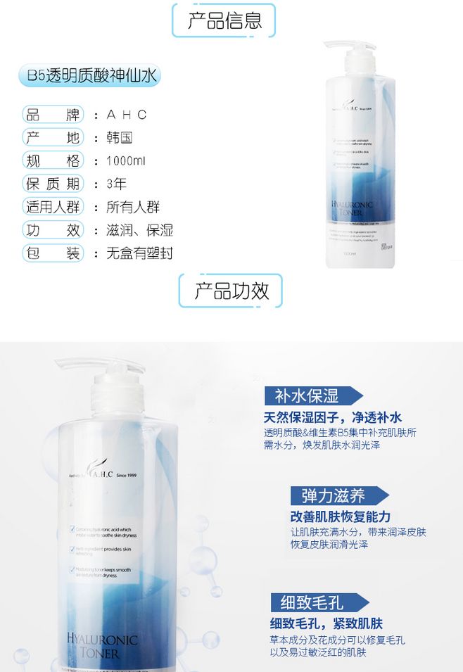 【现货】AHC/ B5透明质酸玻尿酸精华 神仙水1000ml