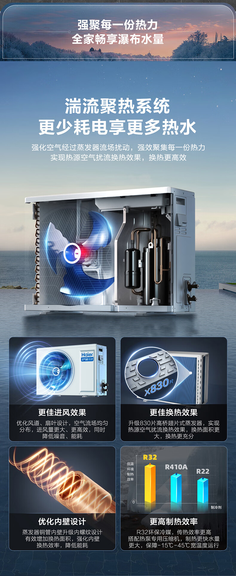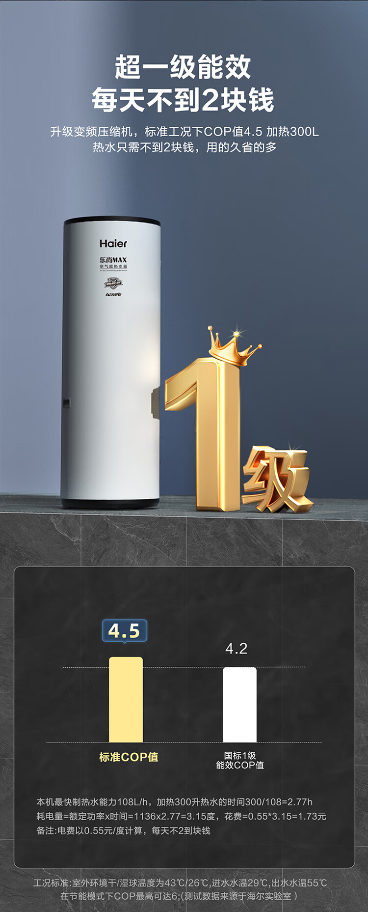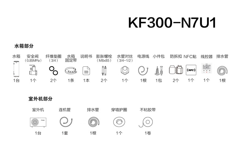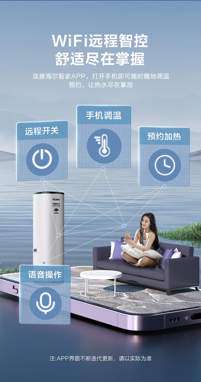 海尔(Haier)空气能热水器300升全变频超一级能效2匹电辅80℃高水温WIFI智控 KF300-N7U1(6-10人)