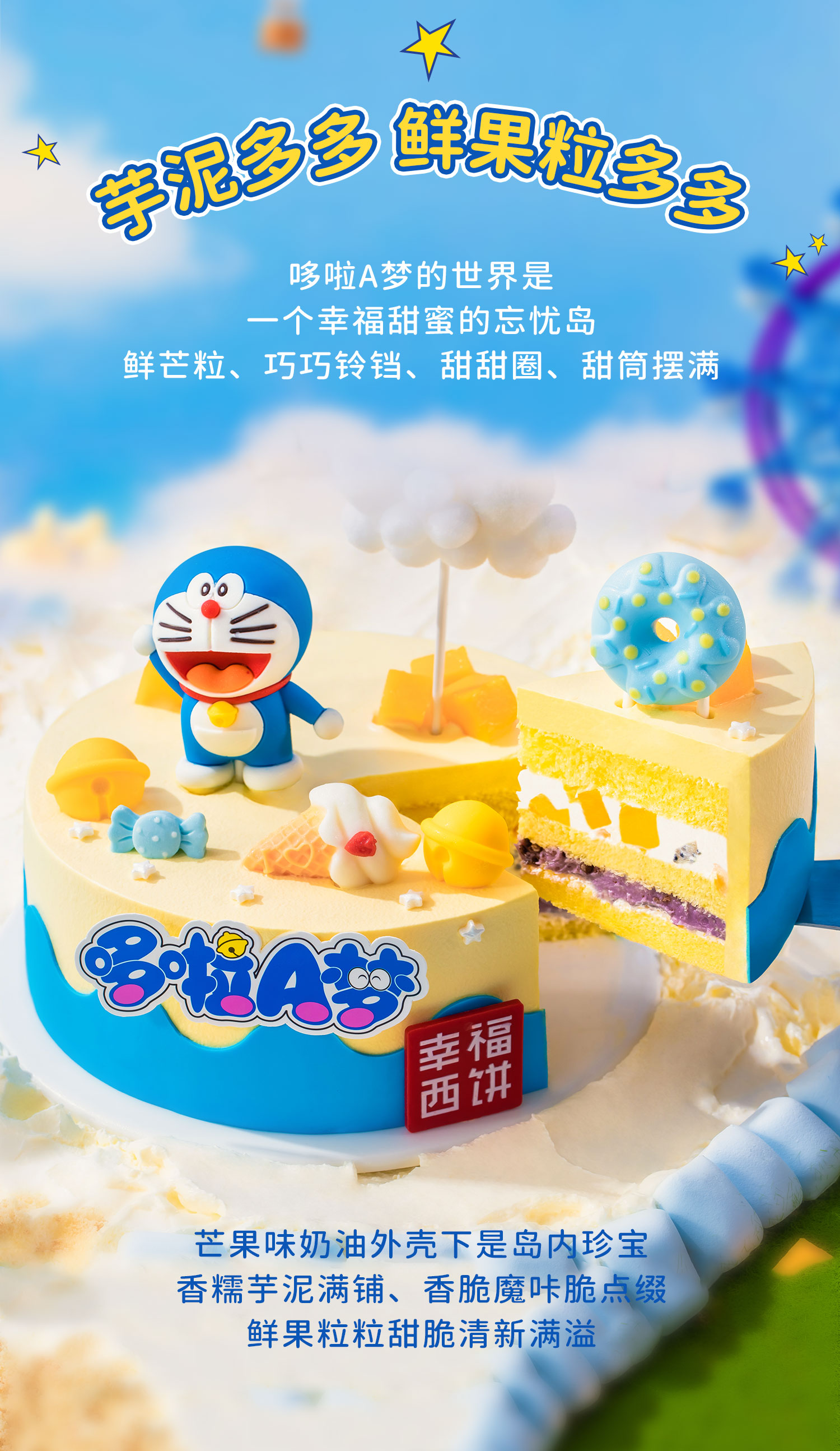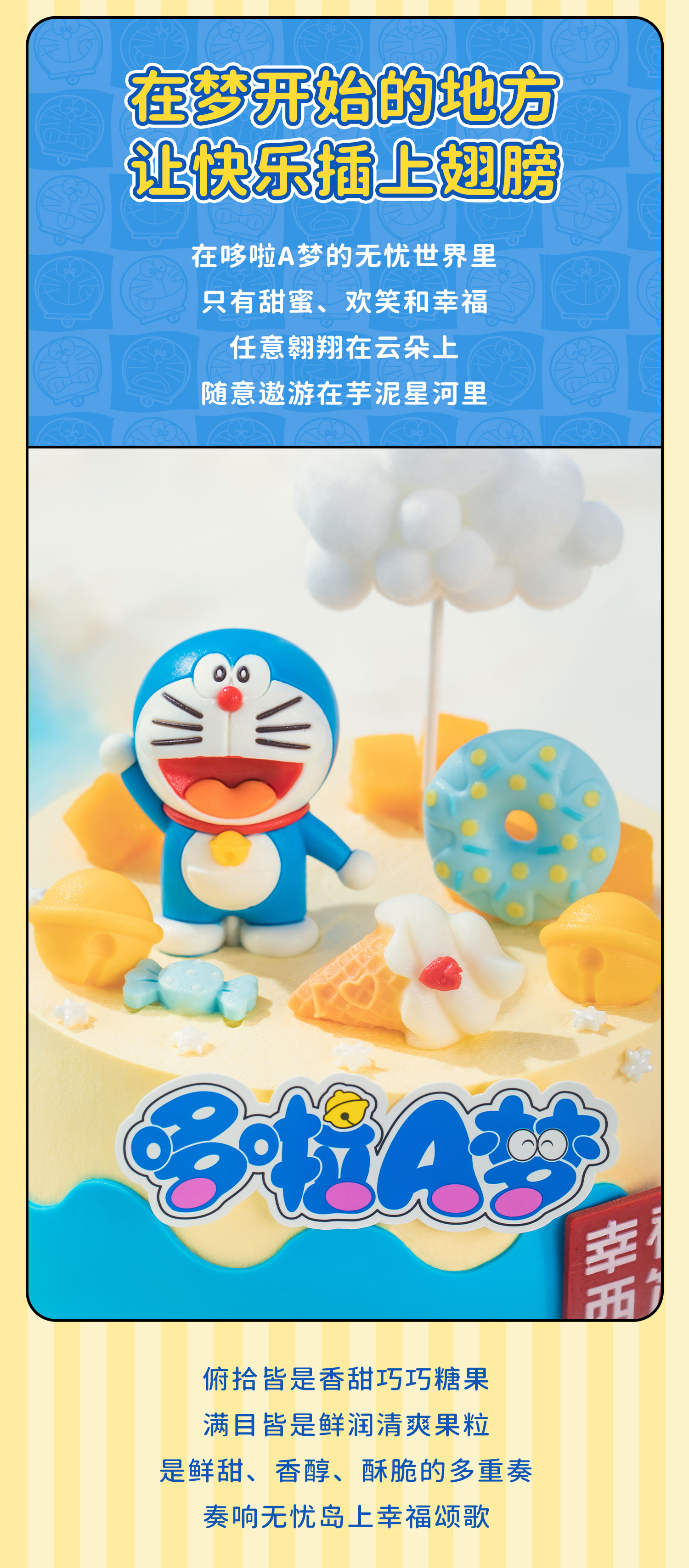 【幸福「哆哆」】哆啦A梦正版授权儿童生日蛋糕,欢迎来到哆啦A梦的幸福乐园探索甜蜜宝藏,品味芋泥、果粒的多重口感,让幸福在口中绽放