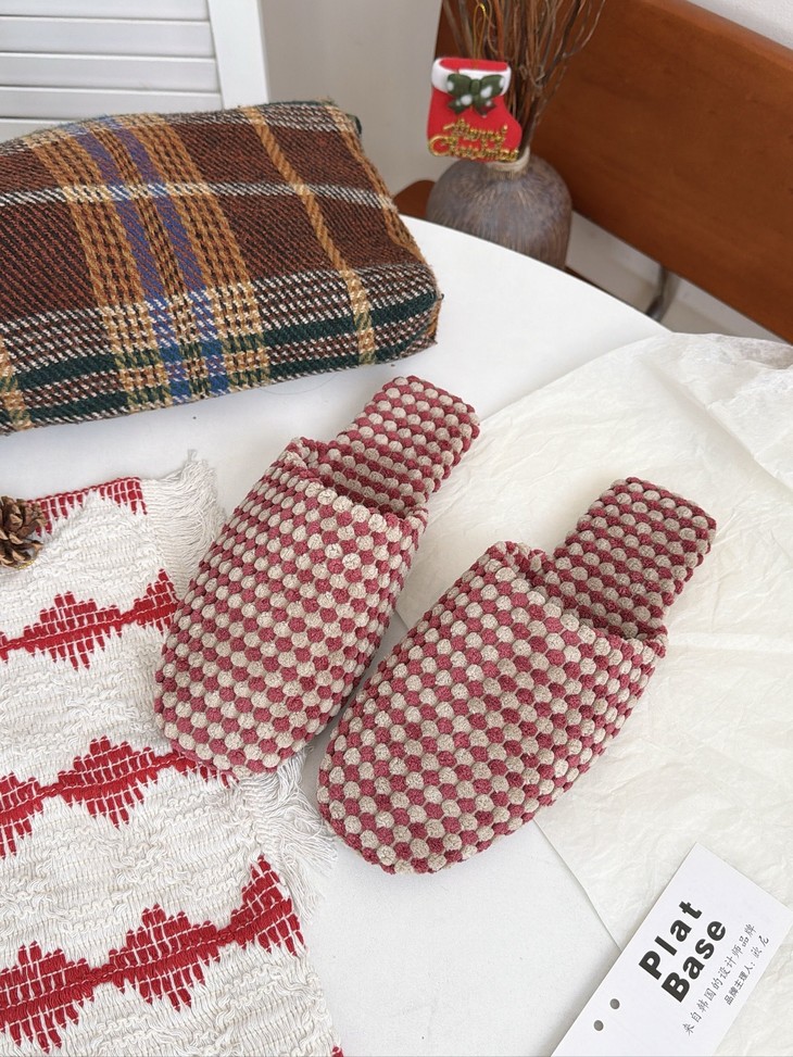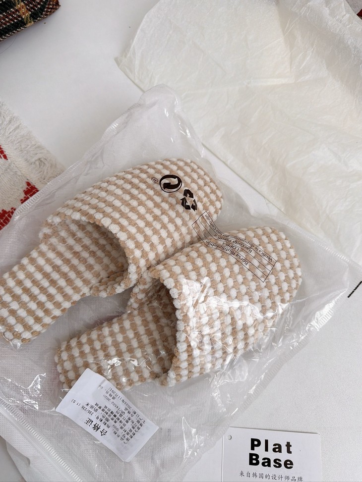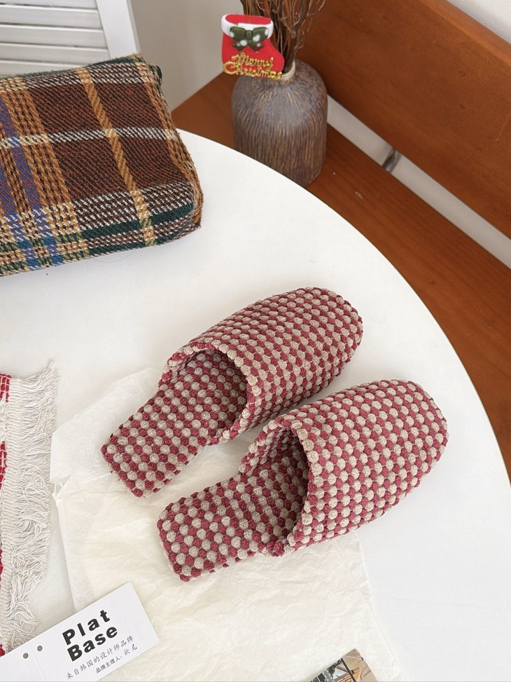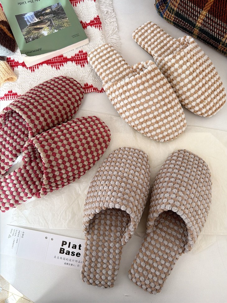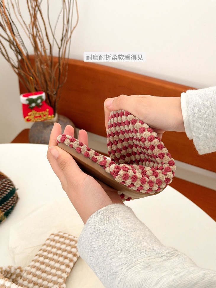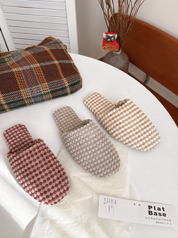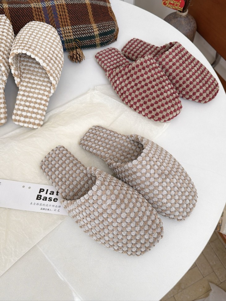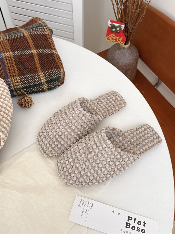 𝗣𝗹𝗮𝘁 𝗕𝗮𝘀𝗲双色菠萝绒棉拖