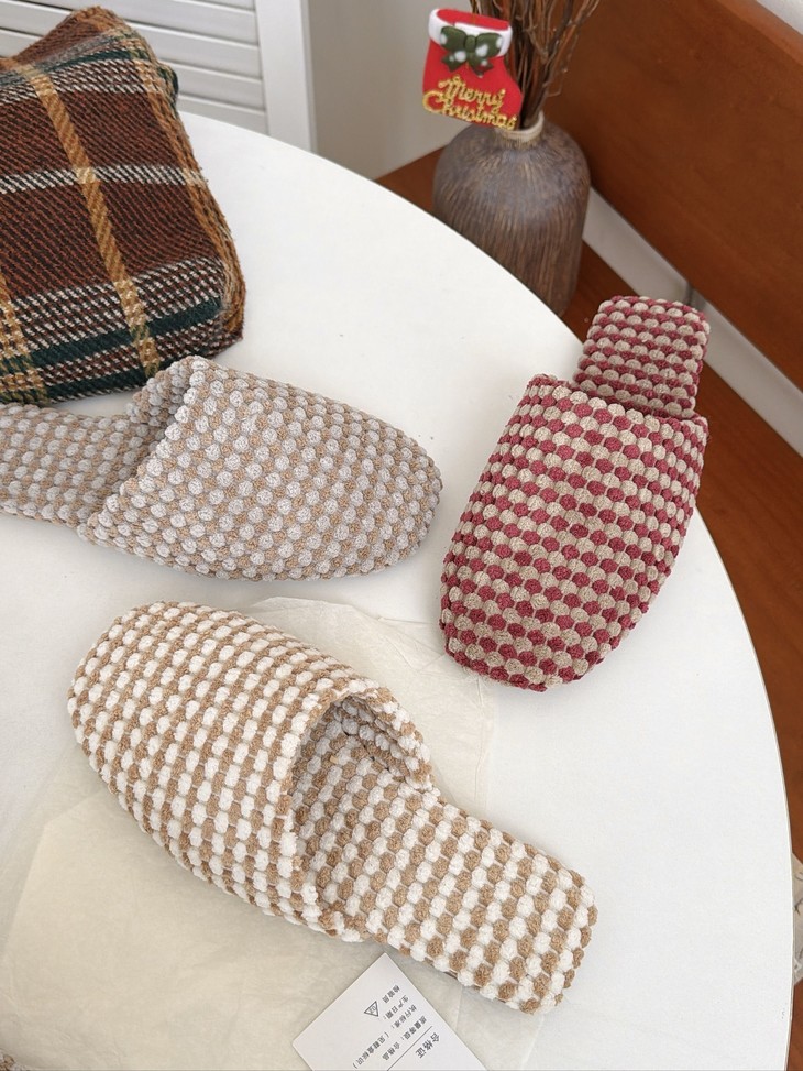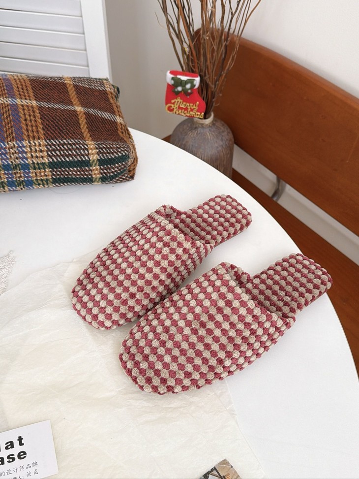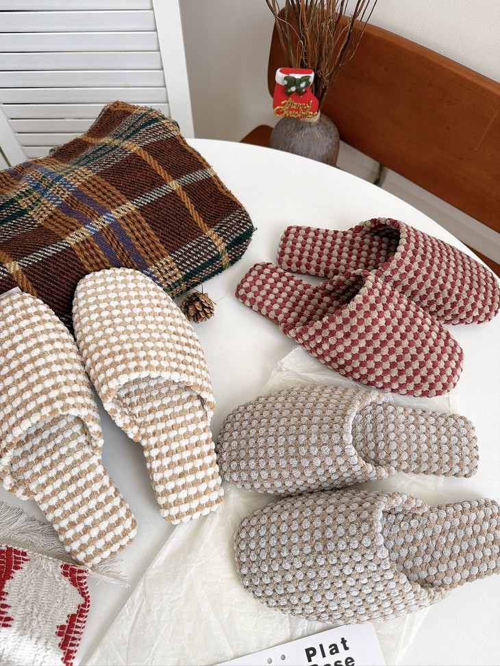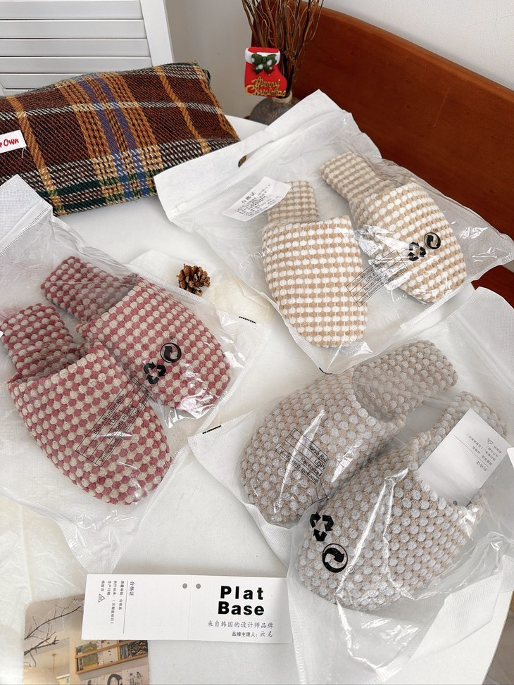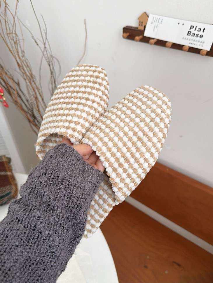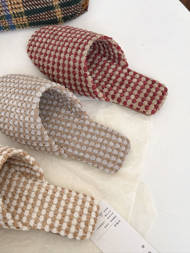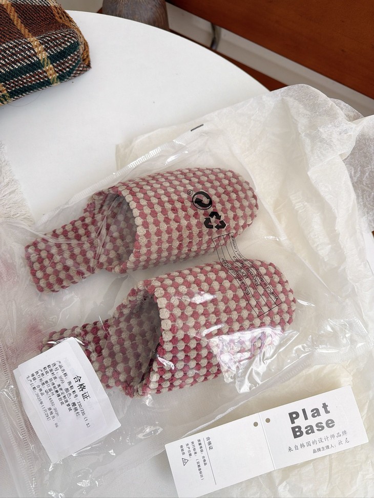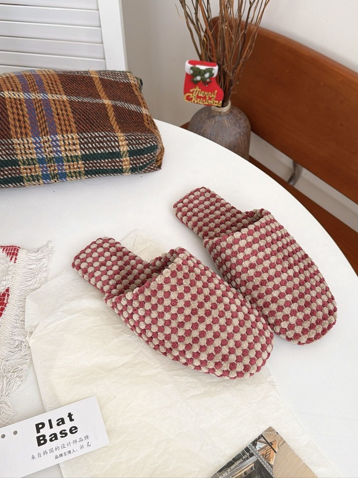 𝗣𝗹𝗮𝘁 𝗕𝗮𝘀𝗲双色菠萝绒棉拖