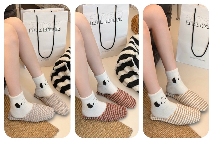 直接沦陷一整个软fufu裹住脚的幸福感谁懂啊 韩里韩气的配白袜黑袜就是慵懒韩系学姐那味儿~光脚穿也巨暖和!