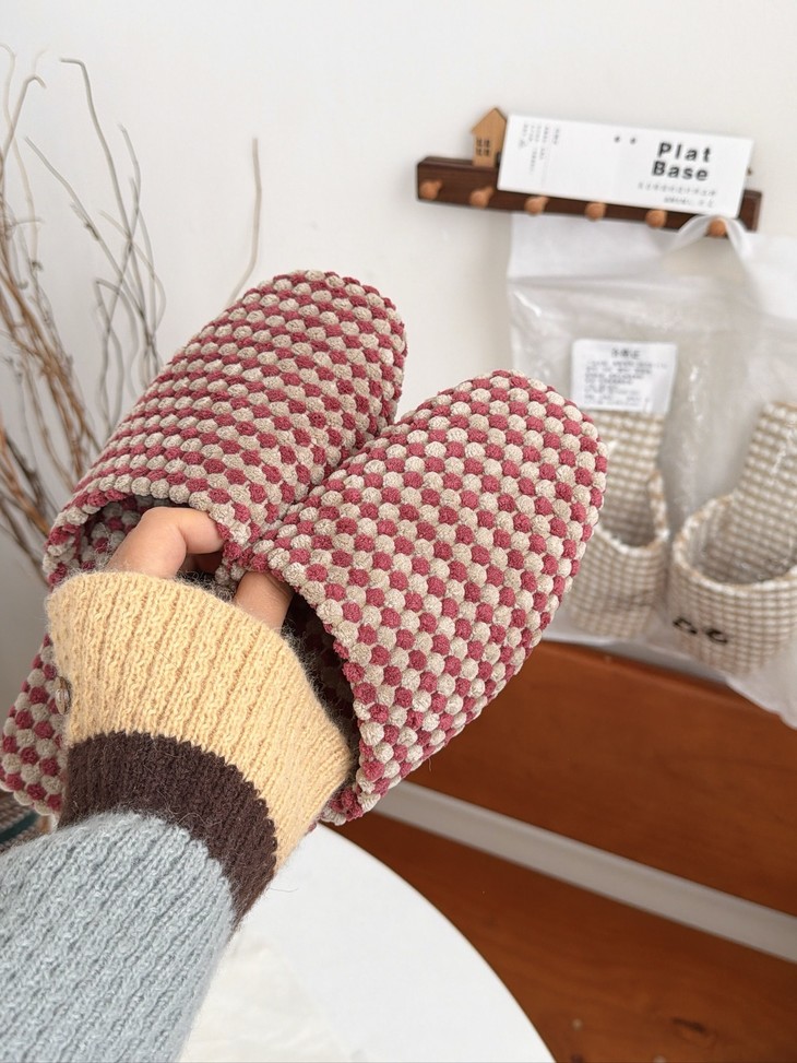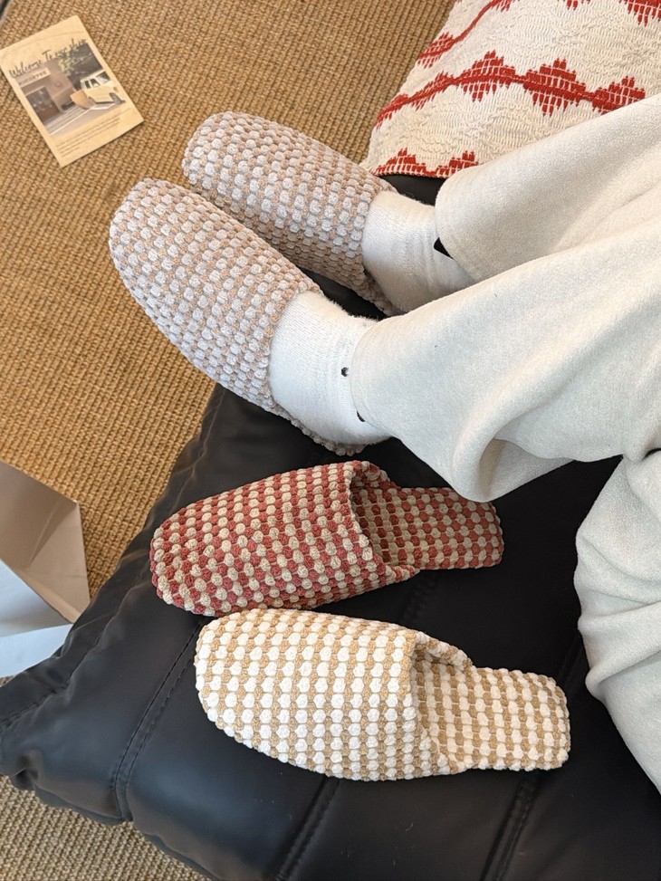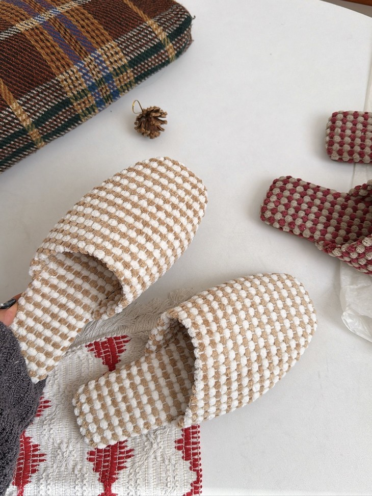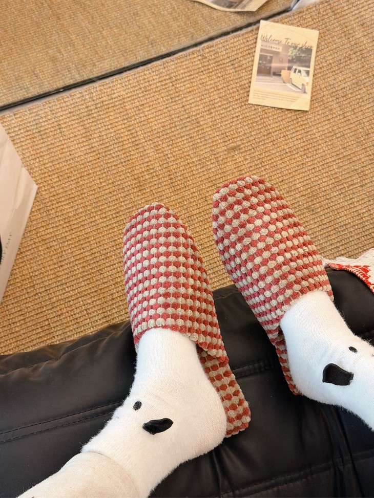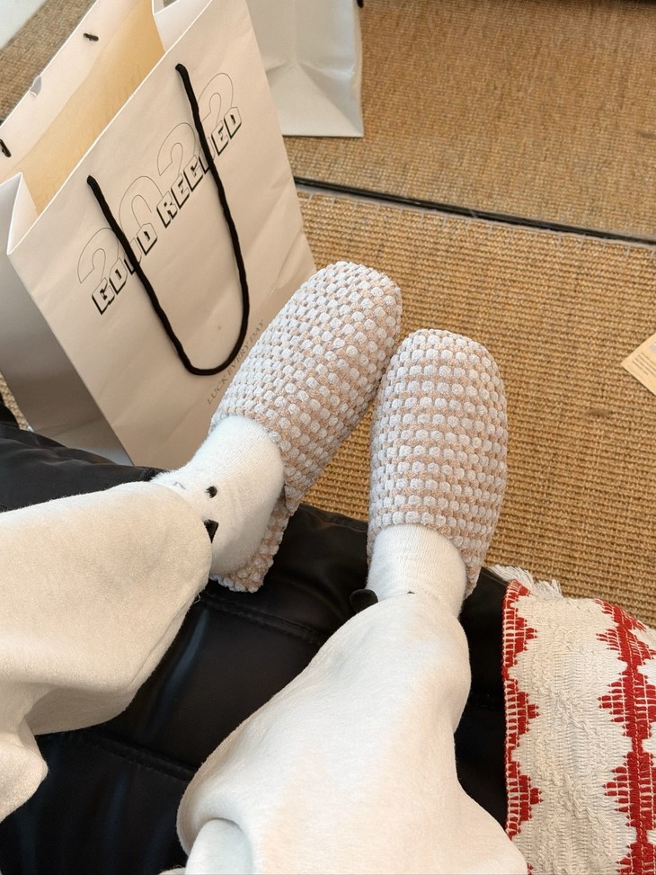 这双加绒菠萝绒拖鞋真的太懂女生了 暖、软、休闲、美全占了! 毛茸茸的触感超级治愈,保暖力拉满 寒风天也能暖暖出门,双脚像被拥抱一样