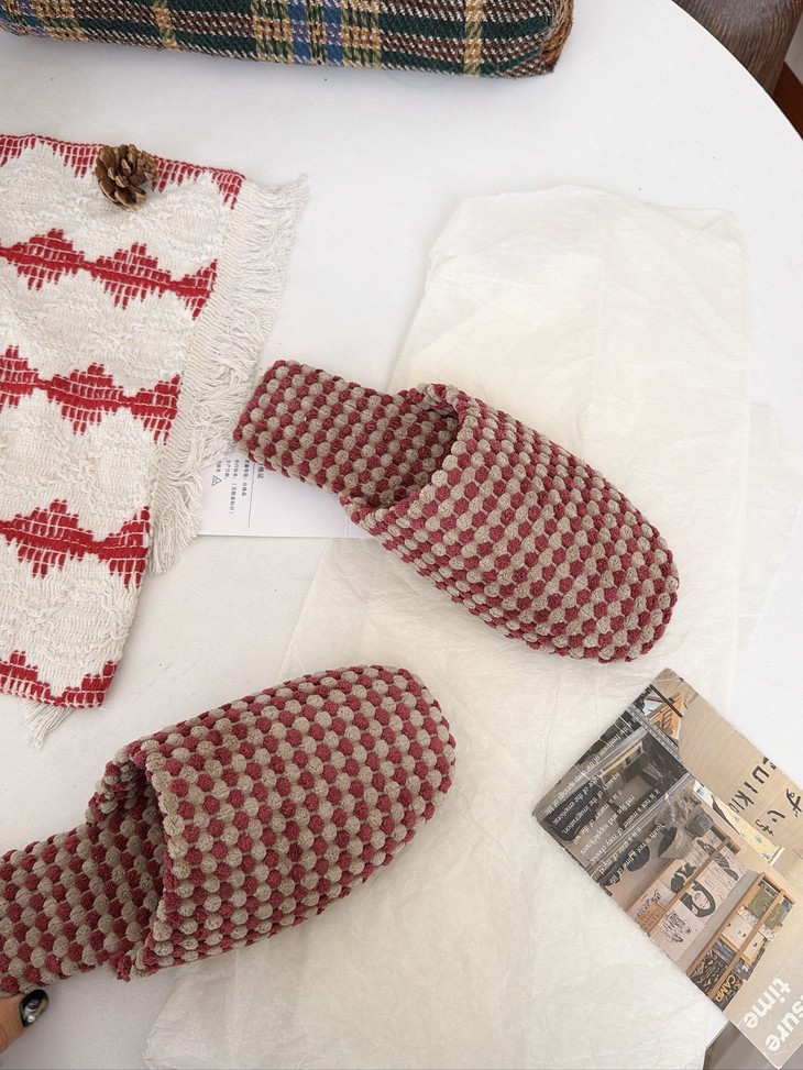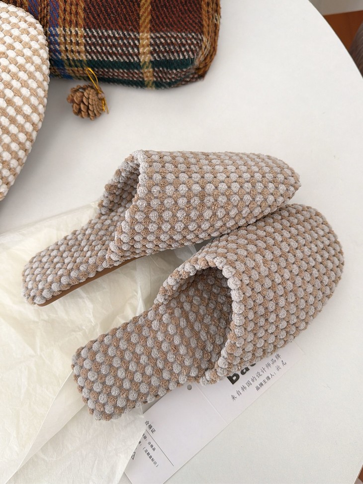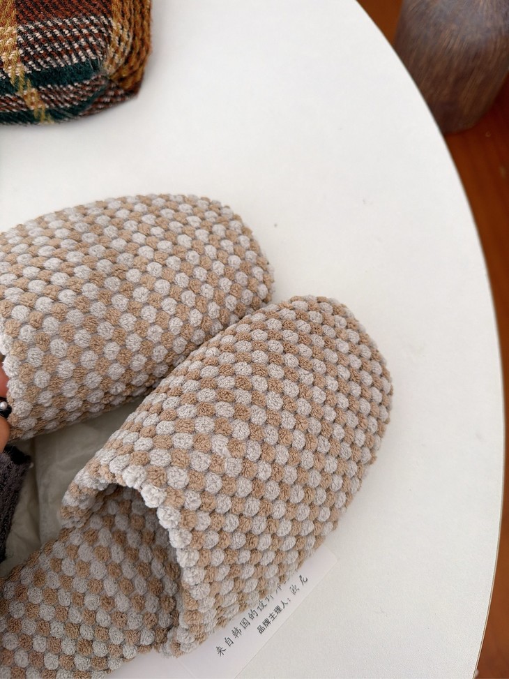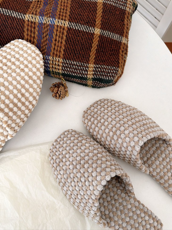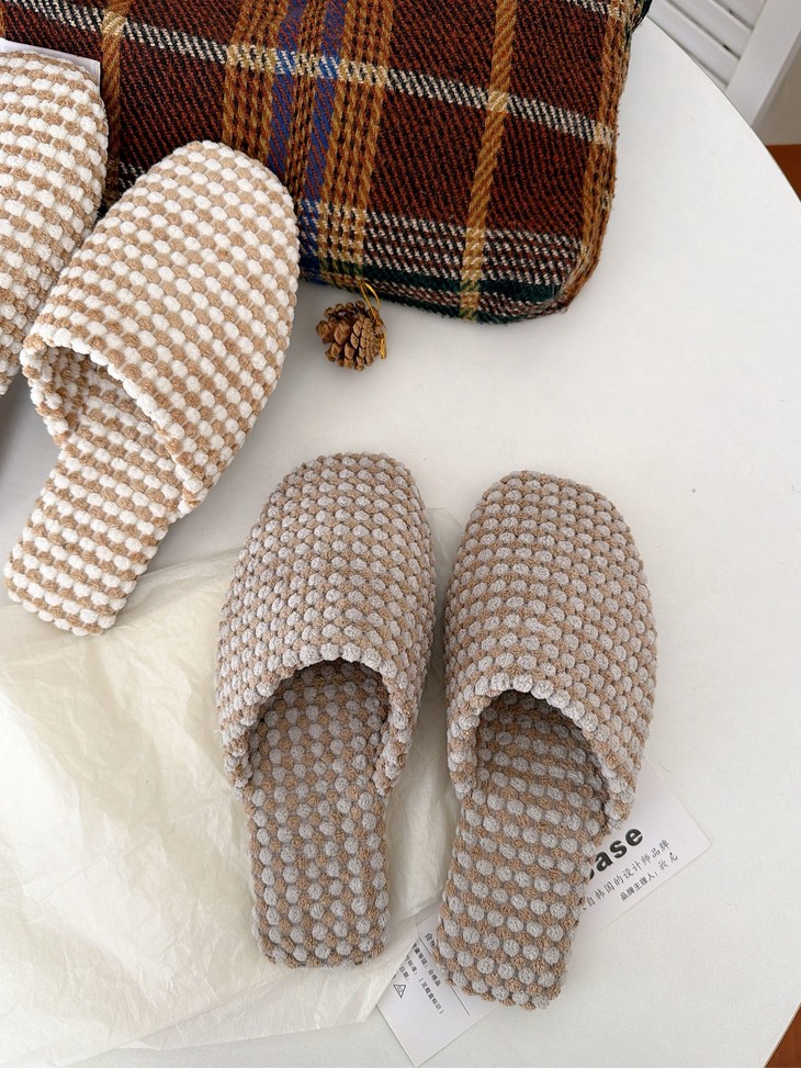 双面拉绒--抗起球--软糯亲肤 新款居家保暖高级感拖鞋 最近被问爆的秋季新品绒面拖鞋终于上架啦~ 软软糯糯的菠萝绒材质,保暖又舒适 防滑橡胶底,家里穿超安心