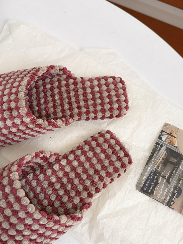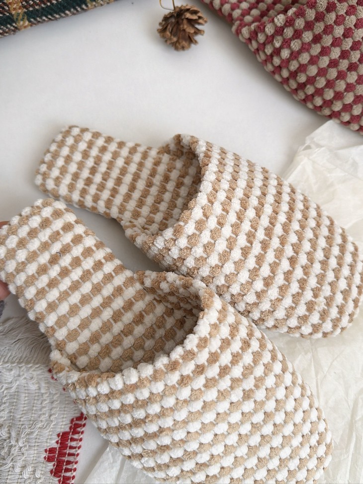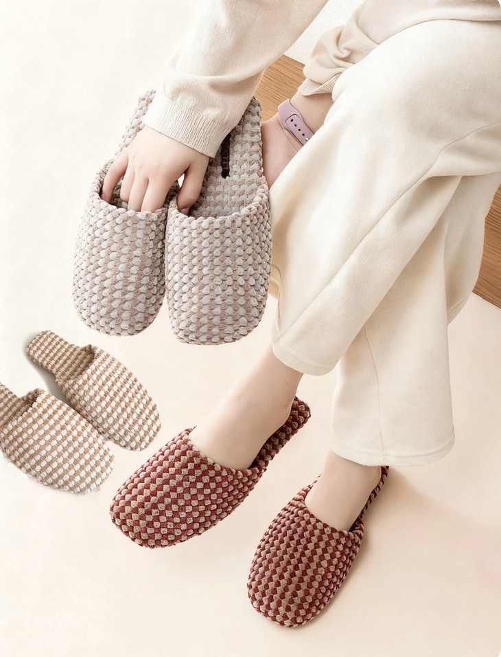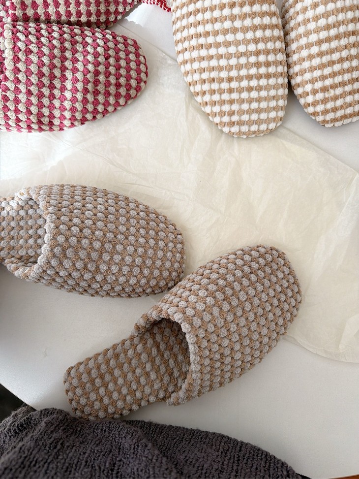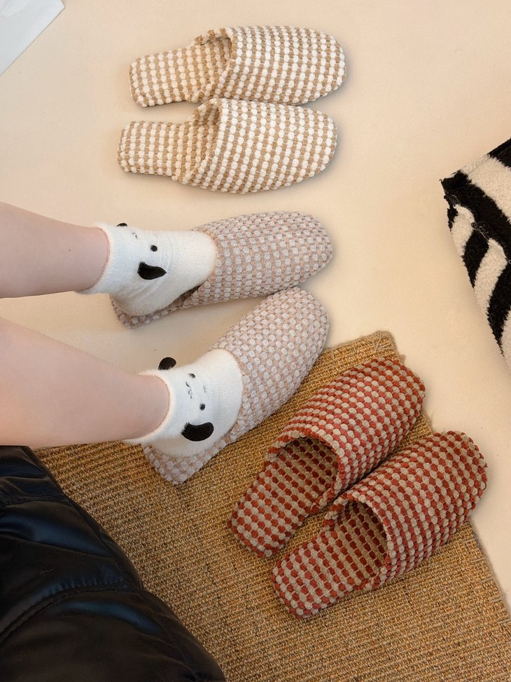 双面拉绒--抗起球--软糯亲肤 新款居家保暖高级感拖鞋 最近被问爆的秋季新品绒面拖鞋终于上架啦~ 软软糯糯的菠萝绒材质,保暖又舒适 防滑橡胶底,家里穿超安心
