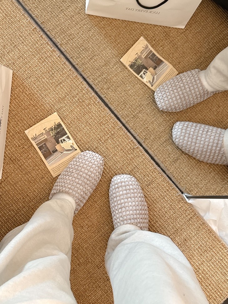 薄底设计不会笨重,鞋底防滑抓地超稳 在家浴室走完全不担心打滑 搭配针织裙、牛仔裤都贼百搭 在家随便上脚都有氛围感 已经焊在脚上了🧸🧸