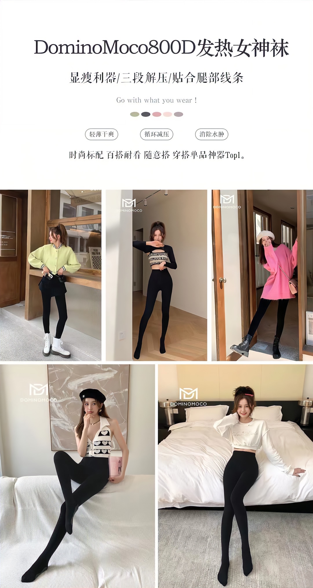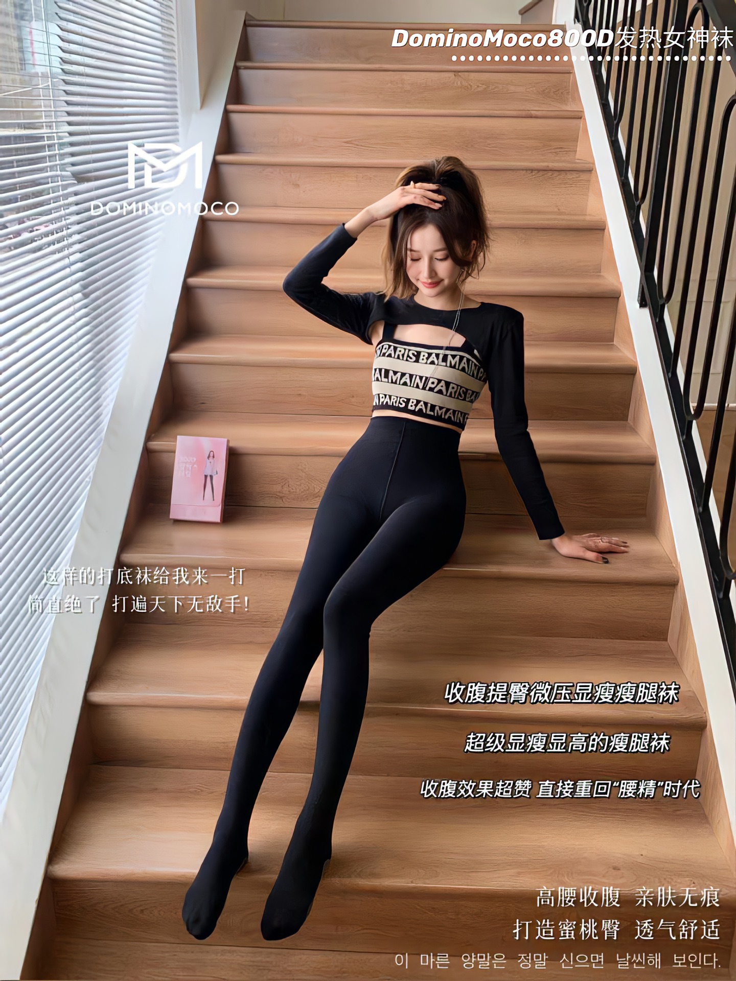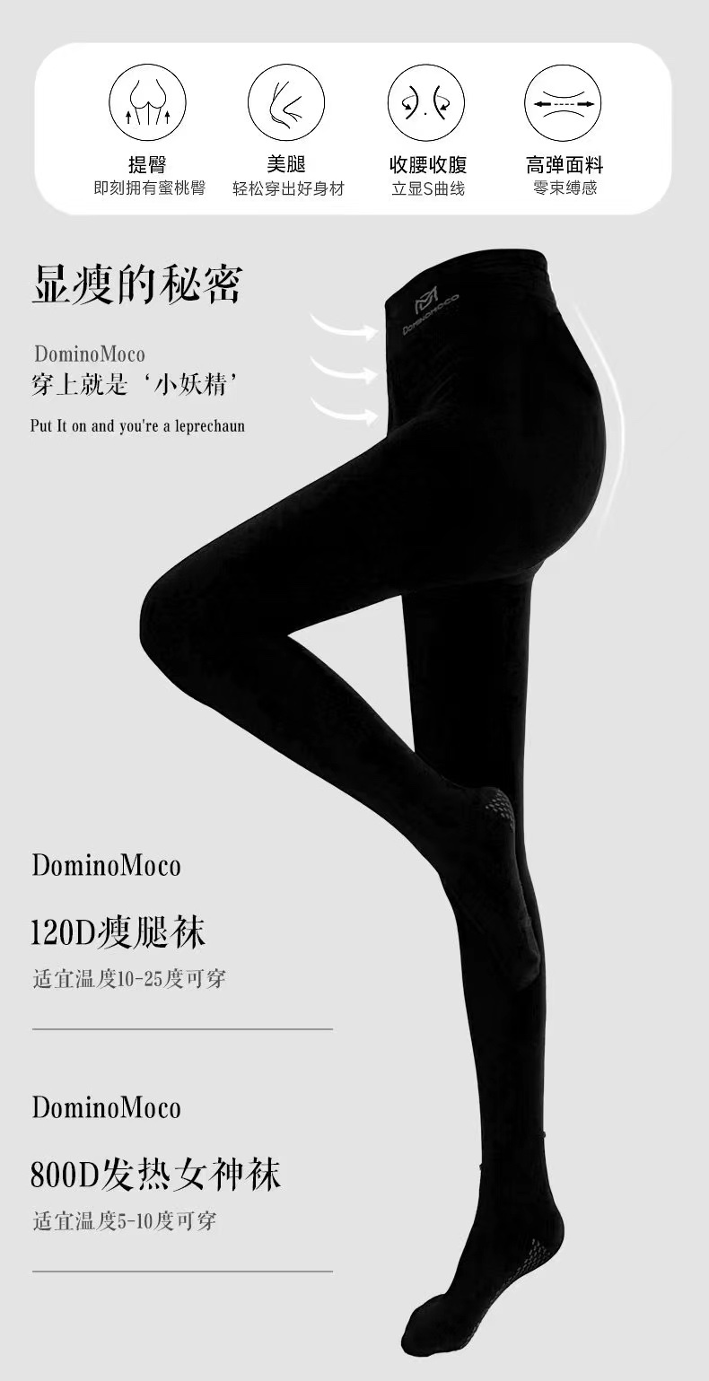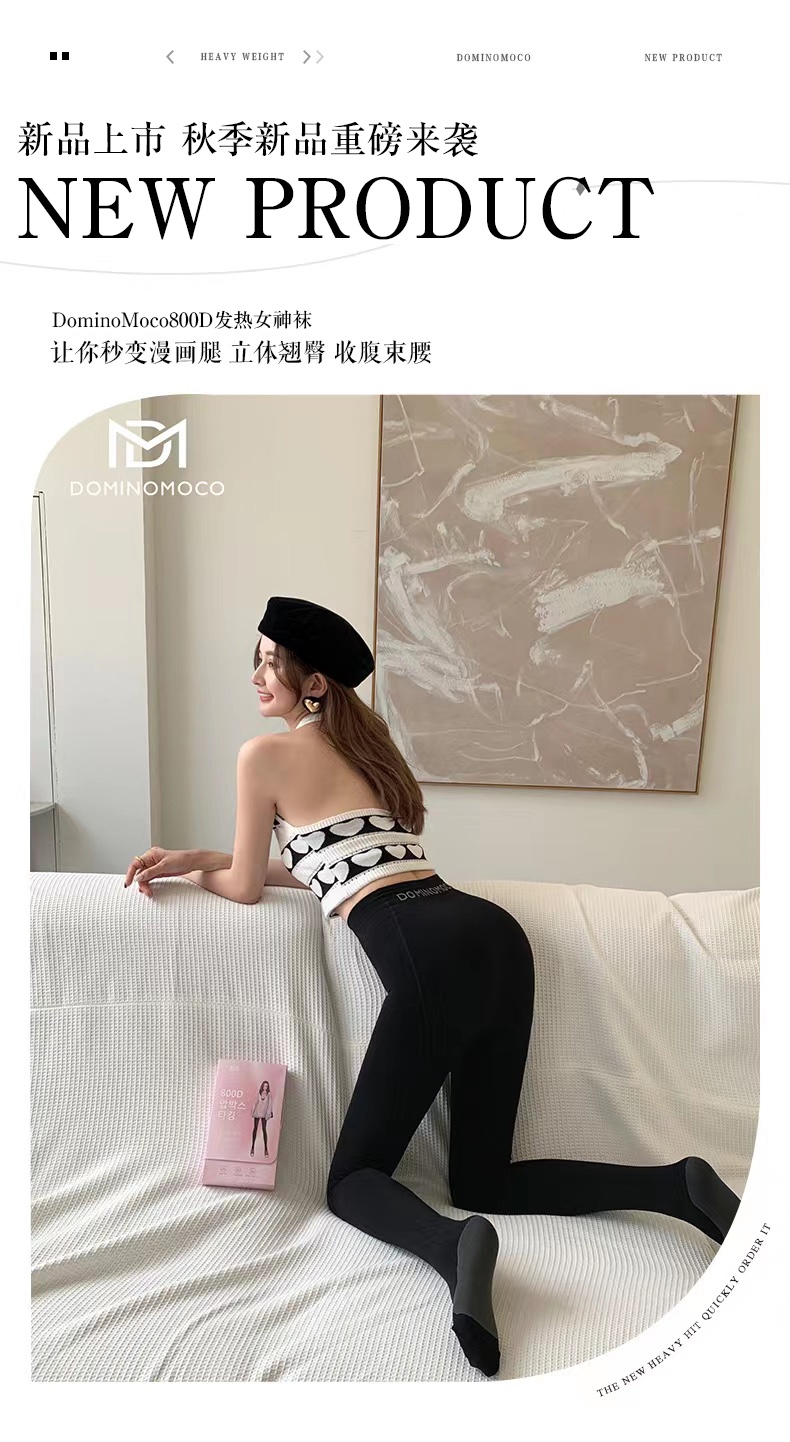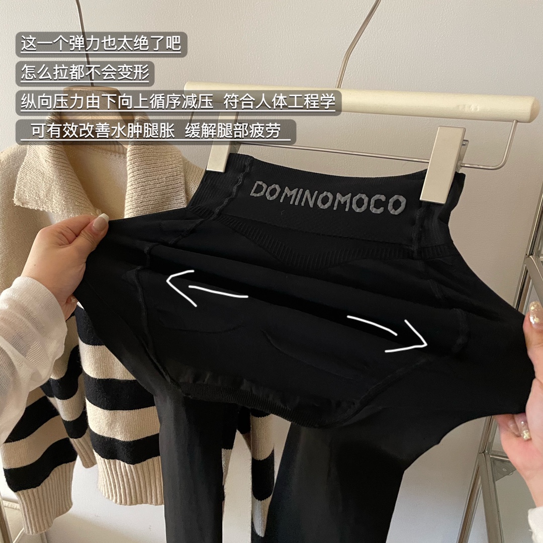 2025新品韩国DominoMoco 800D石墨烯瘦腿裤发热压力美腿塑形连裤袜黑色打底裤