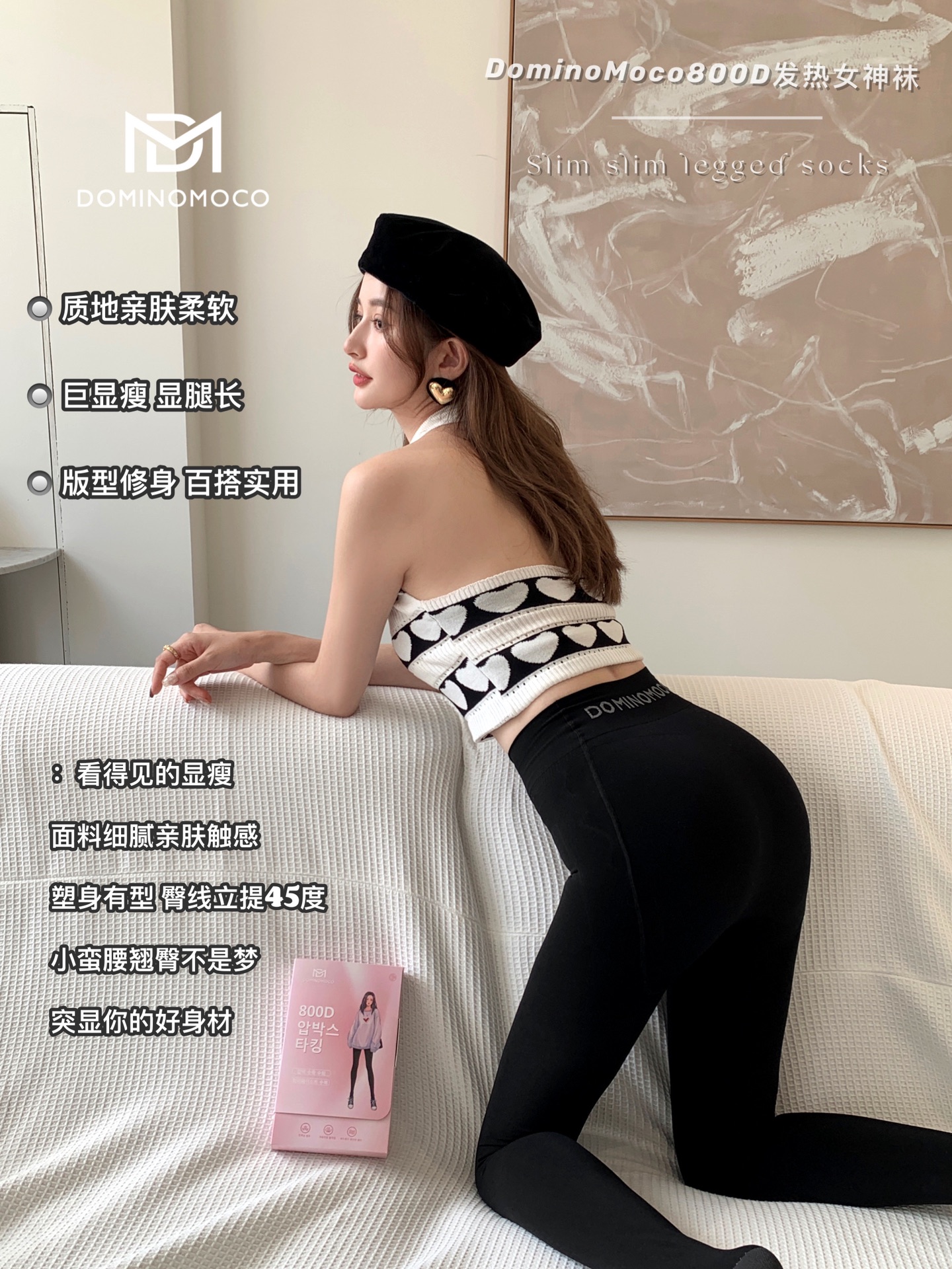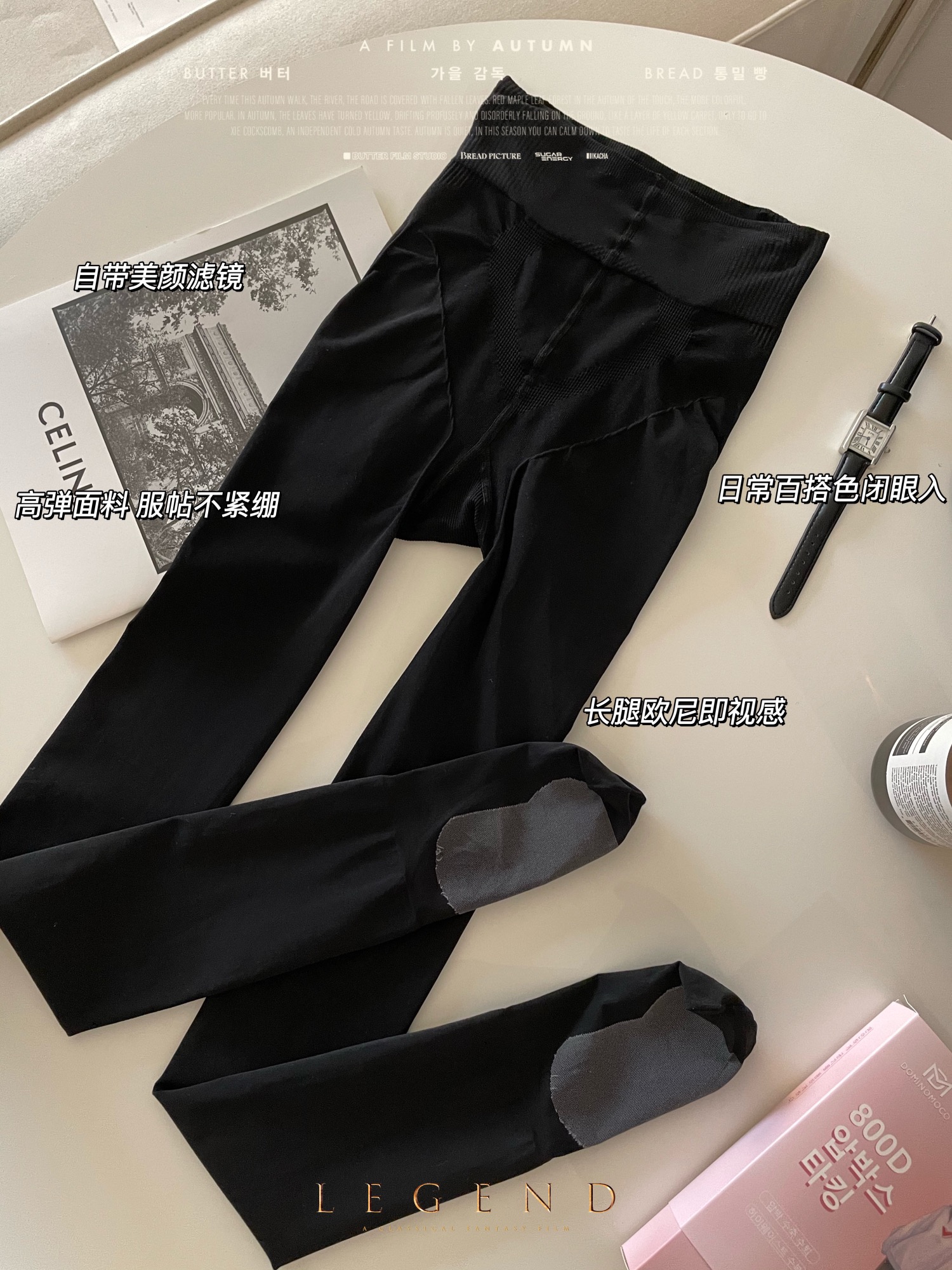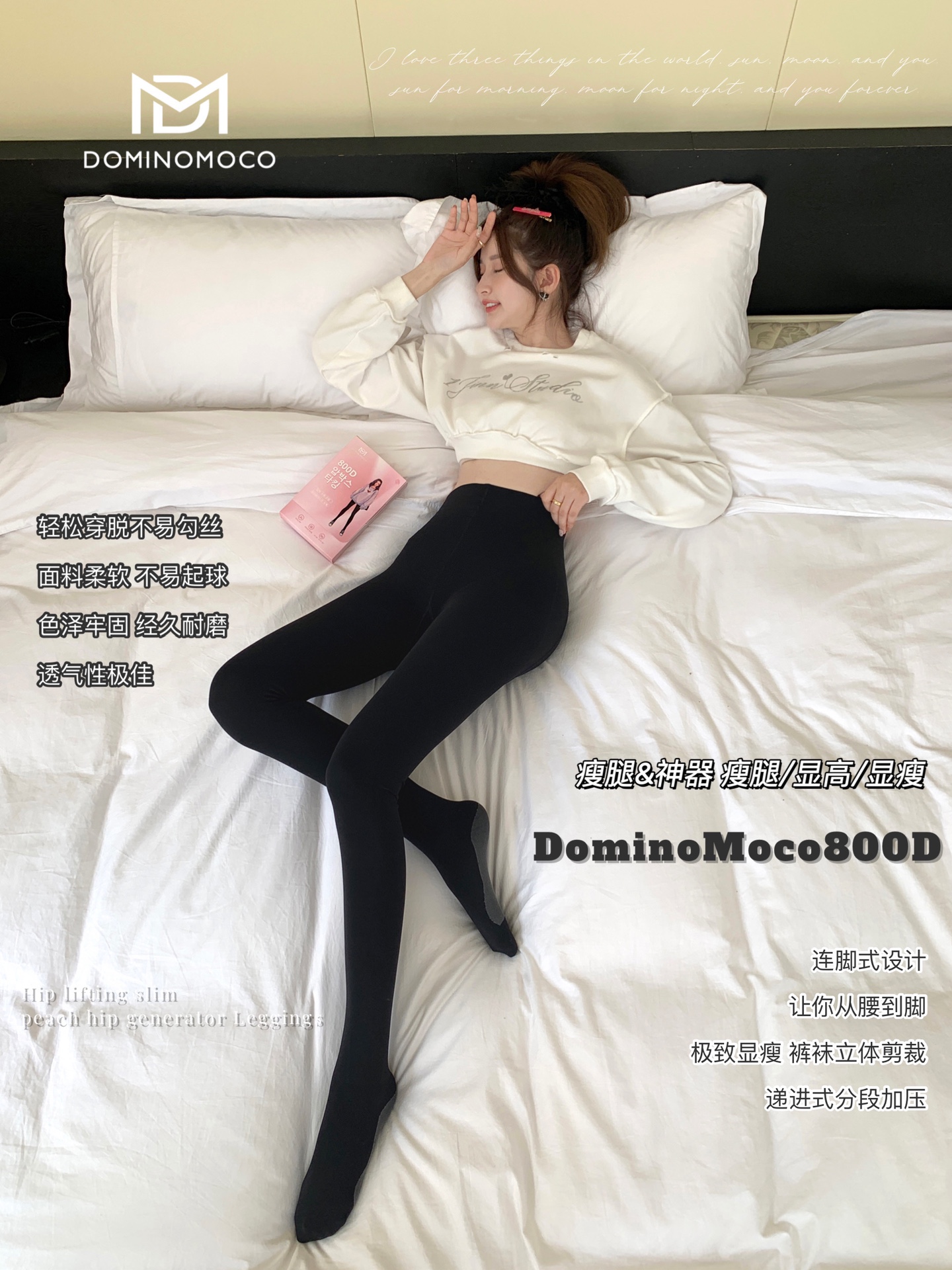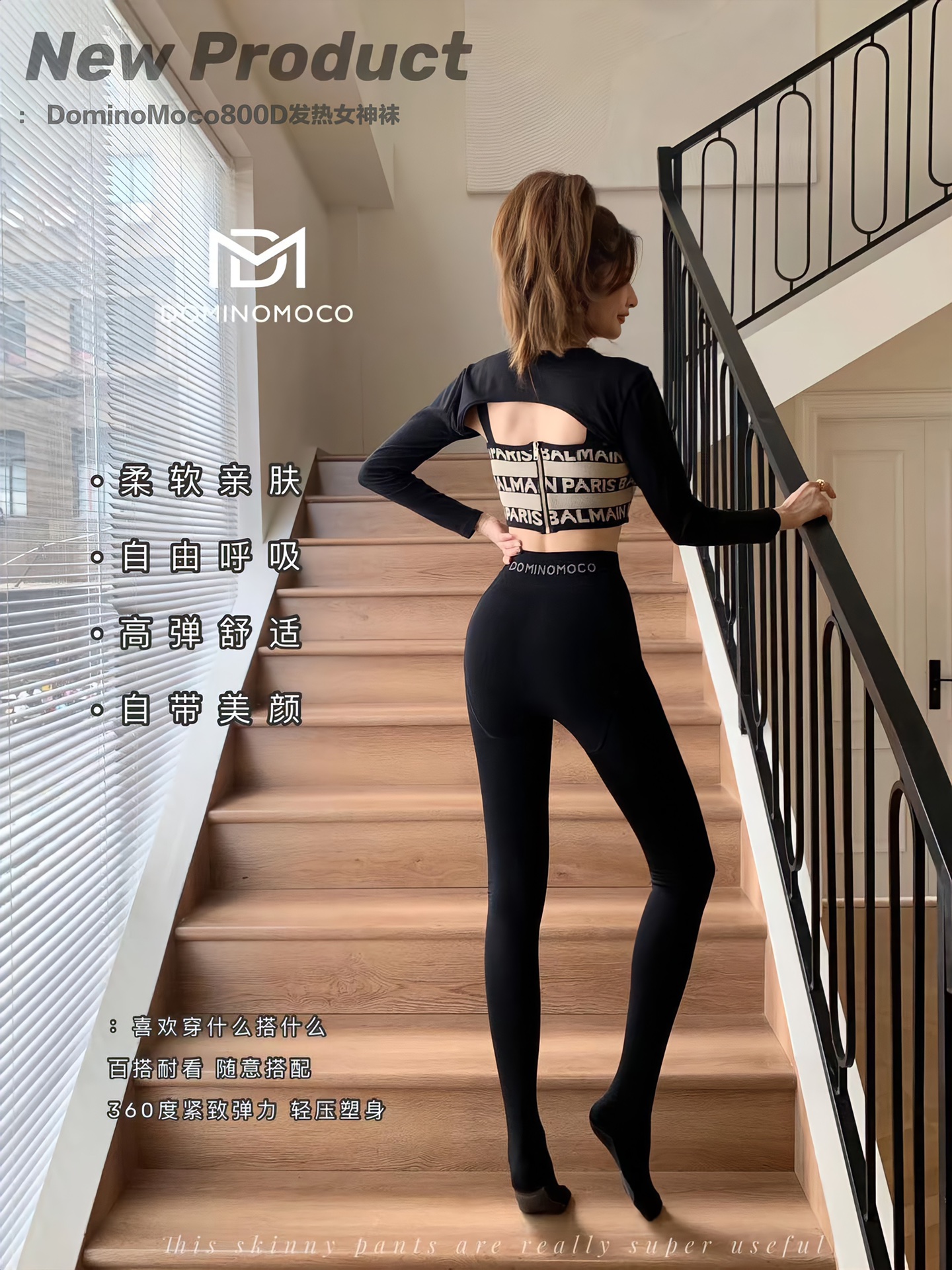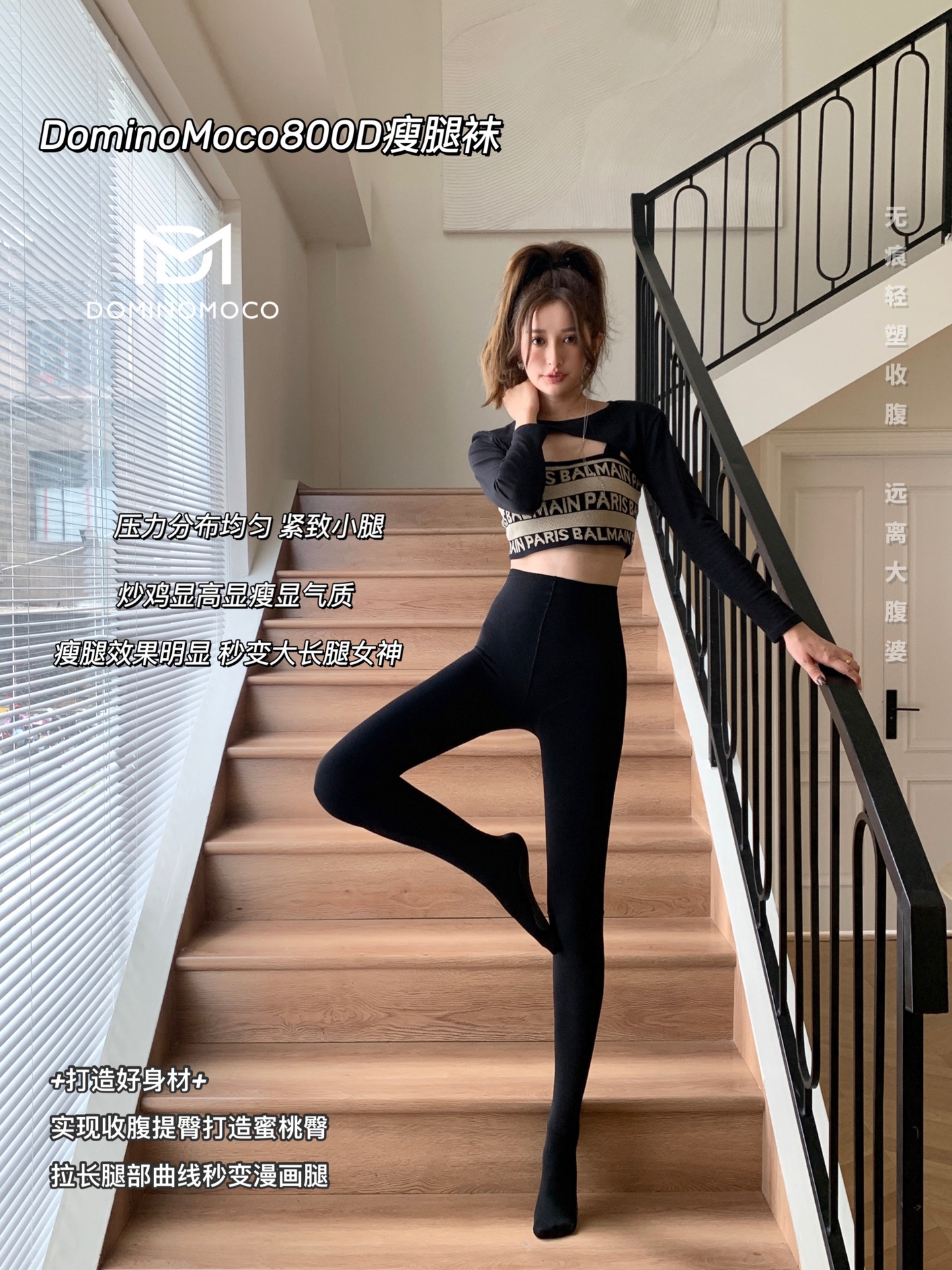 2025新品韩国DominoMoco 800D石墨烯瘦腿裤发热压力美腿塑形连裤袜黑色打底裤
