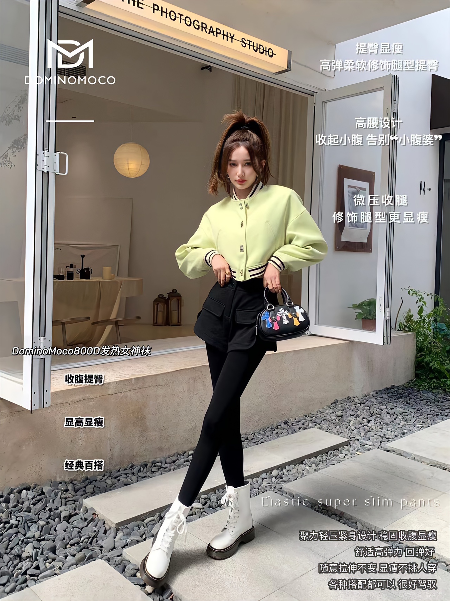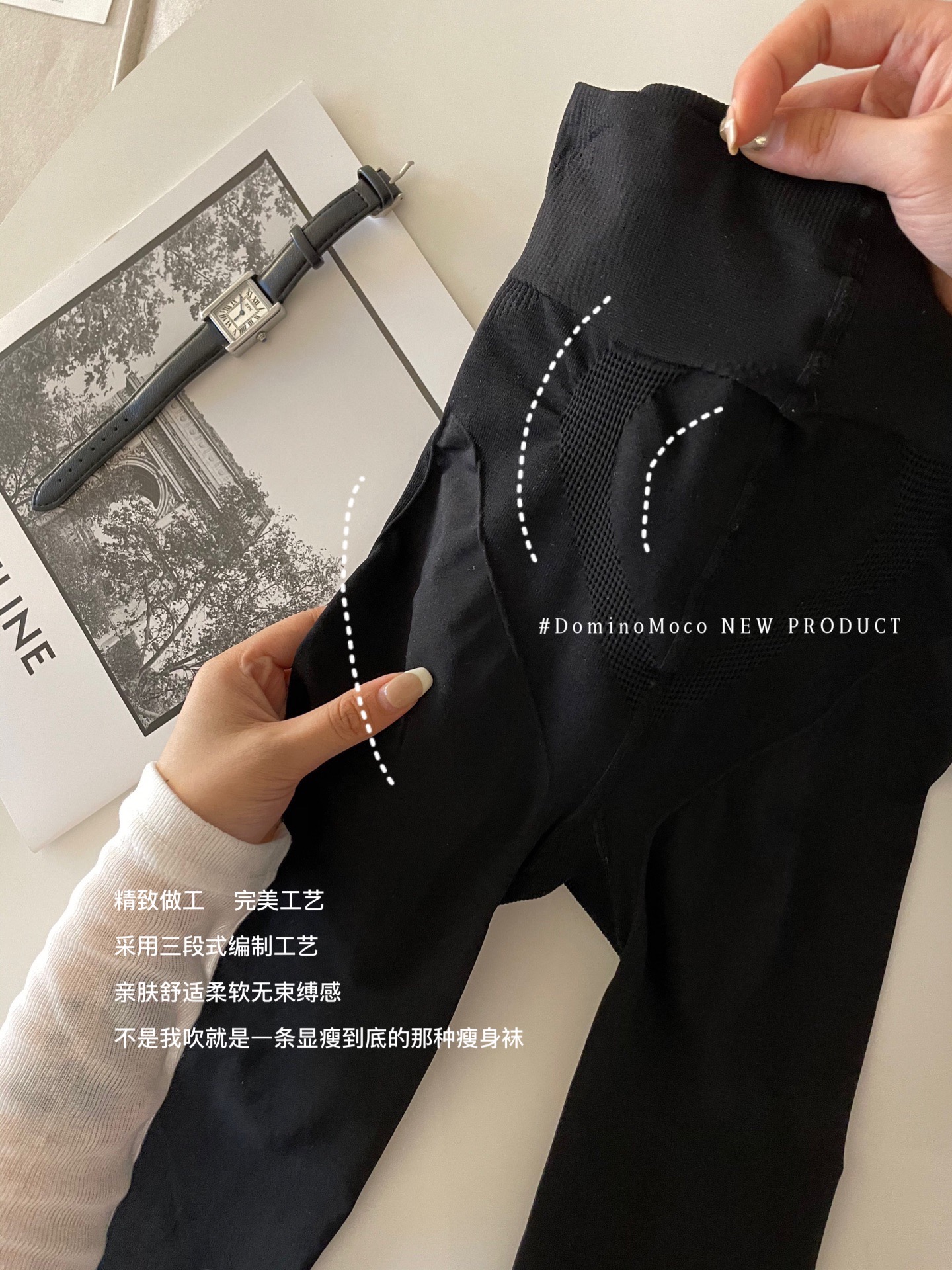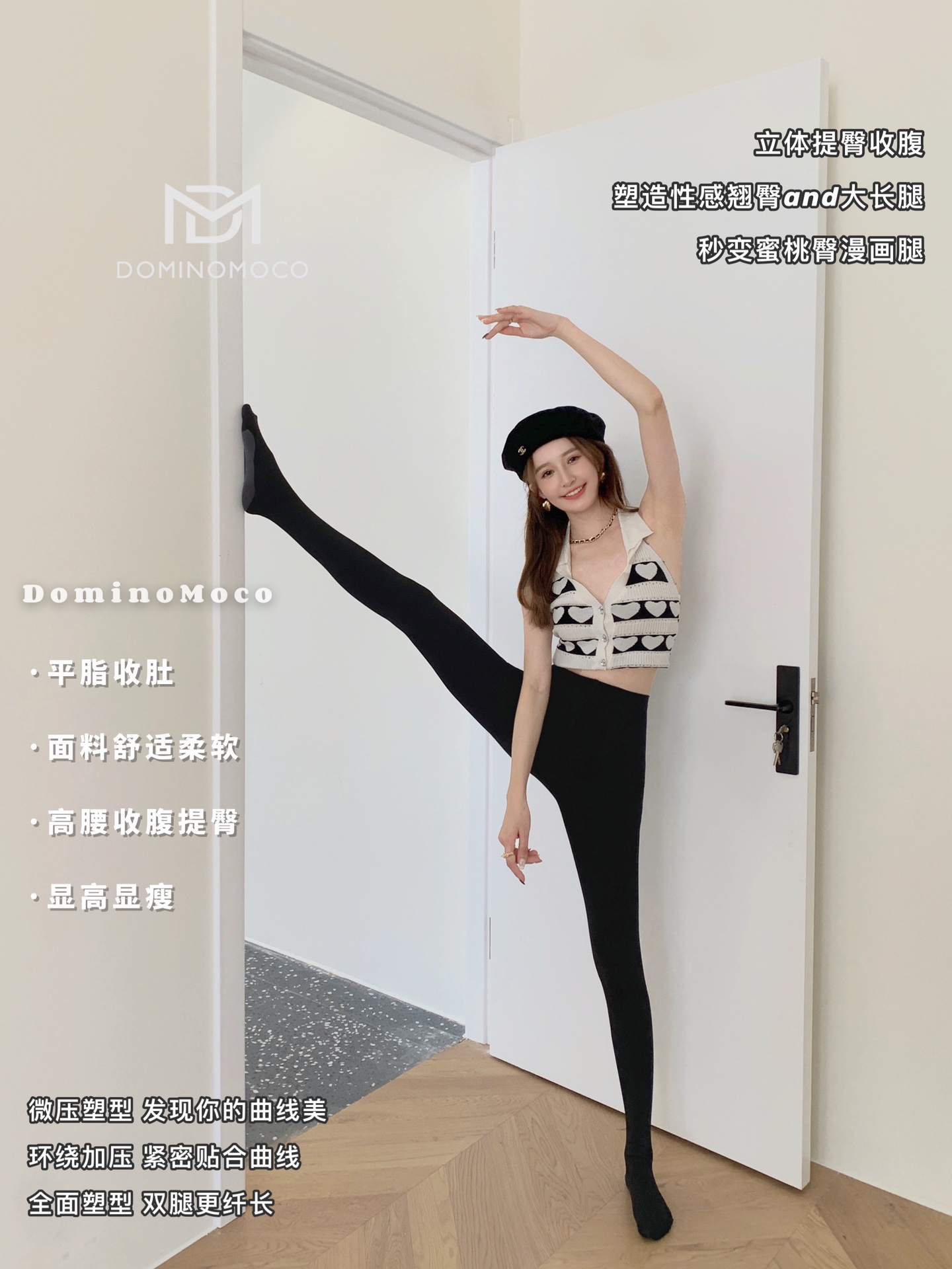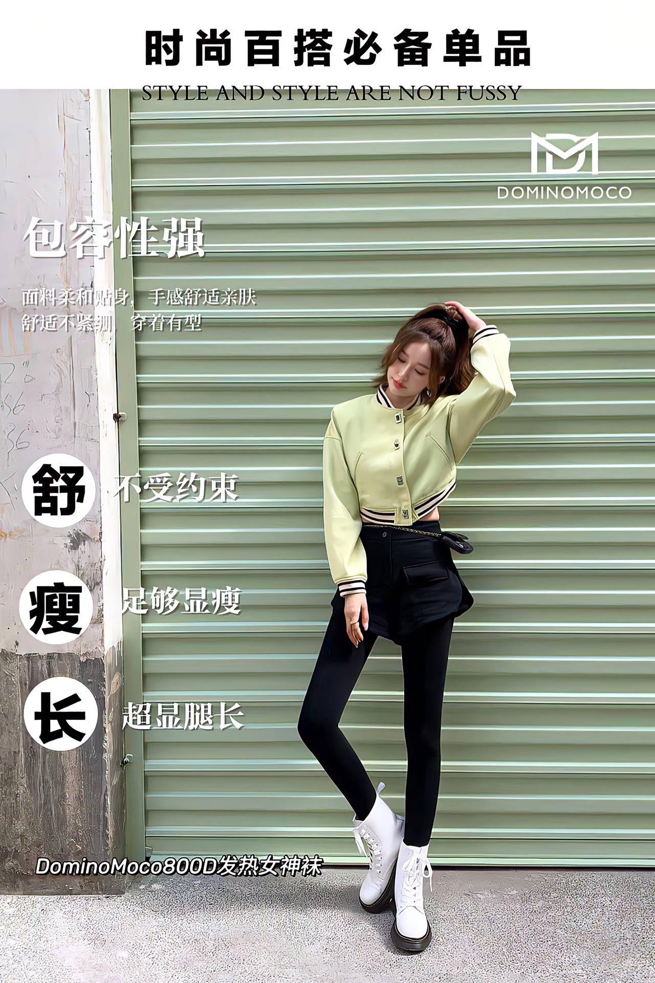 2025新品韩国DominoMoco 800D石墨烯瘦腿裤发热压力美腿塑形连裤袜黑色打底裤