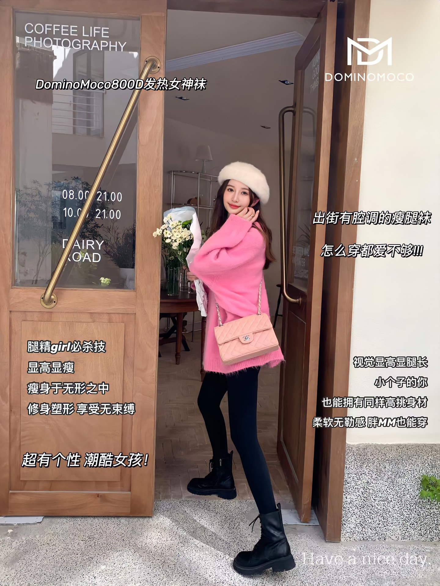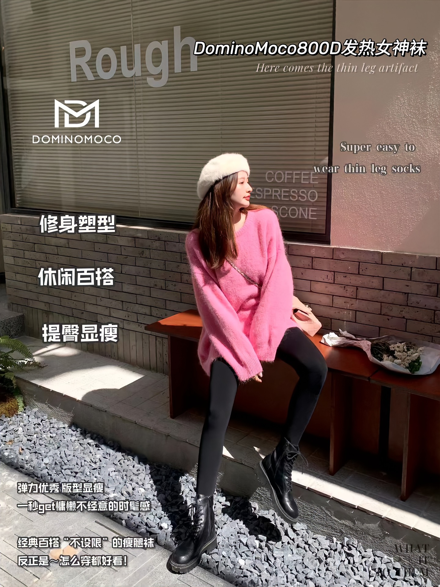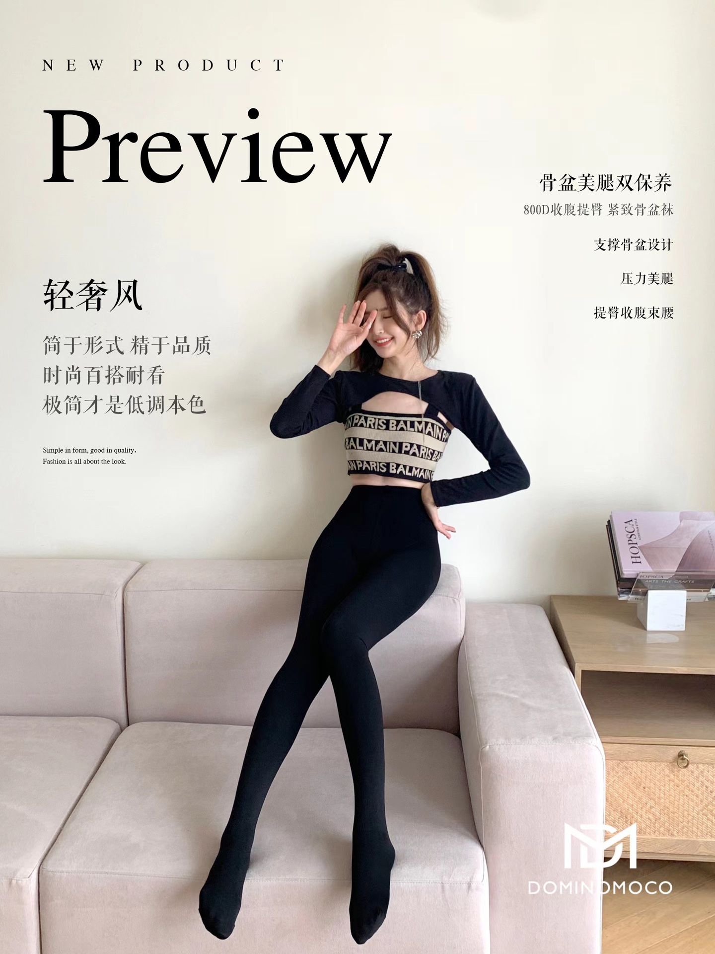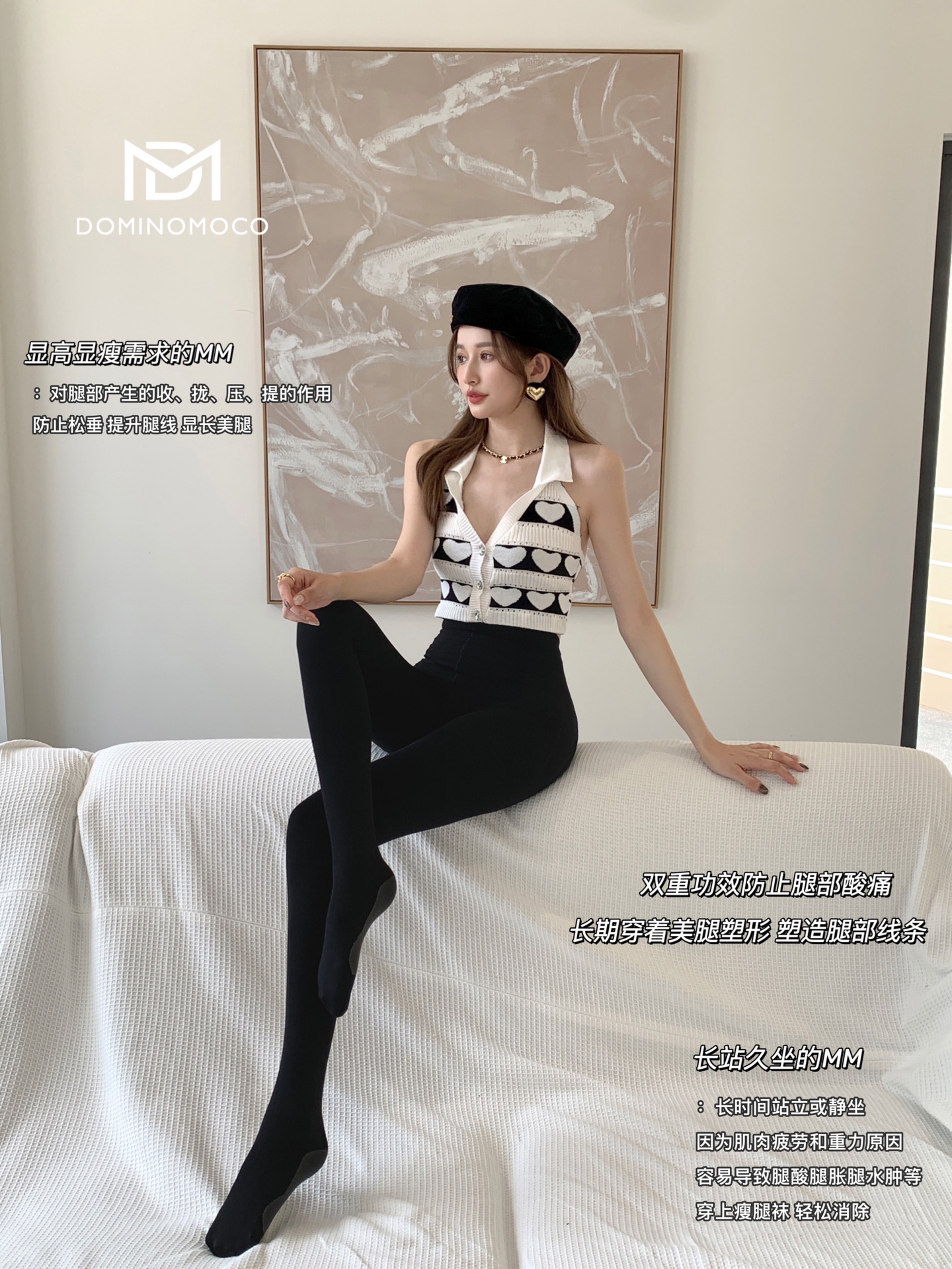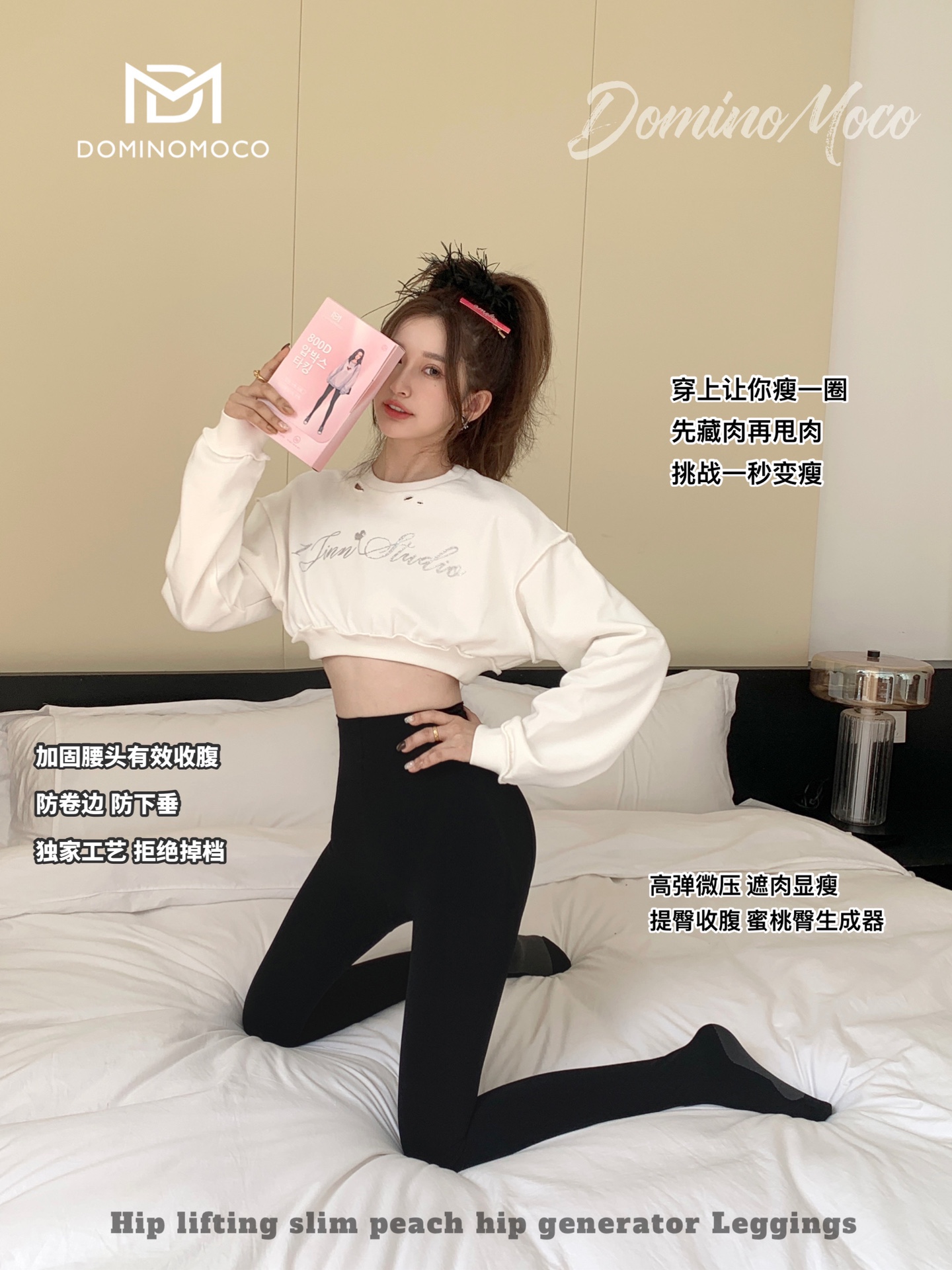 2025新品韩国DominoMoco 800D石墨烯瘦腿裤发热压力美腿塑形连裤袜黑色打底裤