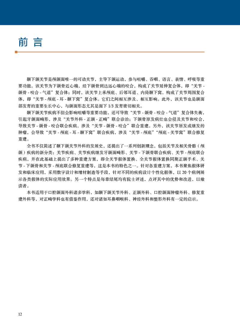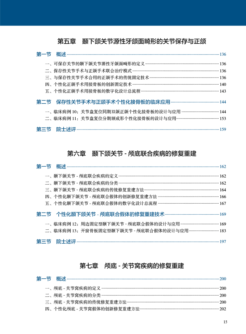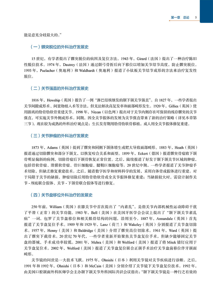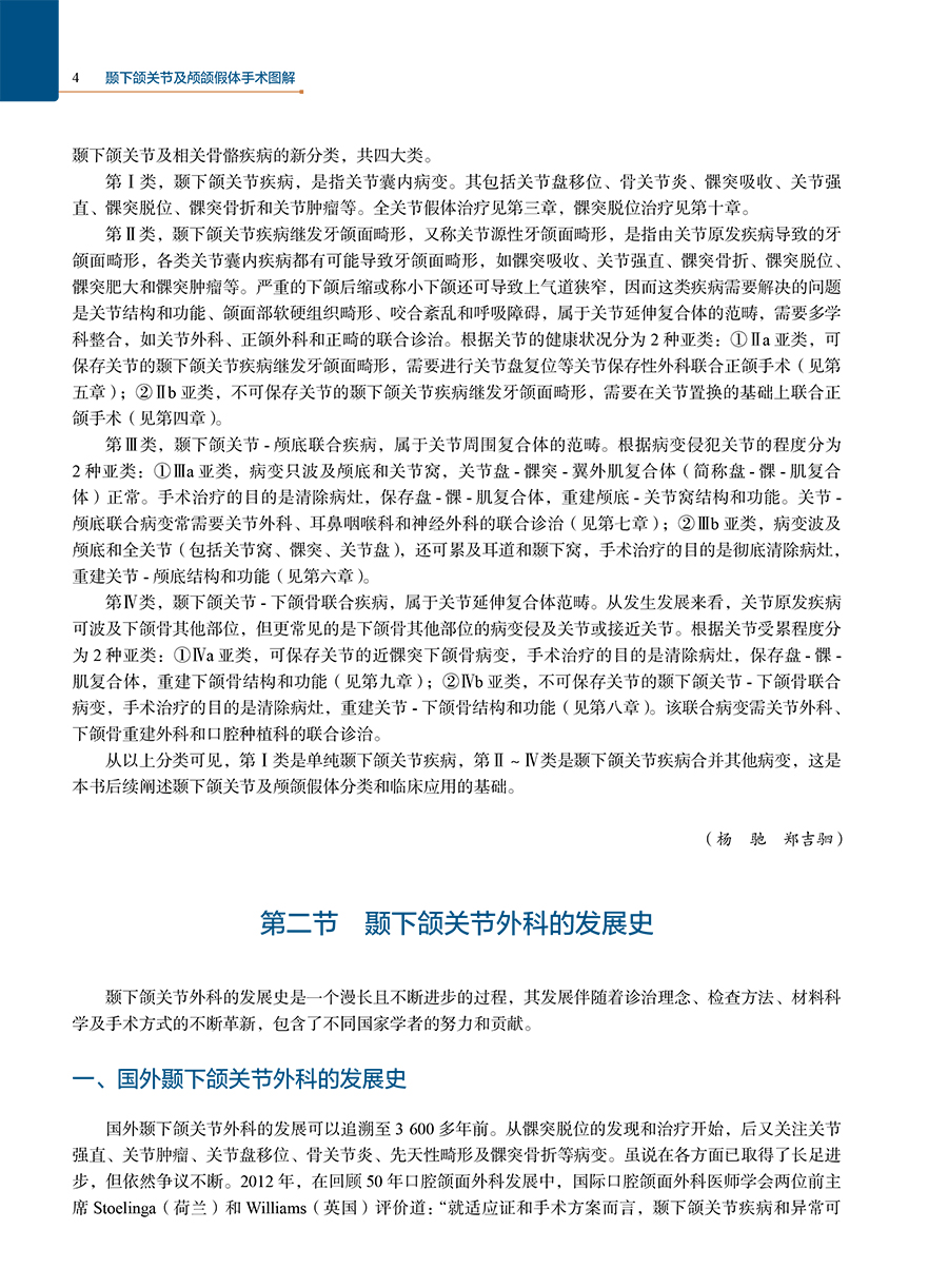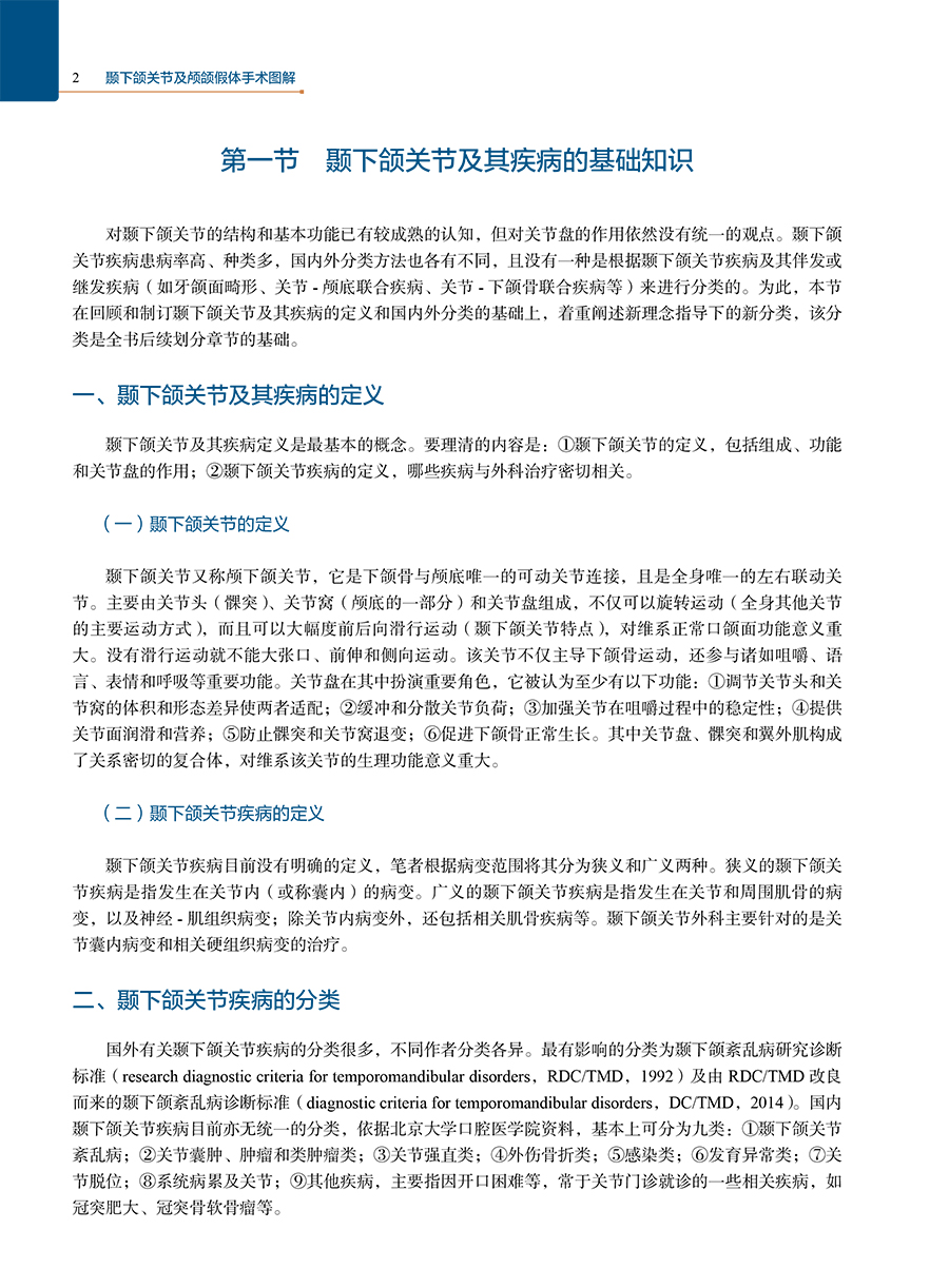 全书从颞下颌关节外科发展史,颞下颌关节发育和结构功能、整合结构和综合治疗理念、临床及影像学检查方式方法及诊断、疾病分类及诊治、新技术等几个方面进行系统和全面的阐述。本书主要提出了2大核心理念:①关节延伸共同体的关节-颌骨-咬合联合诊治理念、②关节周围功能体的关节-颅底-耳-颞下窝联合重建理念。同时系统阐述关节MRI特征和分析、关节镜下关节盘复位固定术、外侧成形术、自体骨关节重建、人工关节置换、关节-正颌--正畸联合治疗技术、髁突骨折切开内固定术、假体颅底重建及关节-颅底-下颌骨联合重建技术等主要内容,融合关节的数字医学、3D打印、人工智能等新技术领域交叉。