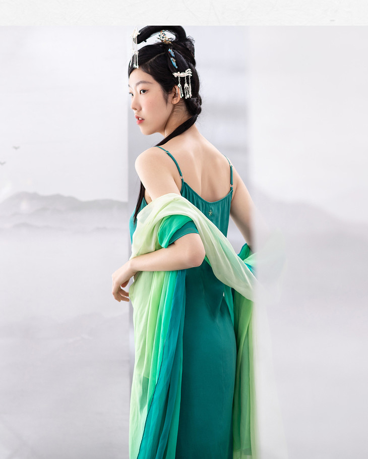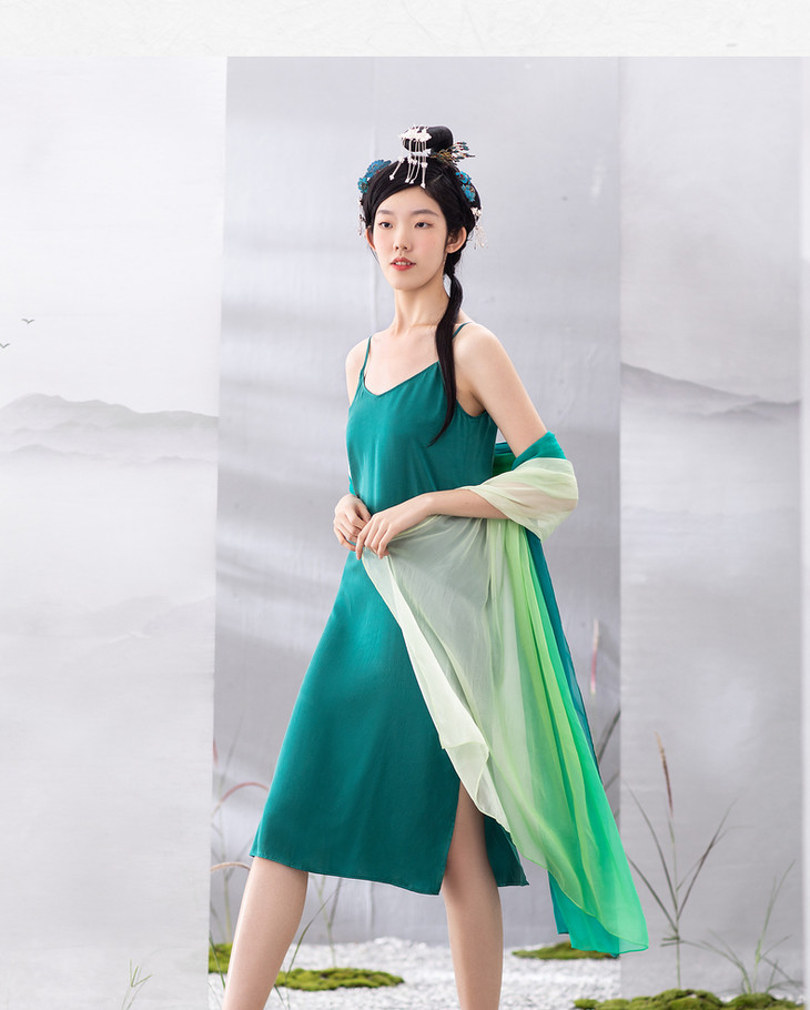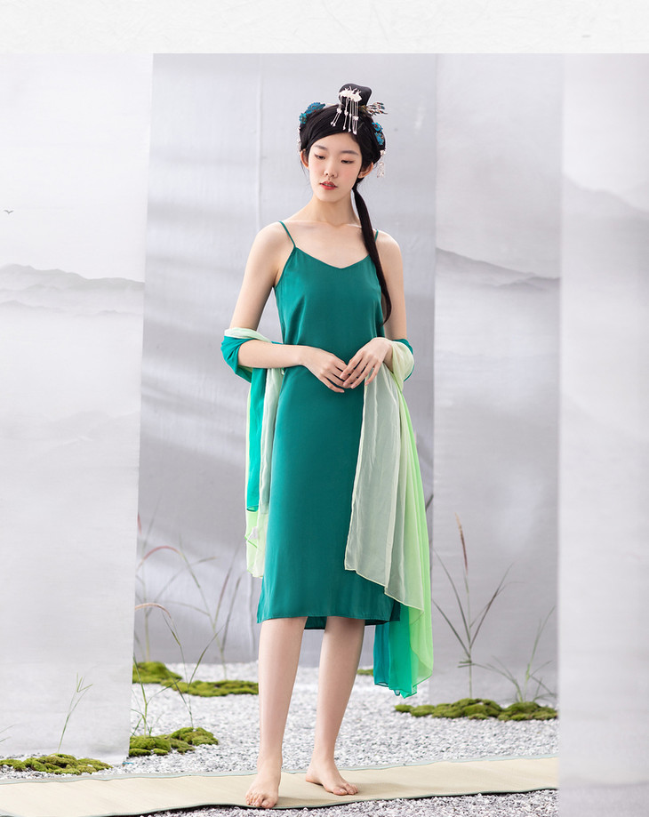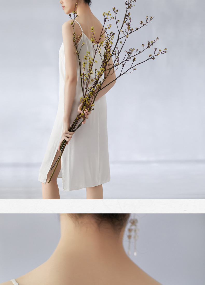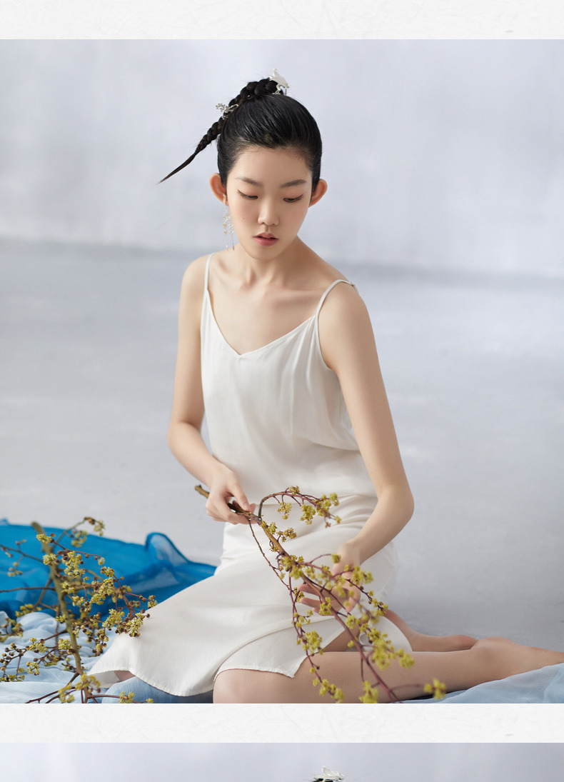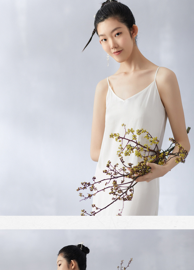 【林栖设计小店】夏季女装新品真丝V领舒适柔软吊带裙子百搭背心长裙 1903161