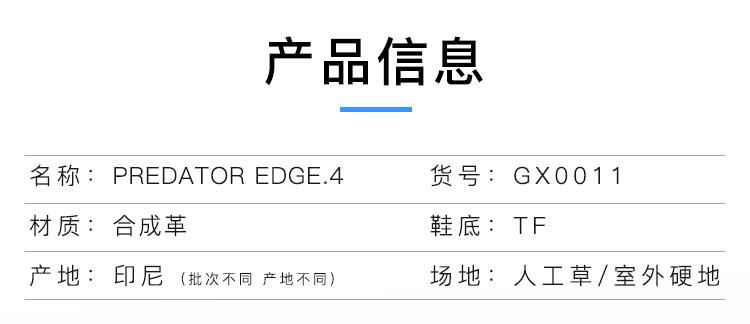 ADIDAS/阿迪达斯PREDATOR EDGE.4 TF碎钉猎鹰入门级足球鞋男GX0011