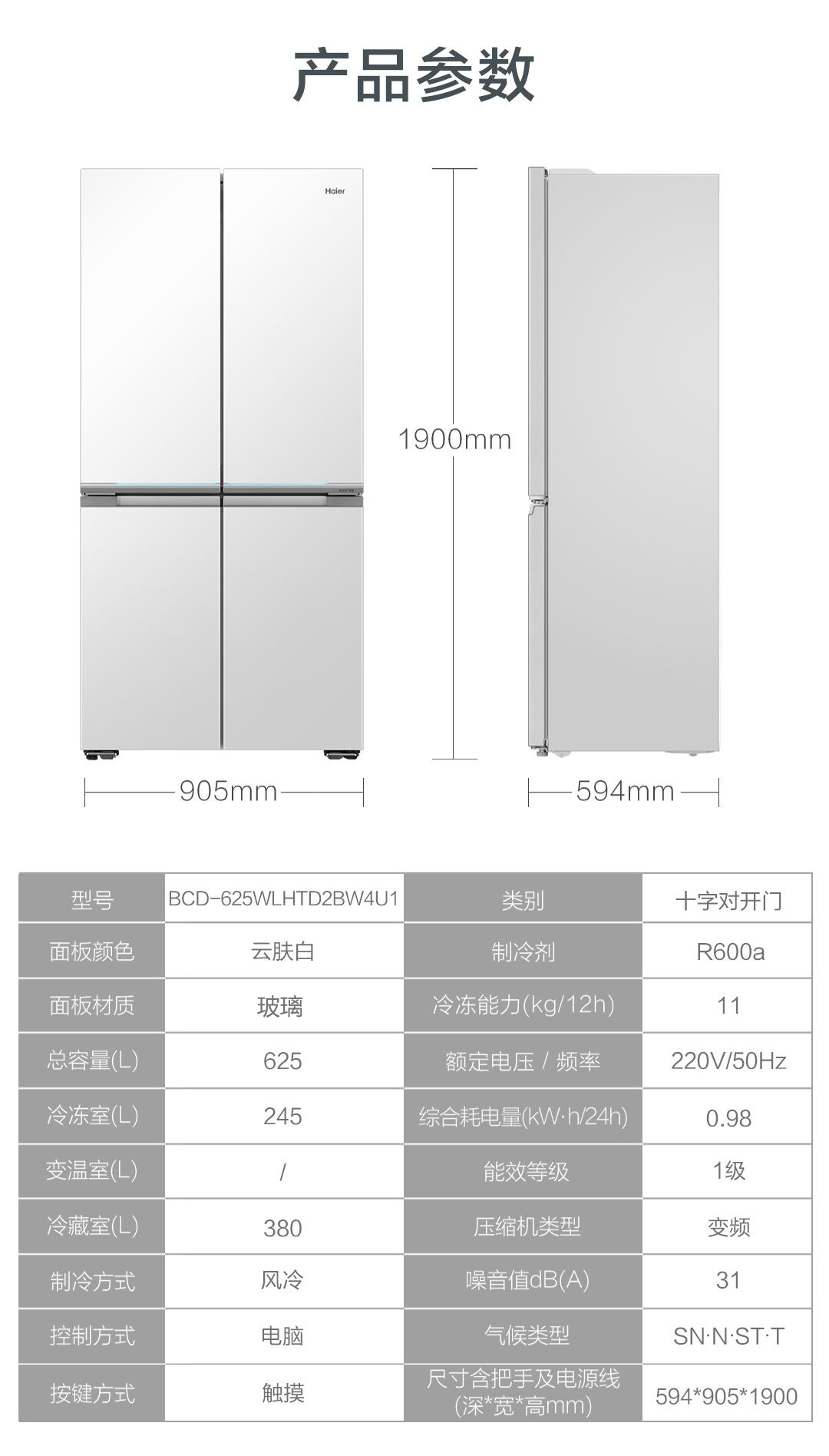 海尔(Haier)冰箱 BCD-625WLHTD2BW4U1