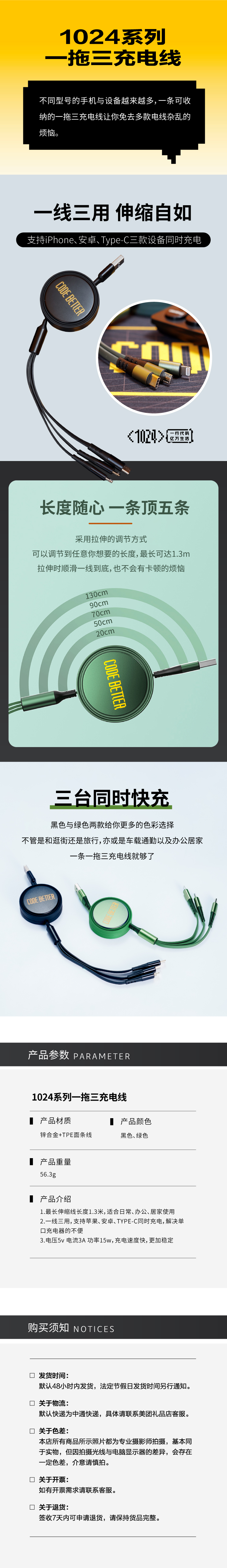 1024系列一拖三充电线