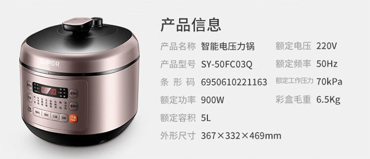 苏泊尔(509480)(SUPOR) SY-50FC03Q 5升 智能球釜 电压力锅 环流大沸腾