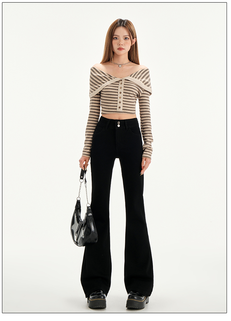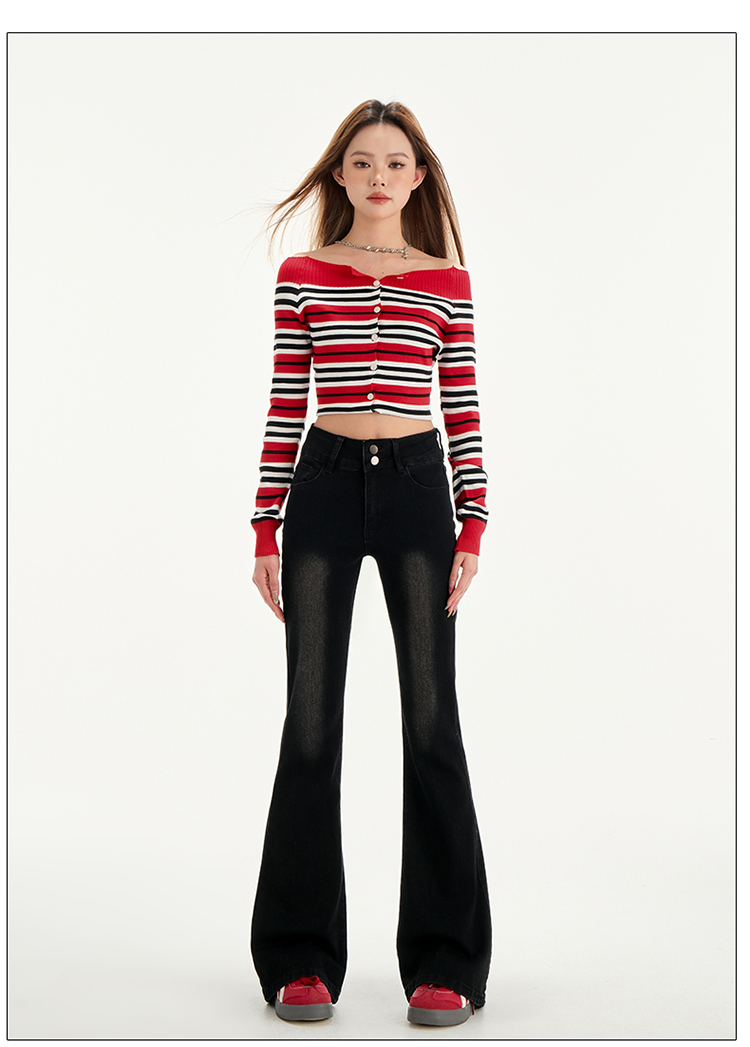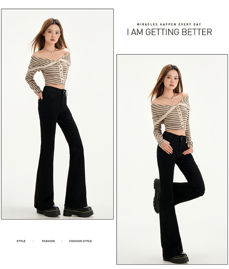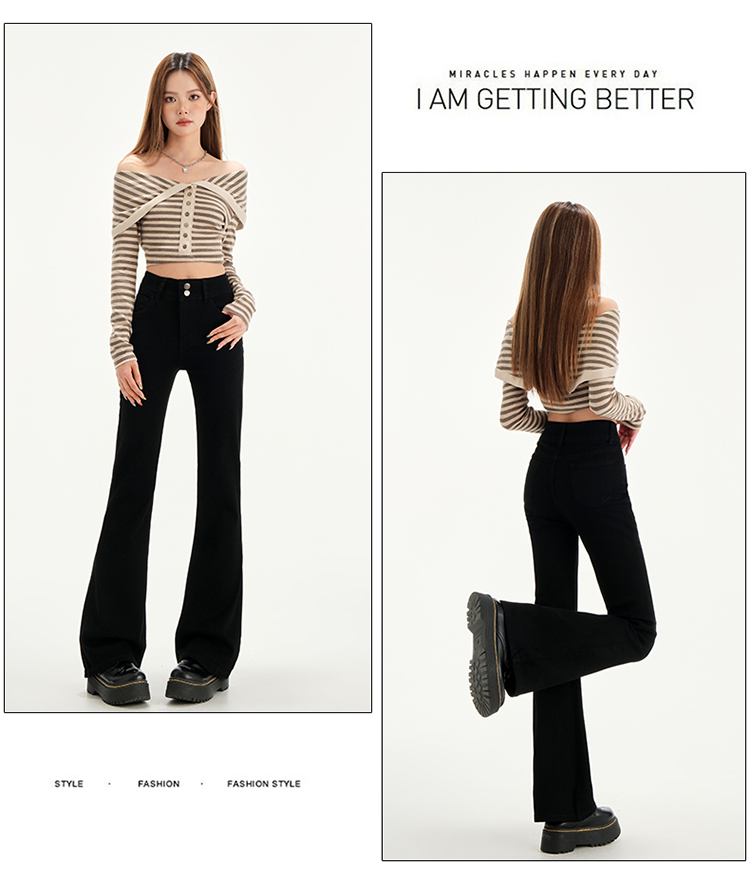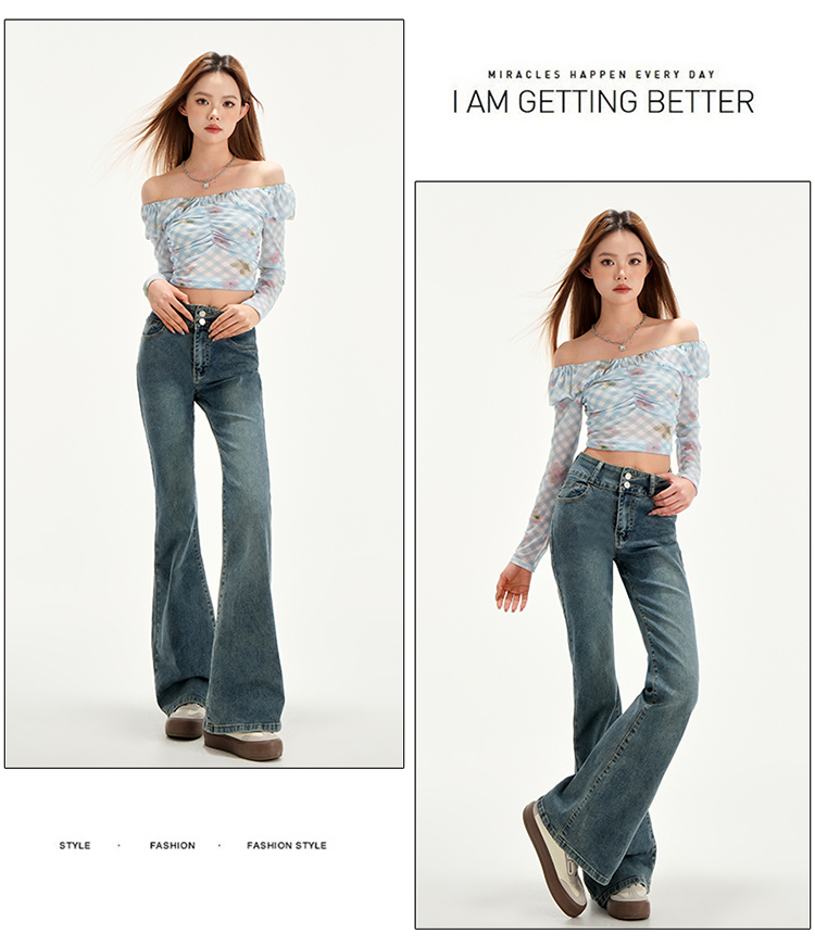 【GZ】无忧购2025春季韩版宽松阔腿牛仔百搭高腰弹力喇叭裤2025(截单后7天发货)