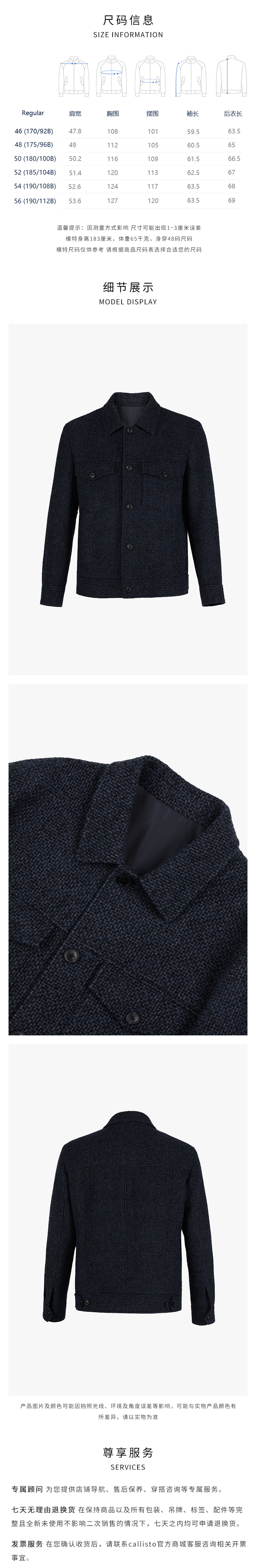 callisto蓝黑灰绵羊毛混纺设计师推荐款夹克 FSFEJ530