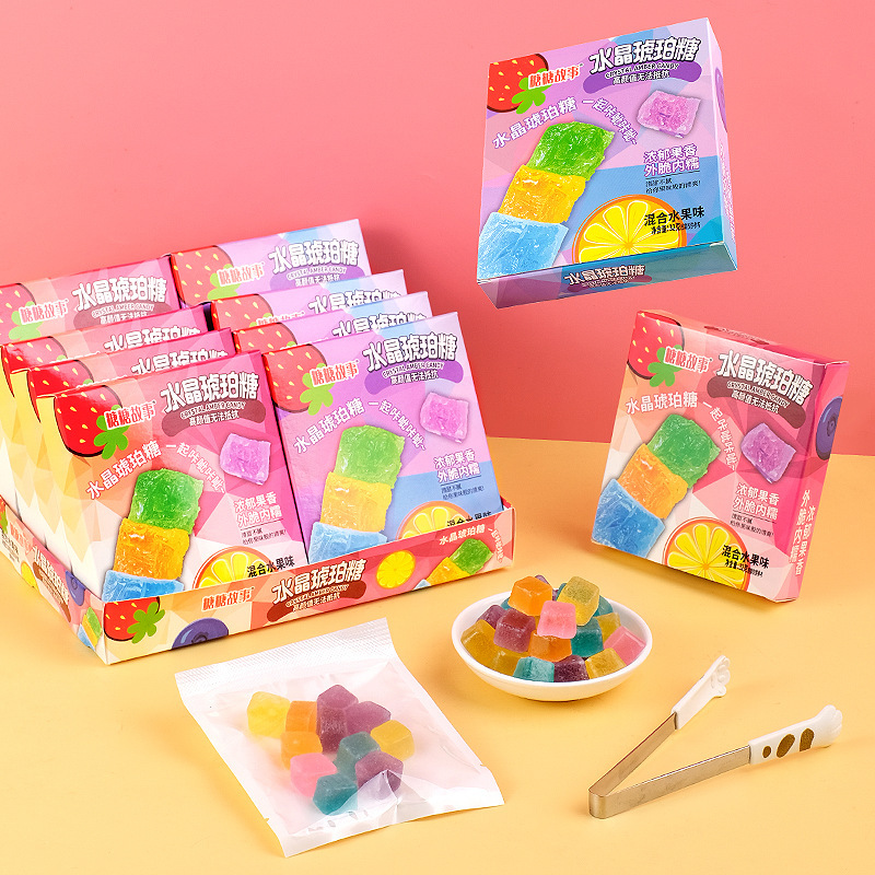 【39.9抢10盒❗水晶琥珀糖】甄选品质原料制作,浓郁果香清甜不腻,少女心宝石糖,手工宝石糖水晶糖咀嚼声控糖果网红钻石糖零食L