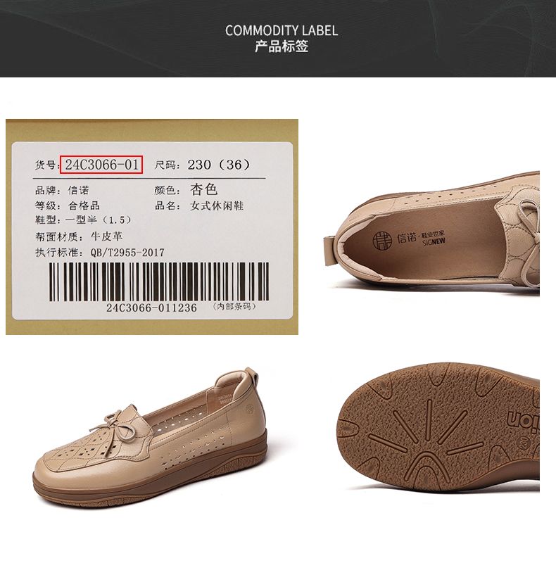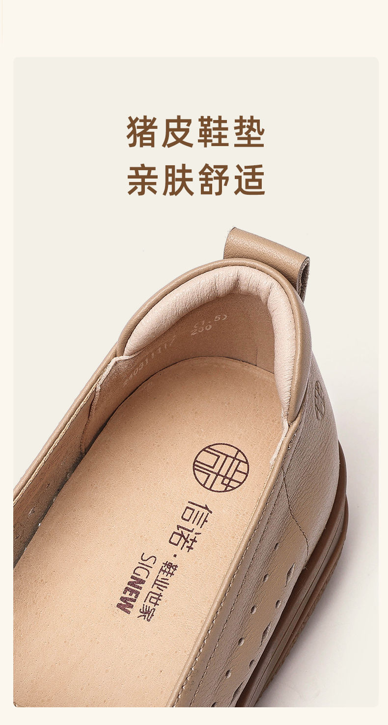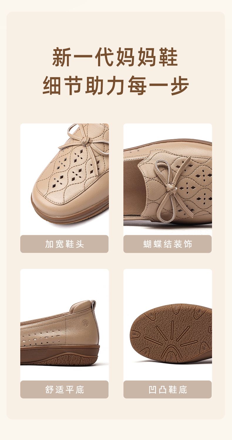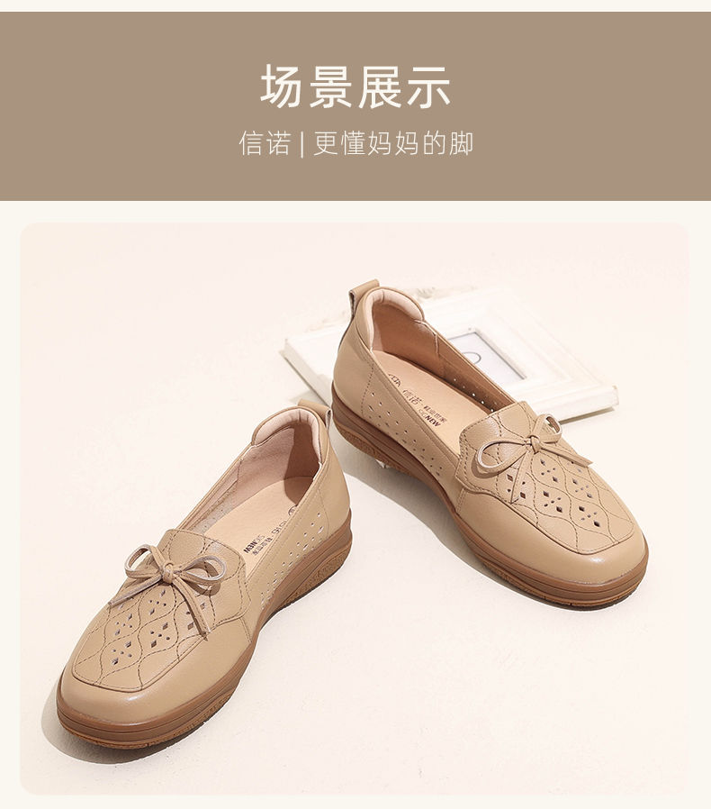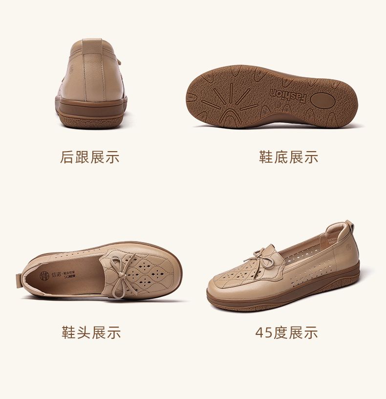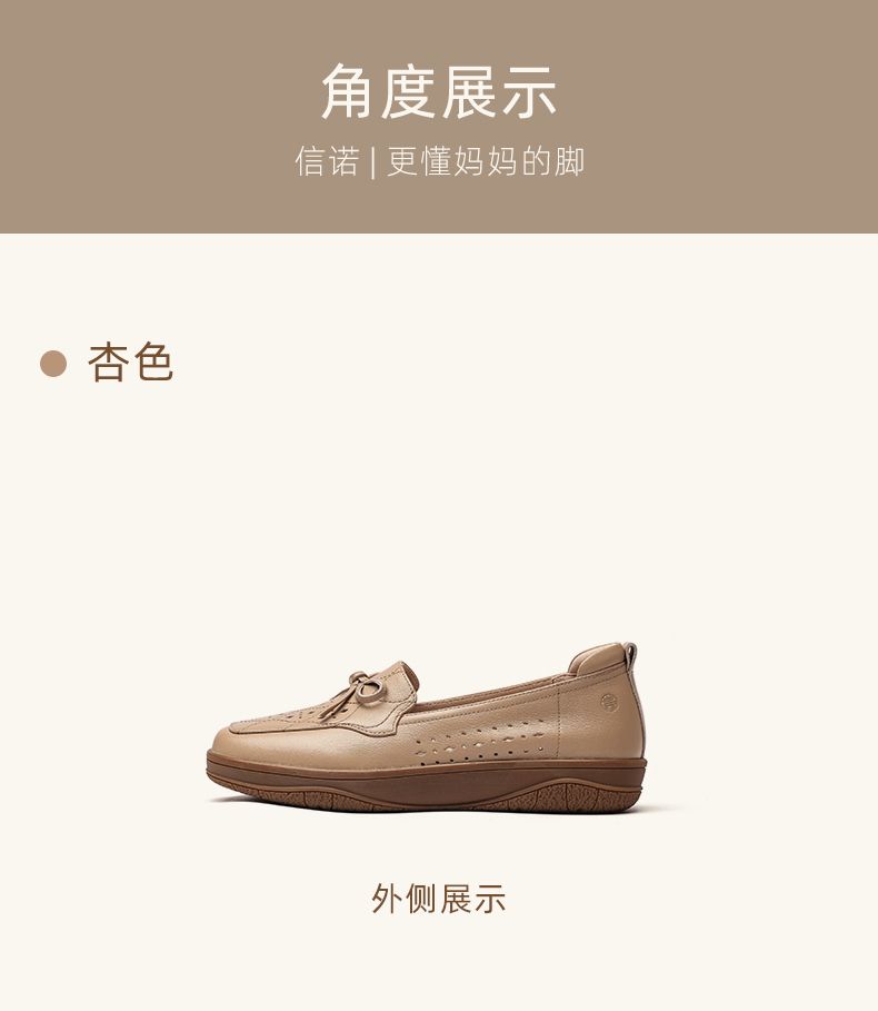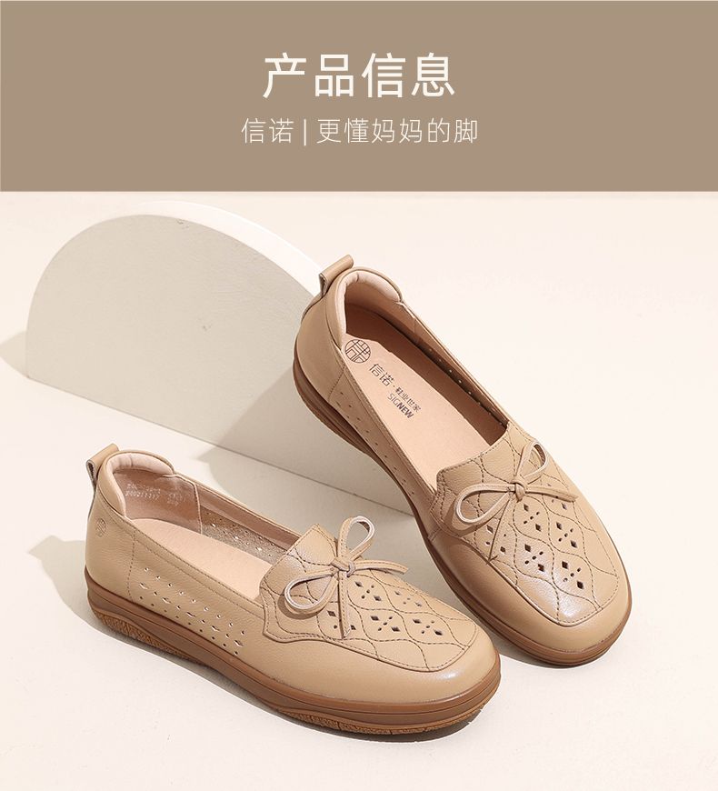 信诺 真皮透气女鞋 2024新款夏季舒适软底镂空凉鞋中老年妈妈鞋子24C3066-01