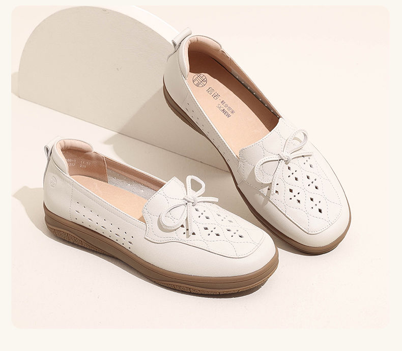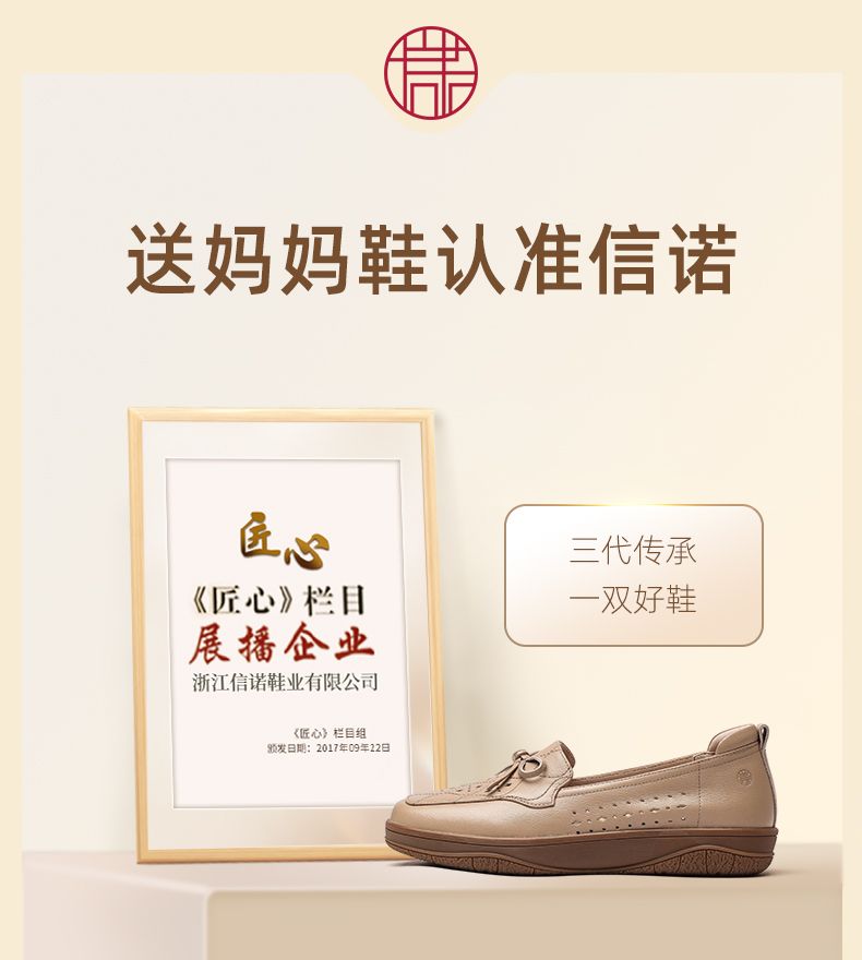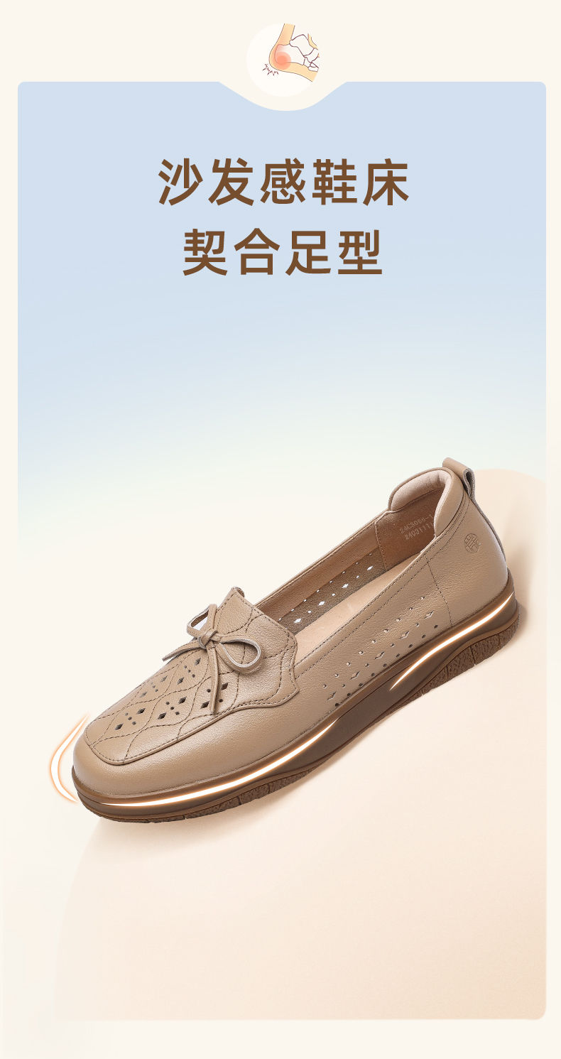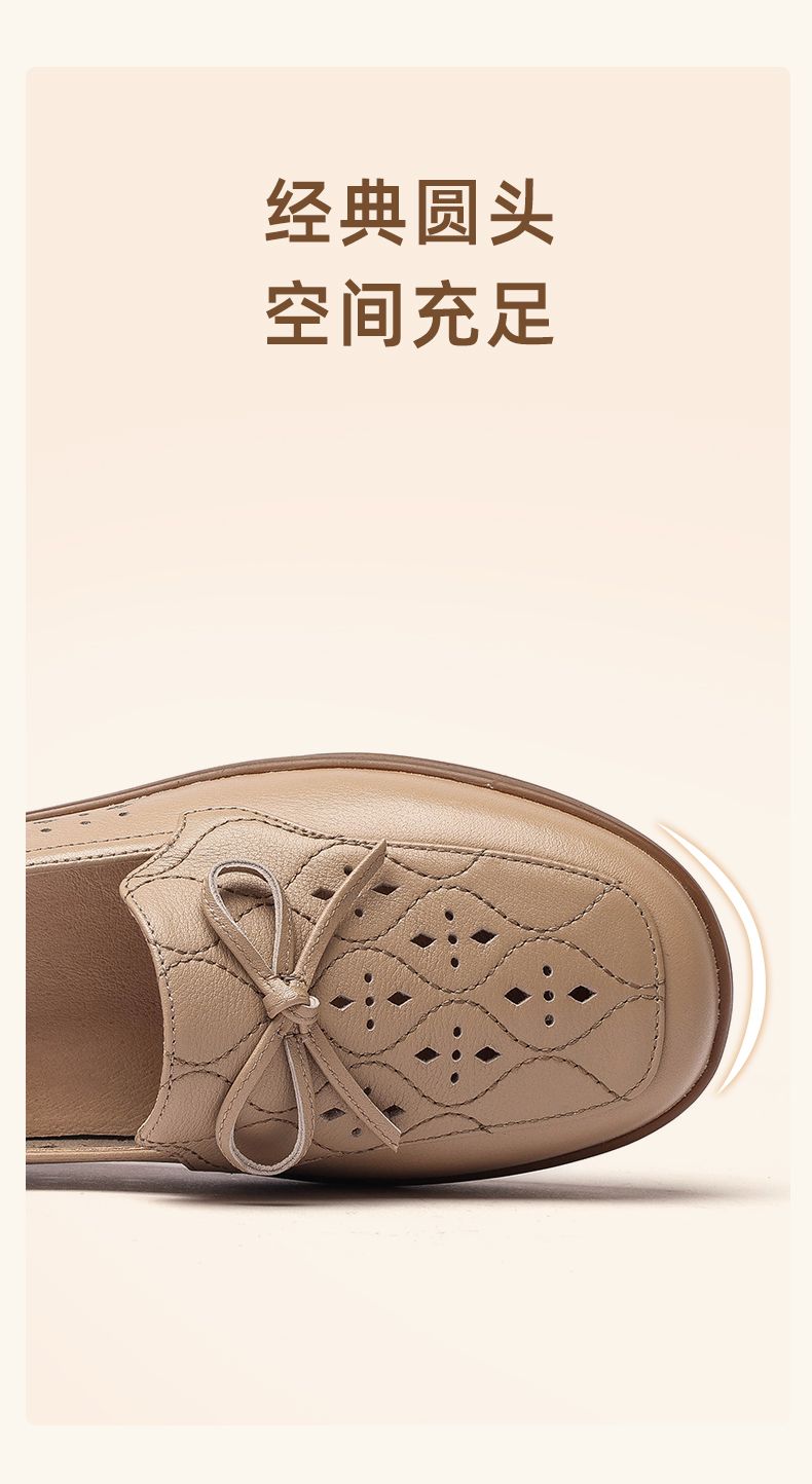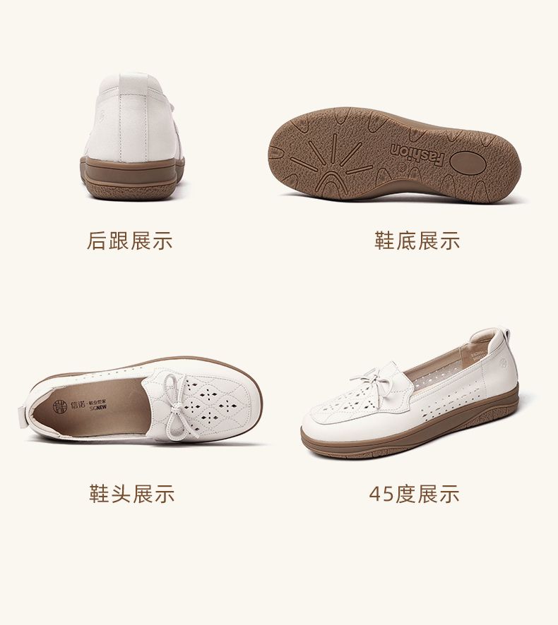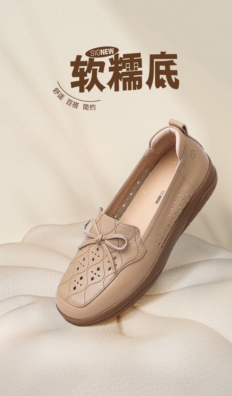 信诺 真皮透气女鞋 2024新款夏季舒适软底镂空凉鞋中老年妈妈鞋子24C3066-01