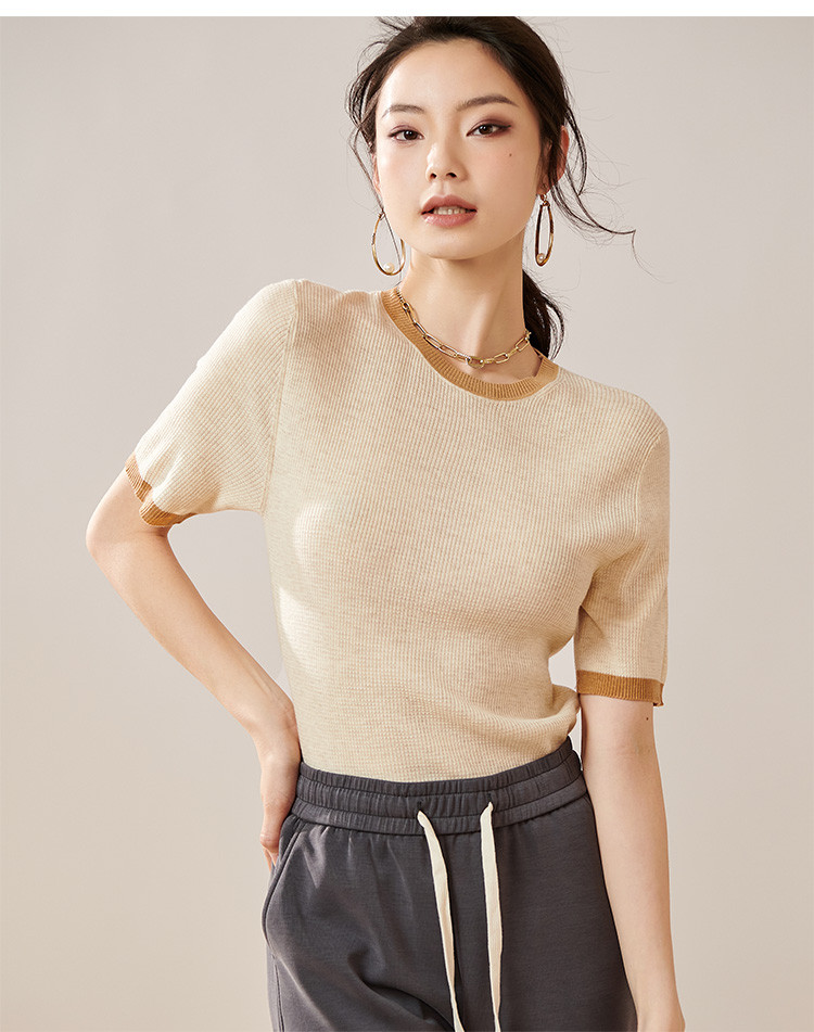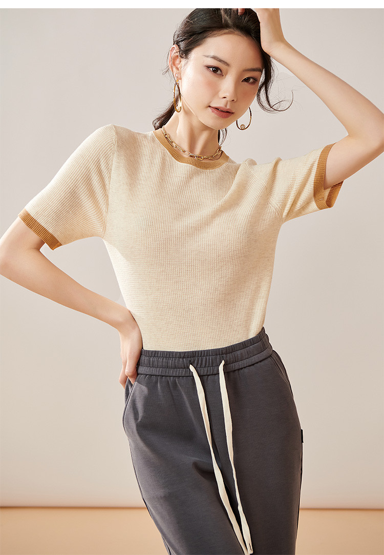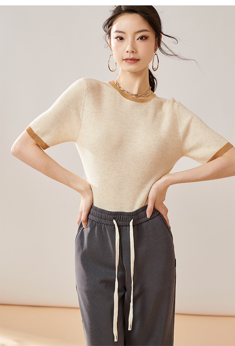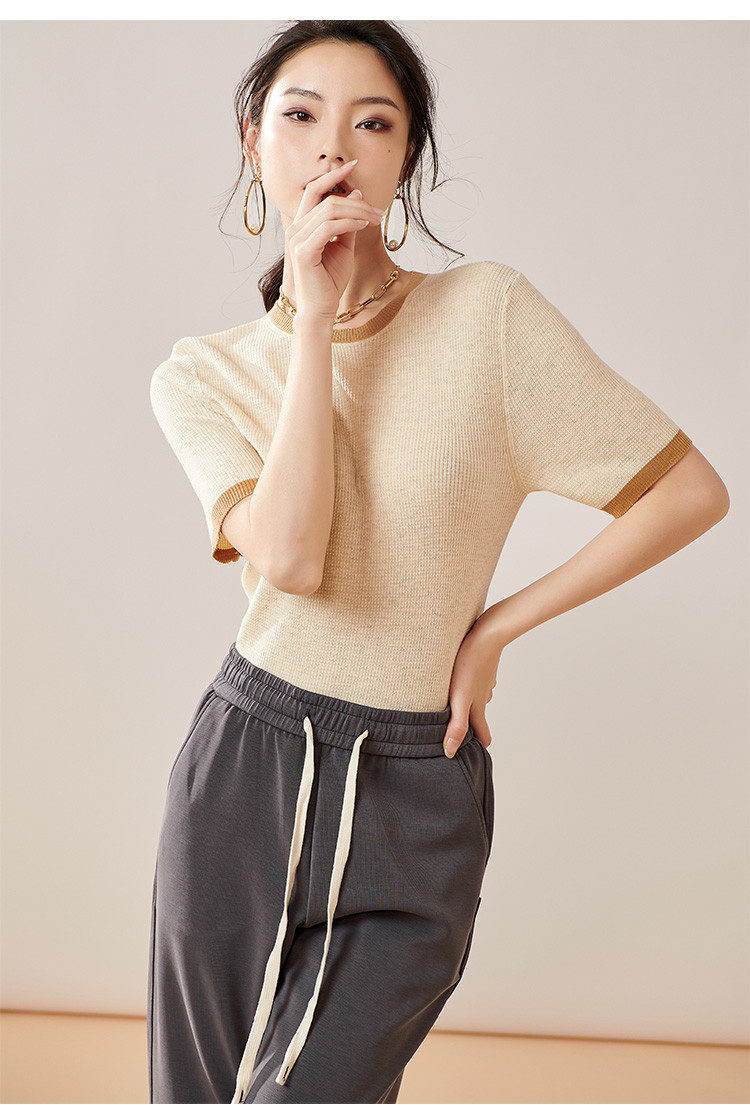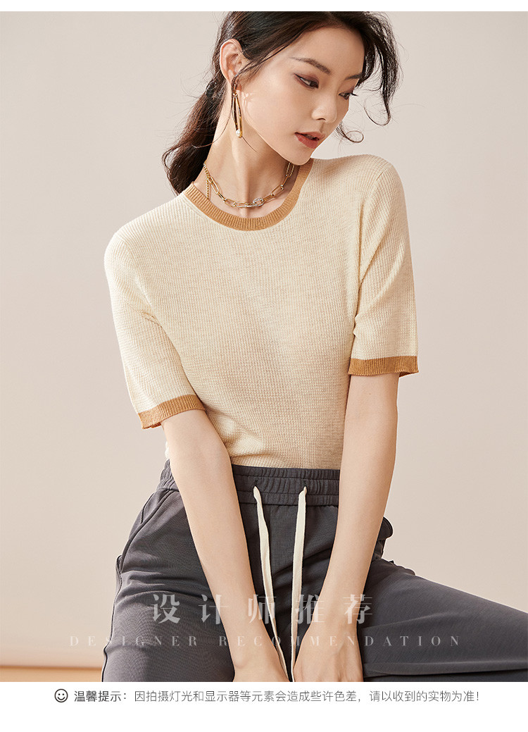 芳外【拼色基础针织T】2024夏季新款薄款弹力女式针织衫