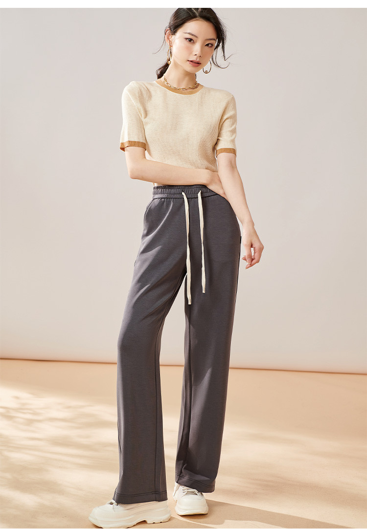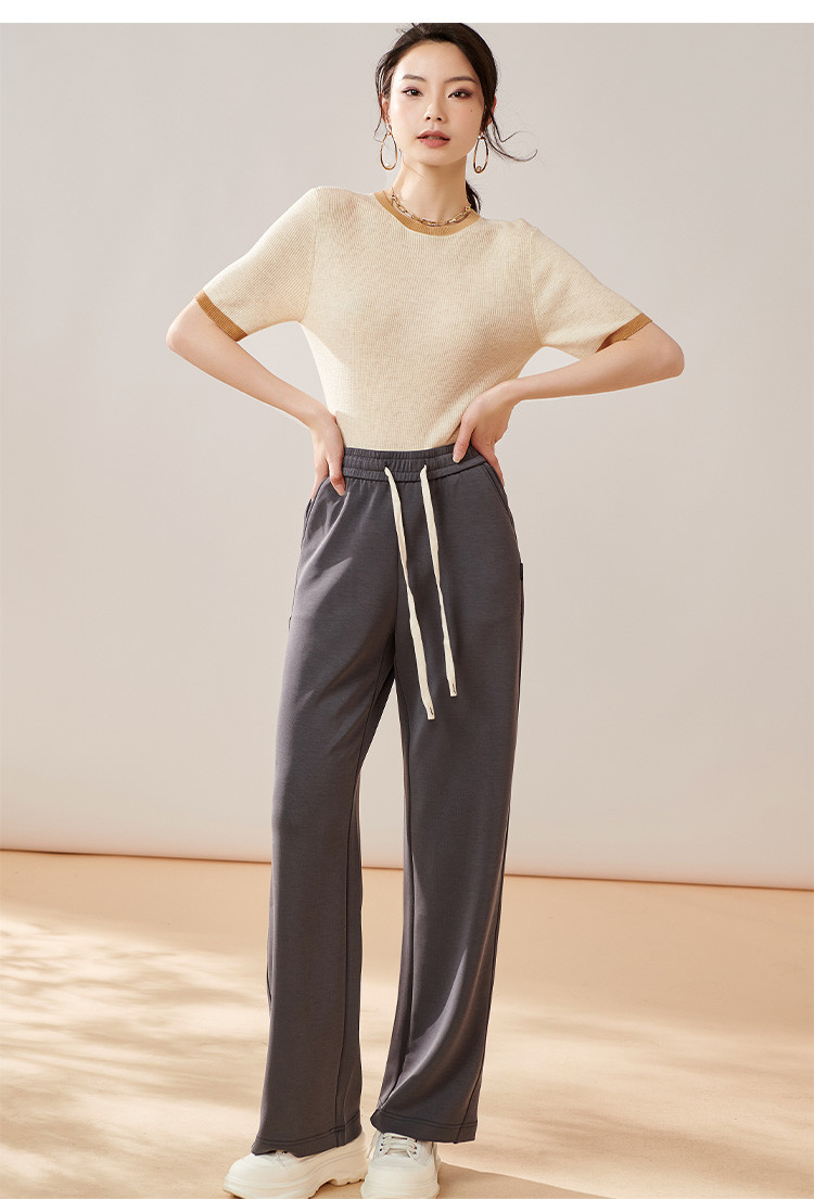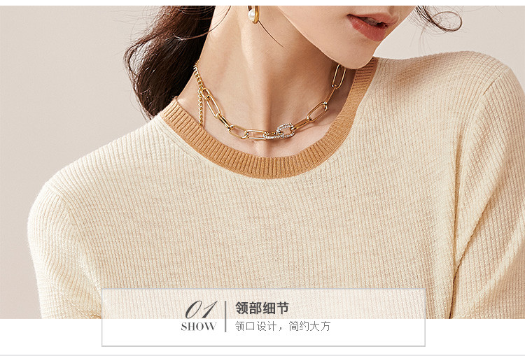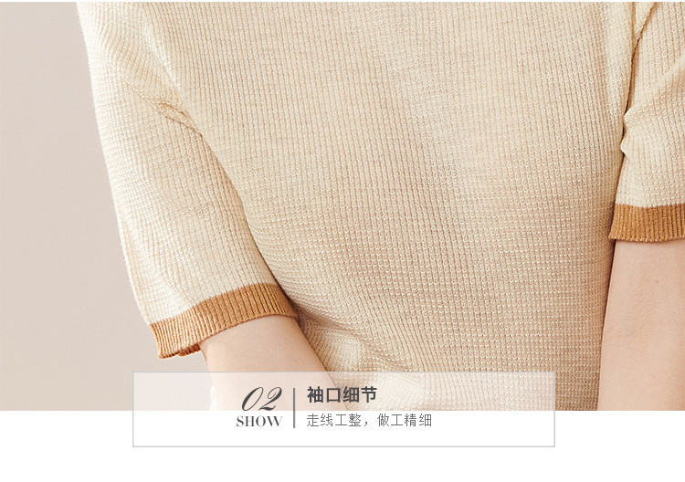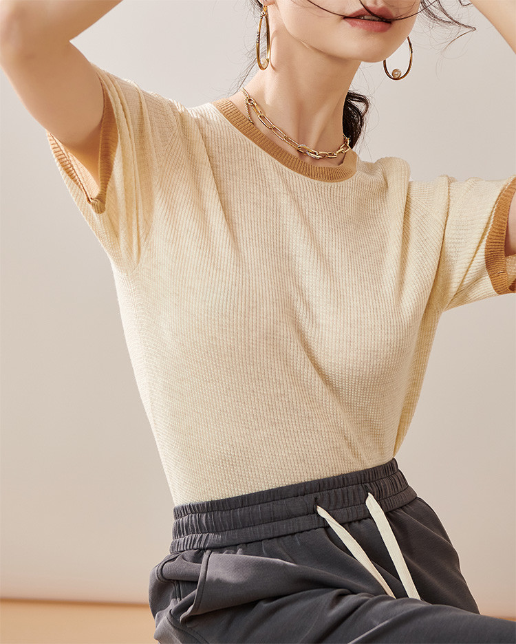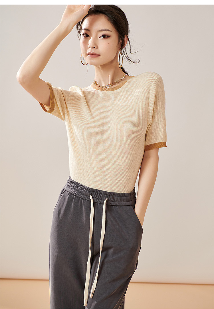 芳外【拼色基础针织T】2024夏季新款薄款弹力女式针织衫