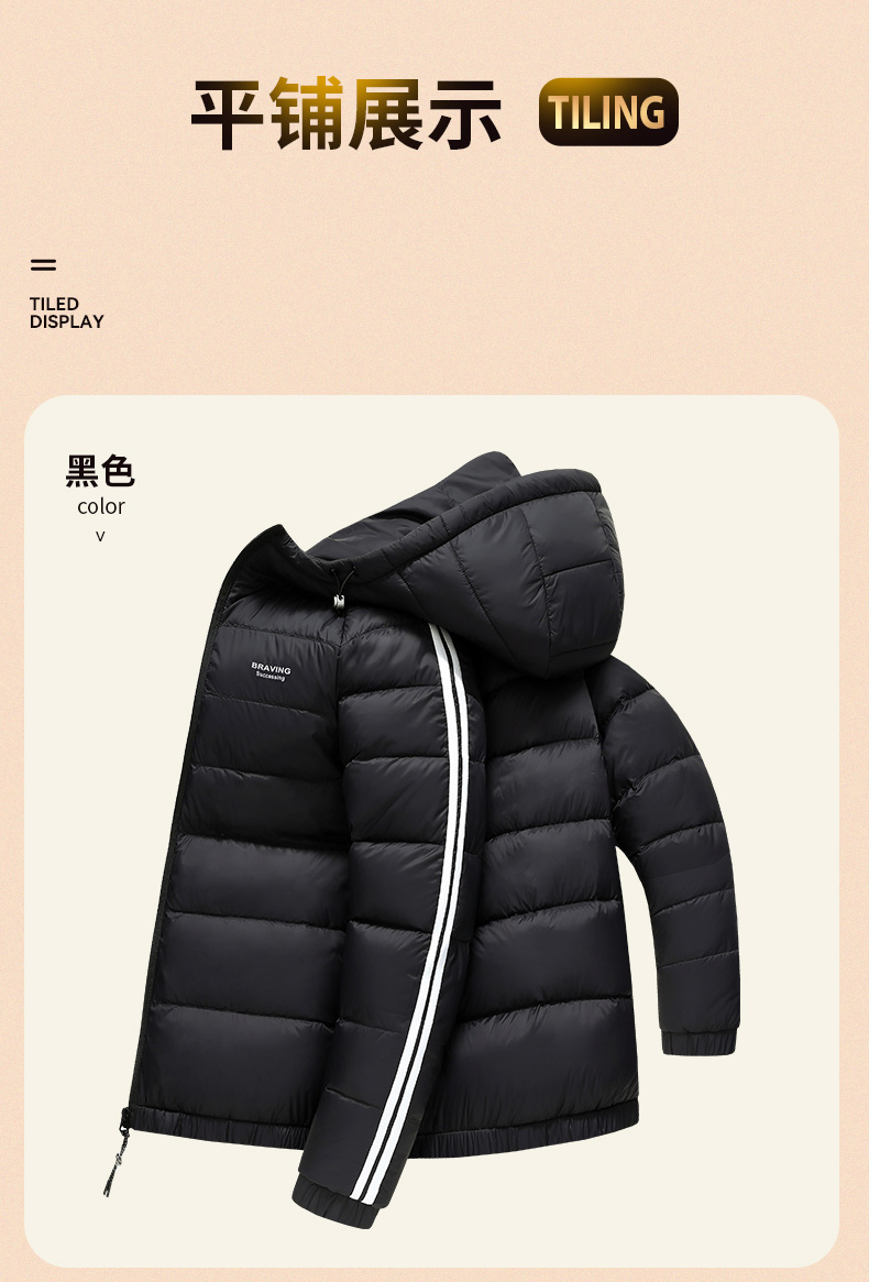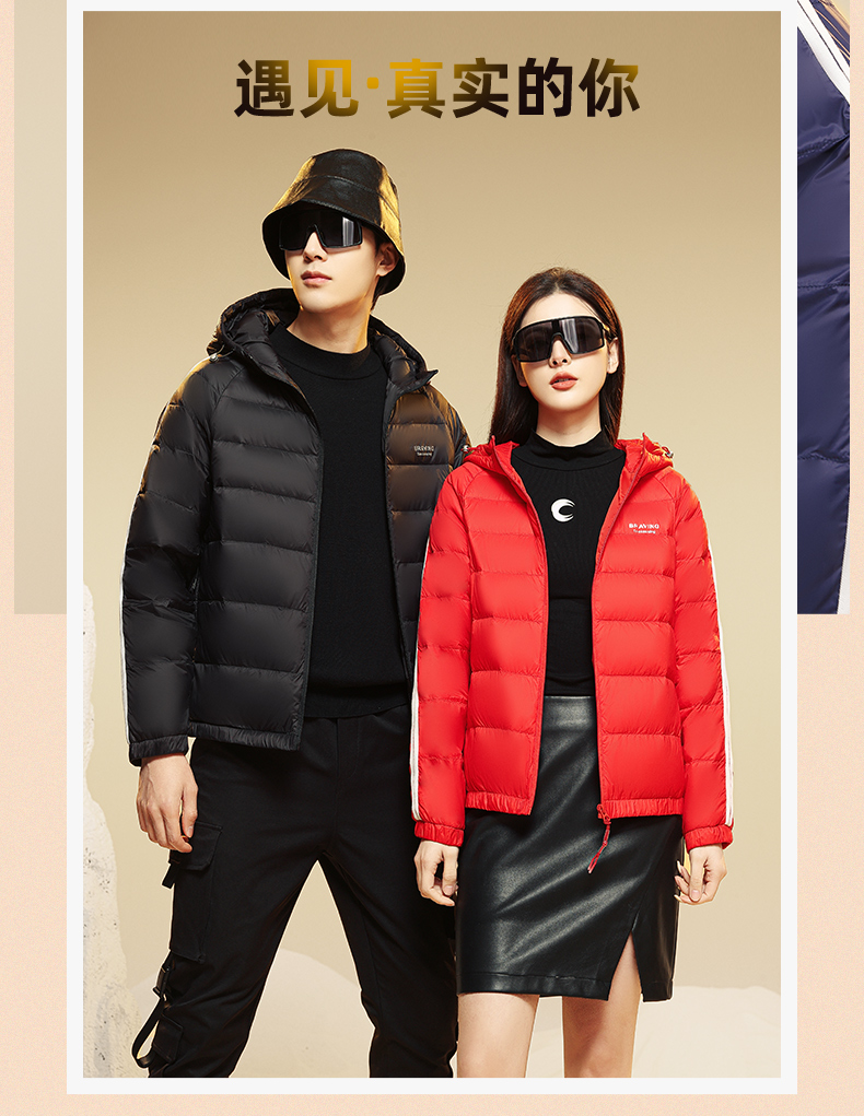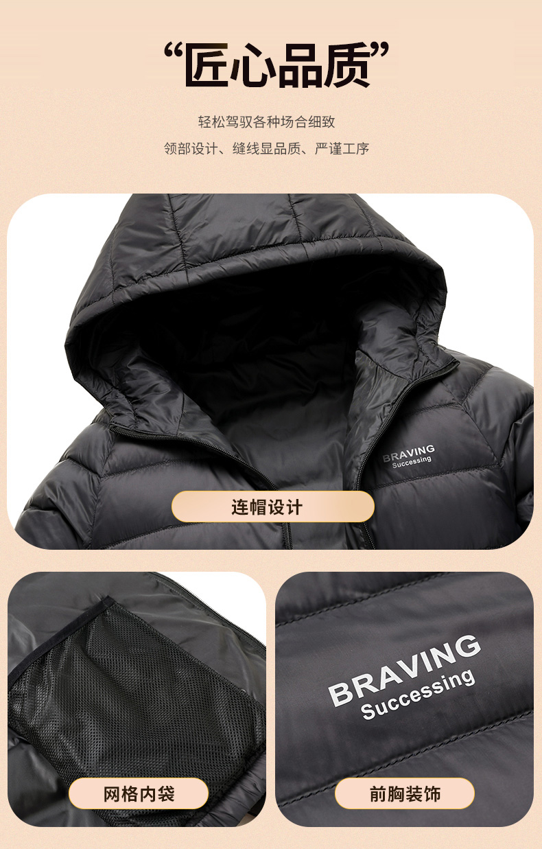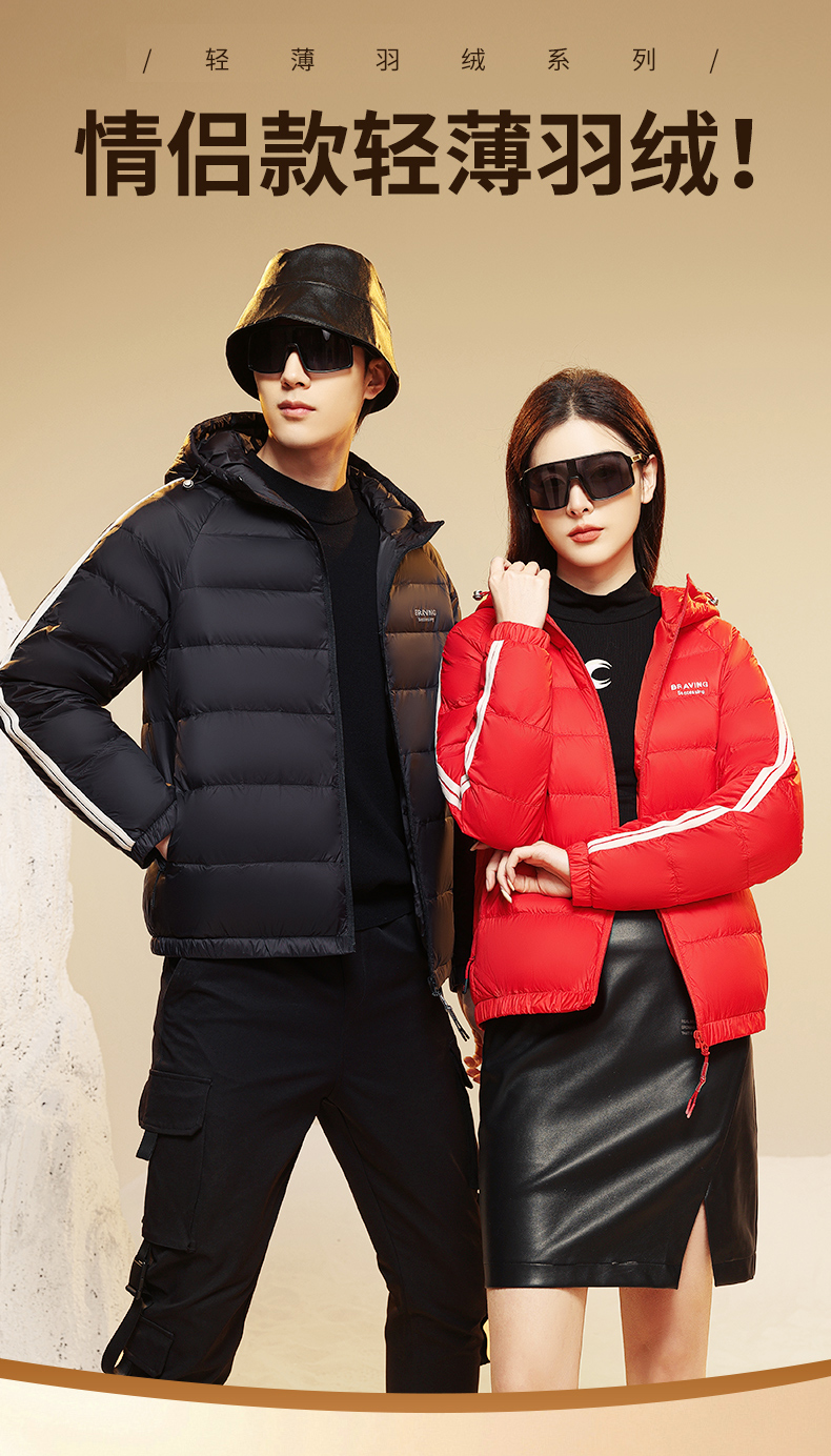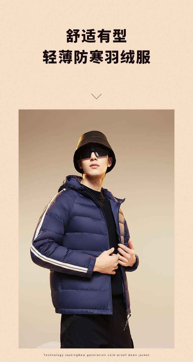 圣得西男士轻薄羽绒服秋冬款情侣款字母印花连帽羽绒外套2362941701