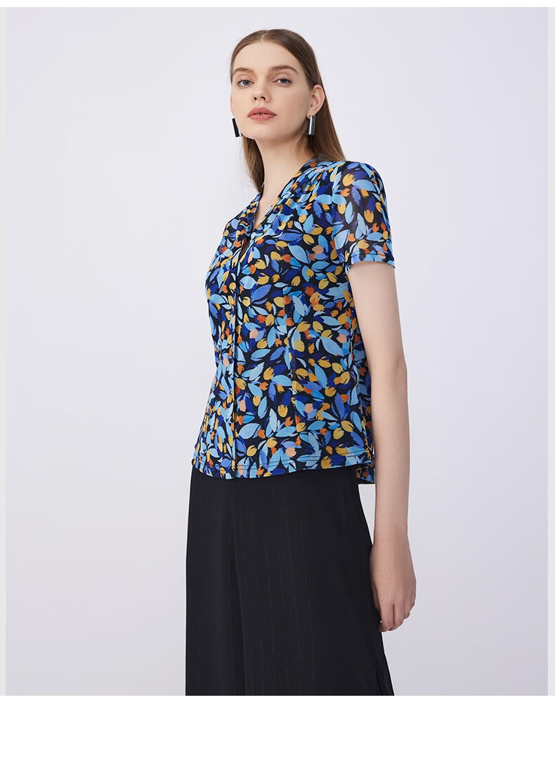 皮尔卡丹女装衬衫法式浪漫印花短袖淑女气质内搭衬衣P2208A2021L3