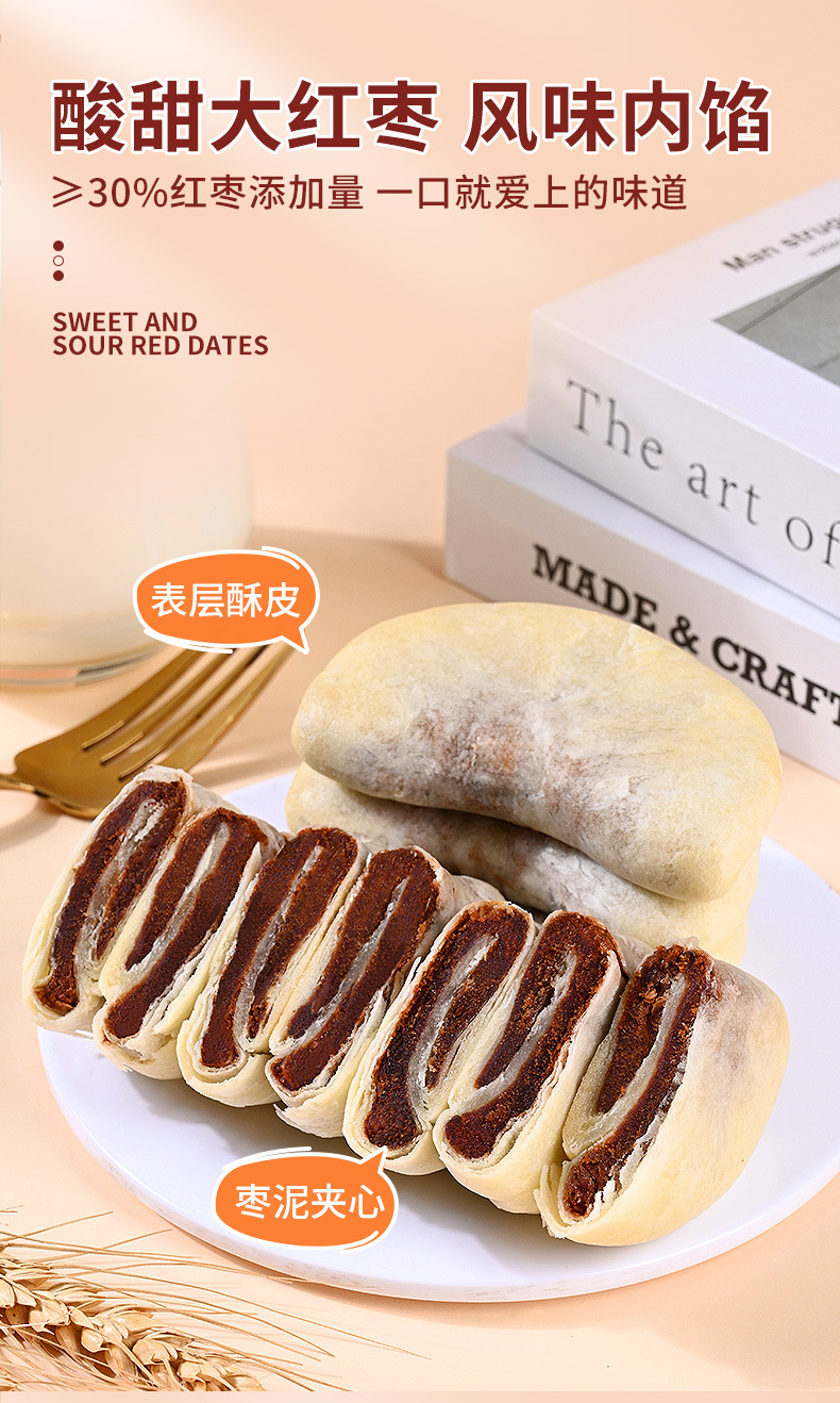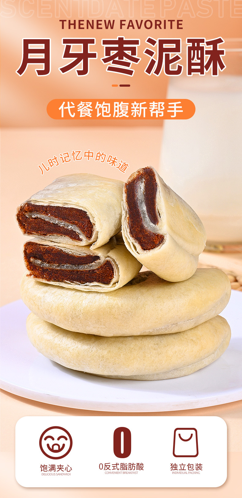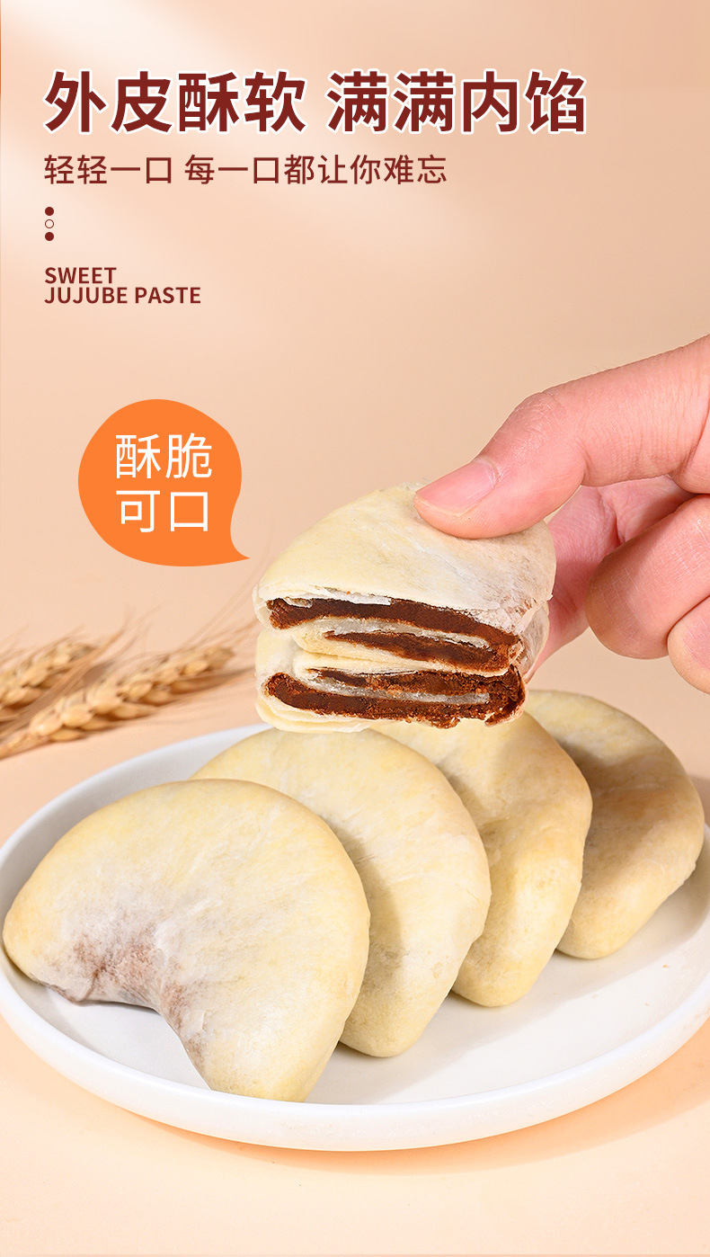 【月牙枣泥酥,层层叠加好风味】传统酥皮月牙枣泥酥皮糕点,皮薄馅厚香醇绵密入口即化无回味无穷,蔗糖粗粮早餐代餐饱腹食品现做现发零食QQ