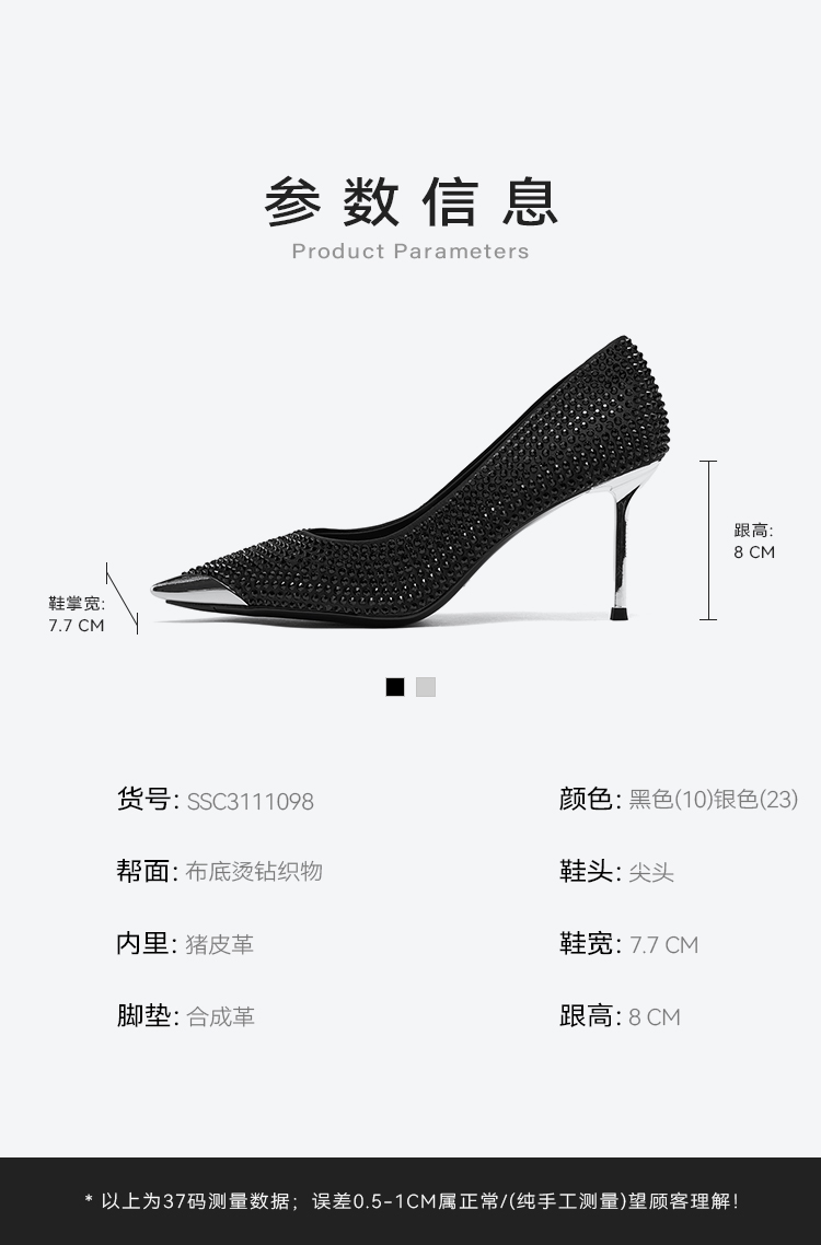 星期六精致闪钻优雅尖头细高跟SSC3111098