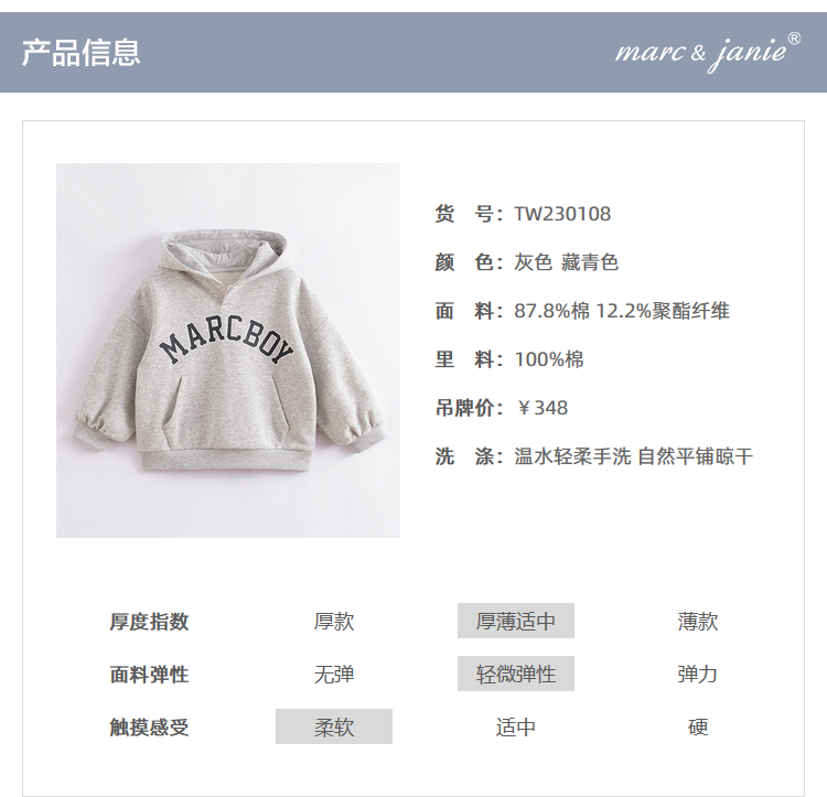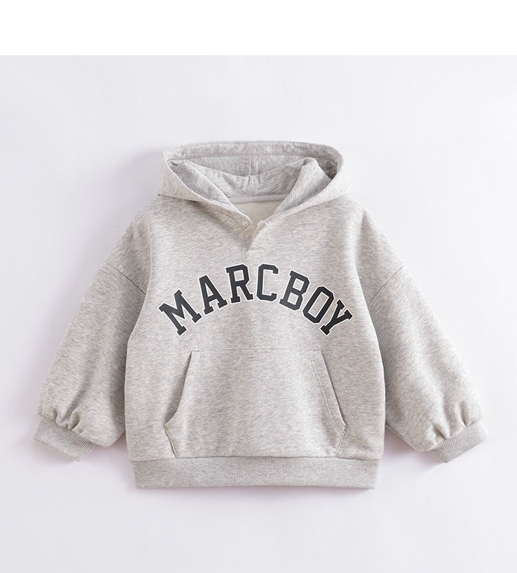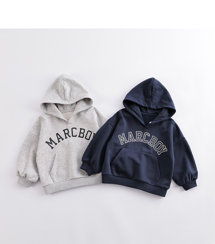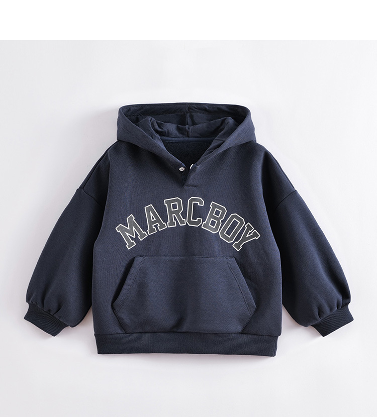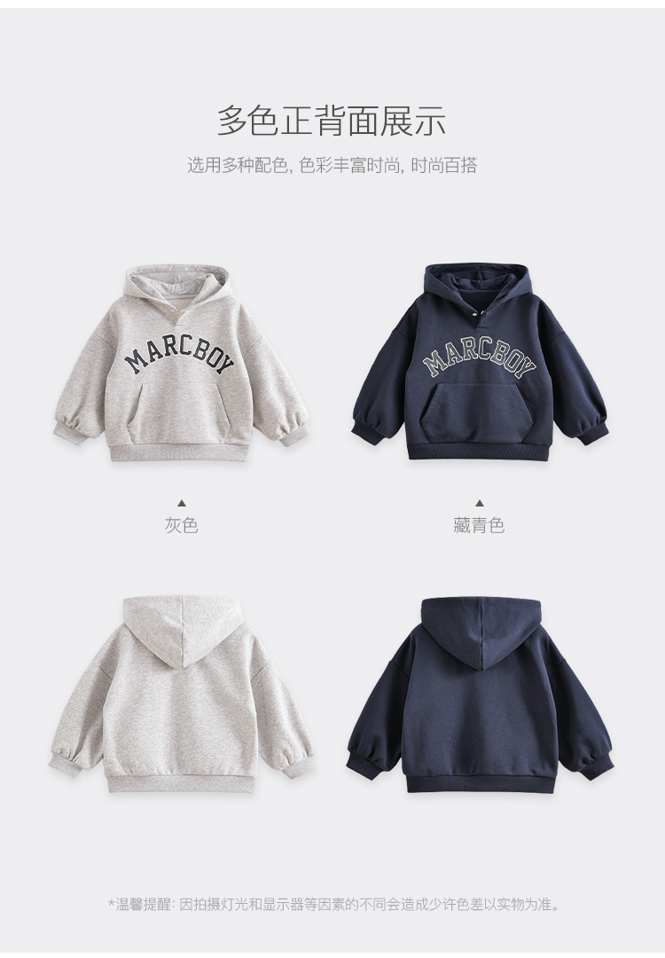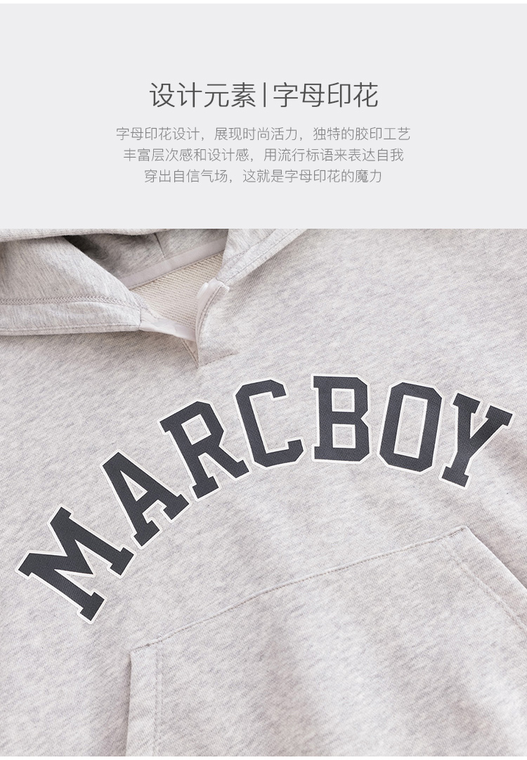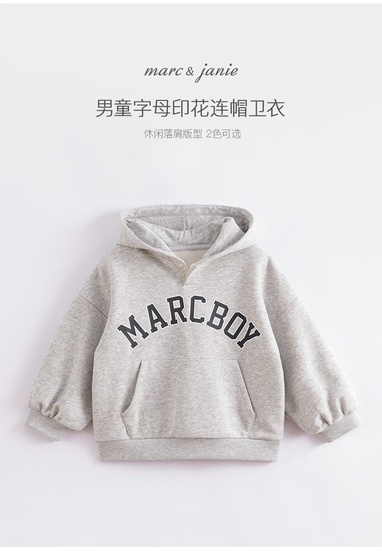 马克珍妮春装新款 男童时尚学院风落肩连帽卫衣230108