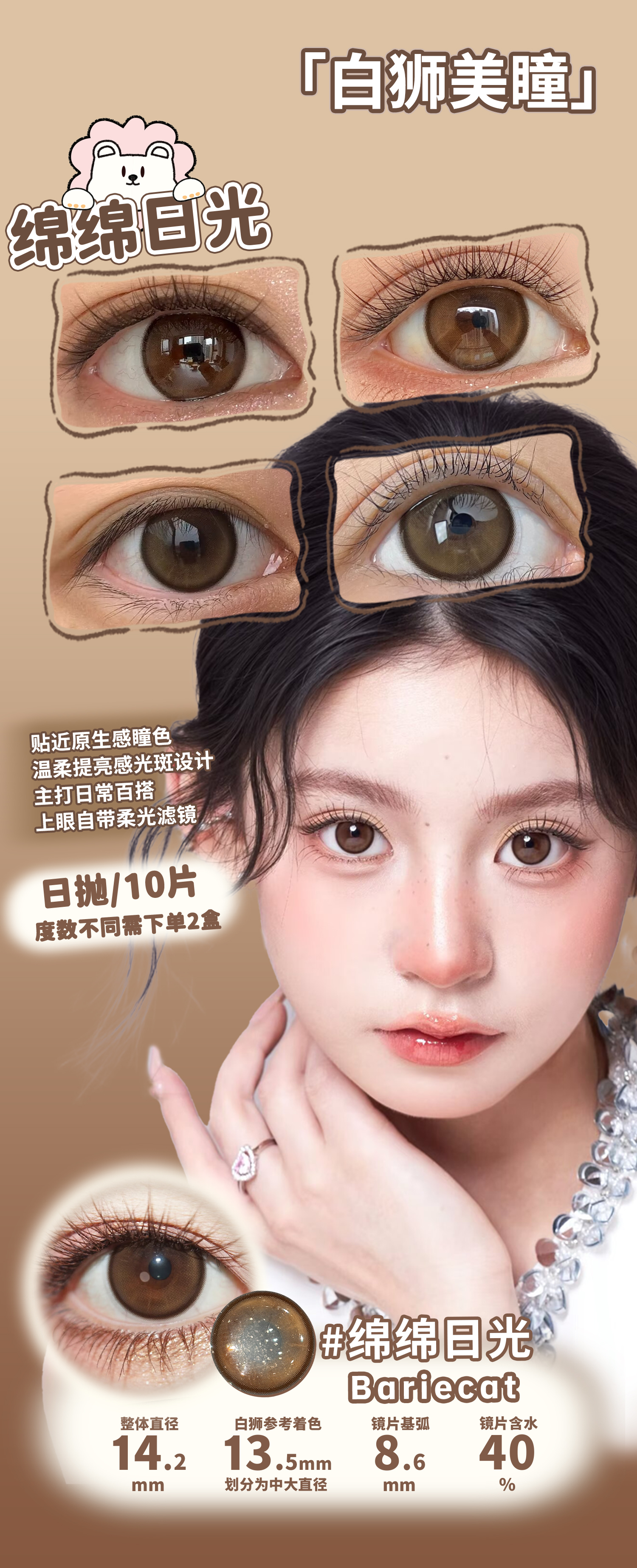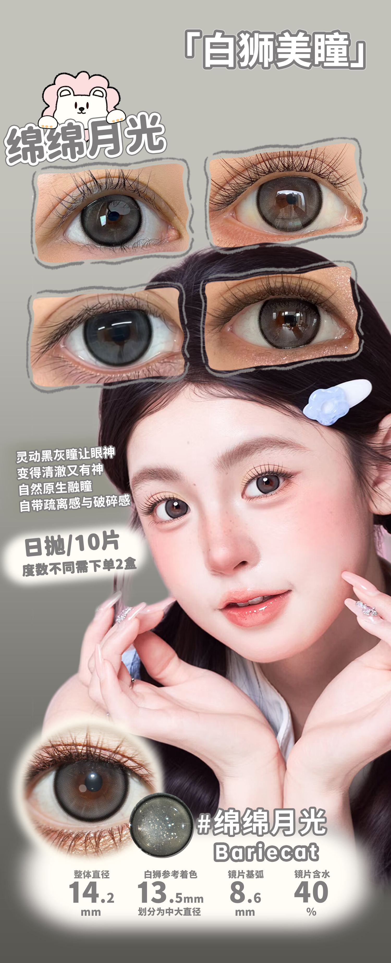 Bariecat日抛 · 绵绵月光&绵绵日光 · 14.2mm白狮参考着色中大直径 · 十片装