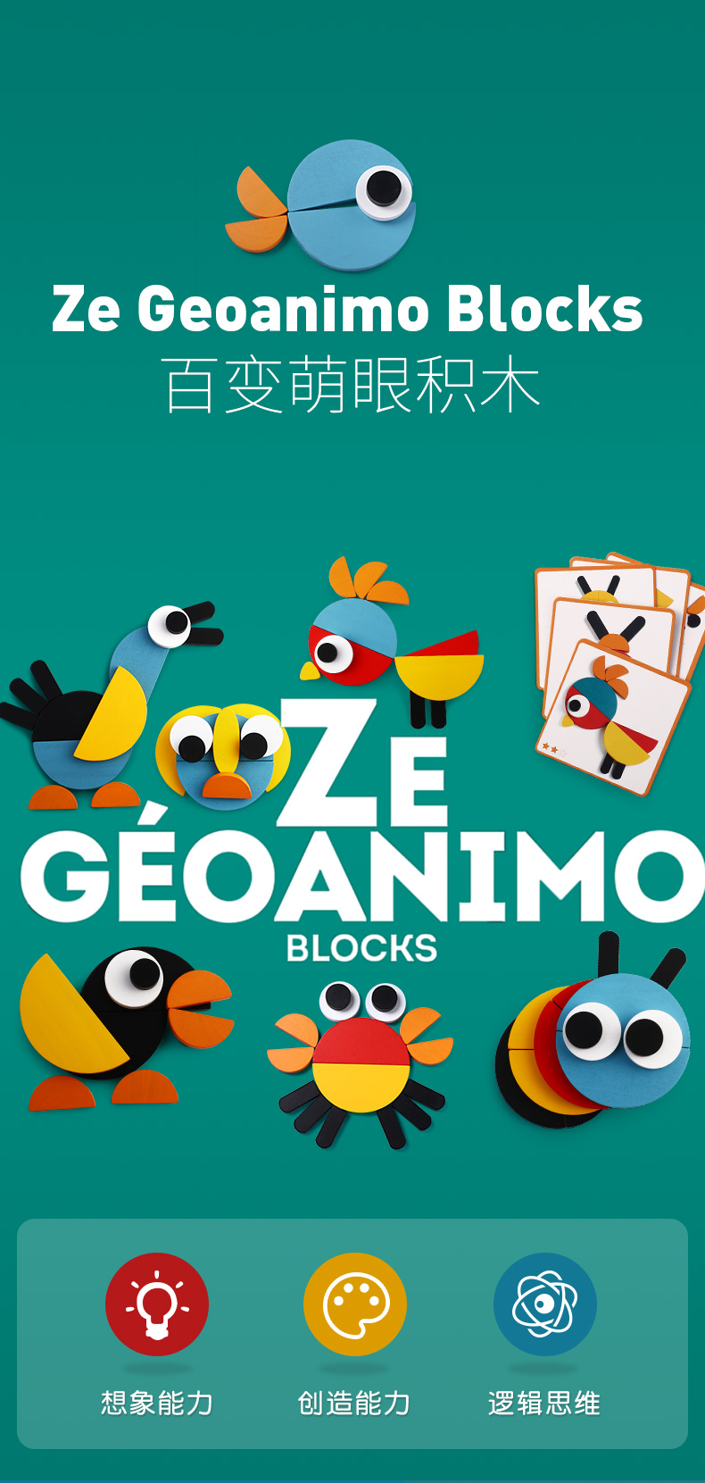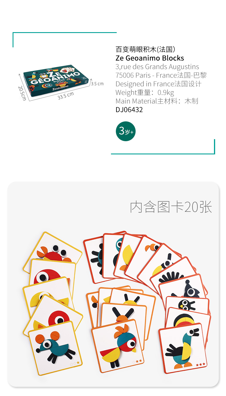 Djeco百变萌眼木制积木