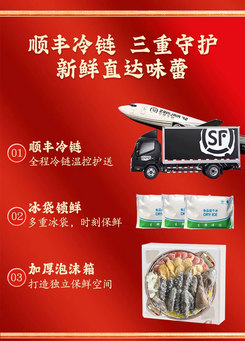 | 【品名】海朴佛跳墙十参十鲍十虾 【规格】2000g/盒 【保质期】12个月 【储存条件】-18℃以下冷冻保存 【发货包装】礼盒装+冰袋+保温箱 【产地】福建 【发货地】福建 【发货快递】顺丰 【不发货地区】新疆、西藏、青海、甘肃、宁夏、港澳台地区不发 【发货时效】48小时发货,节假日顺延 【温馨提示】不支持七天无理由退换货 |