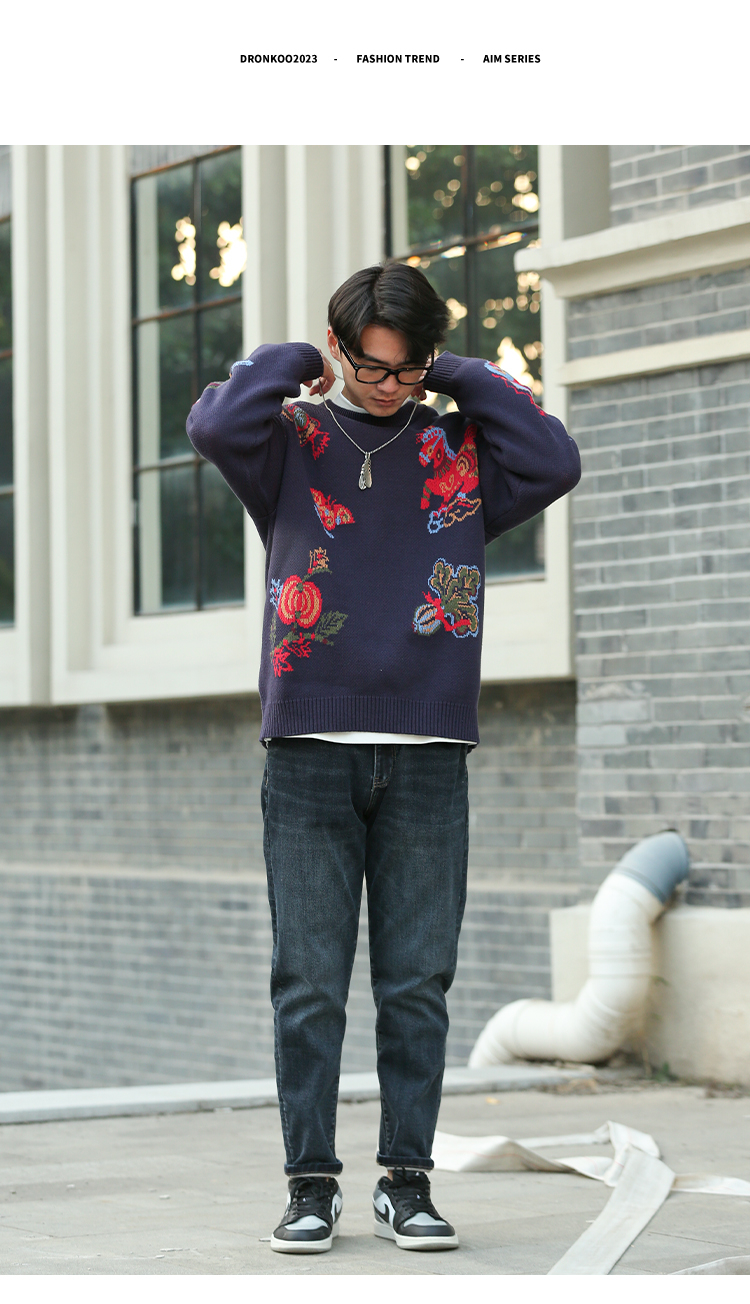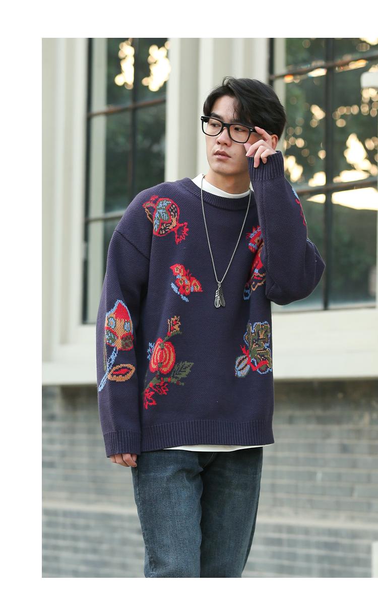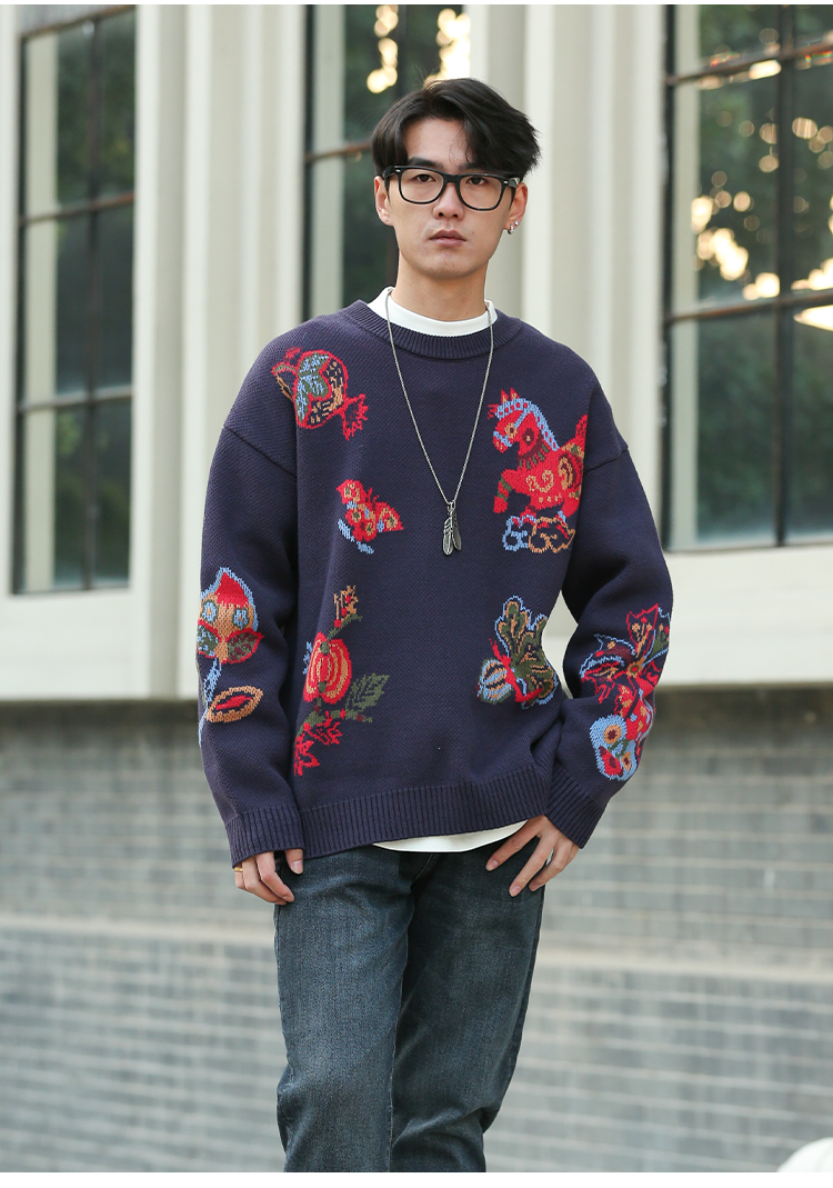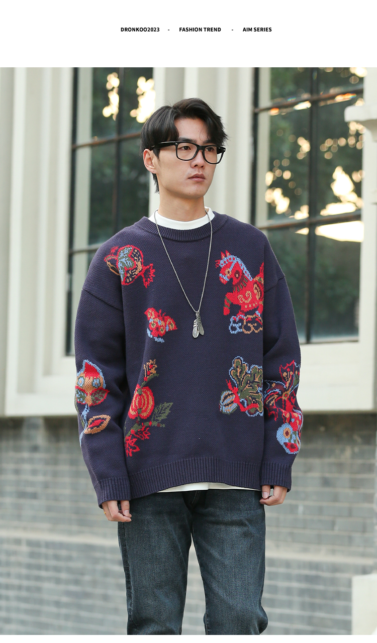 DRONKOO 2025 圆领满幅马蝴蝶植物提花厚毛衣