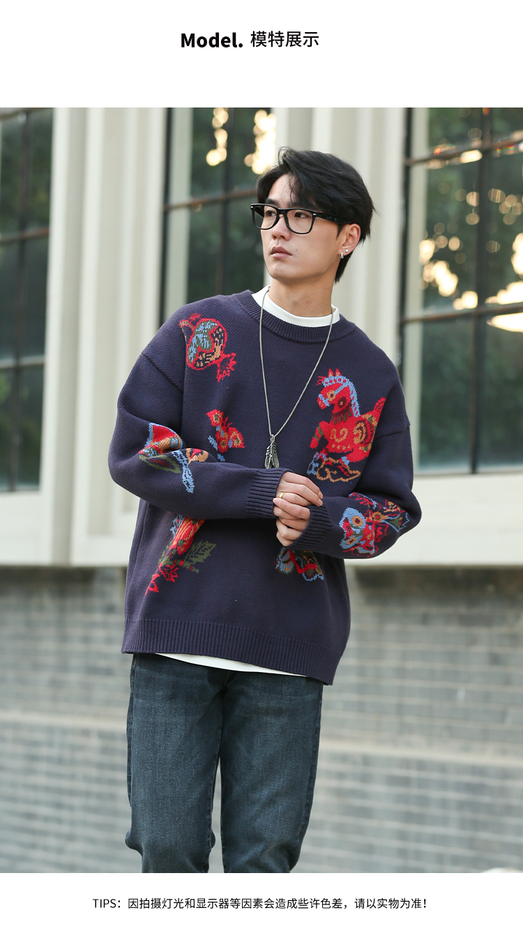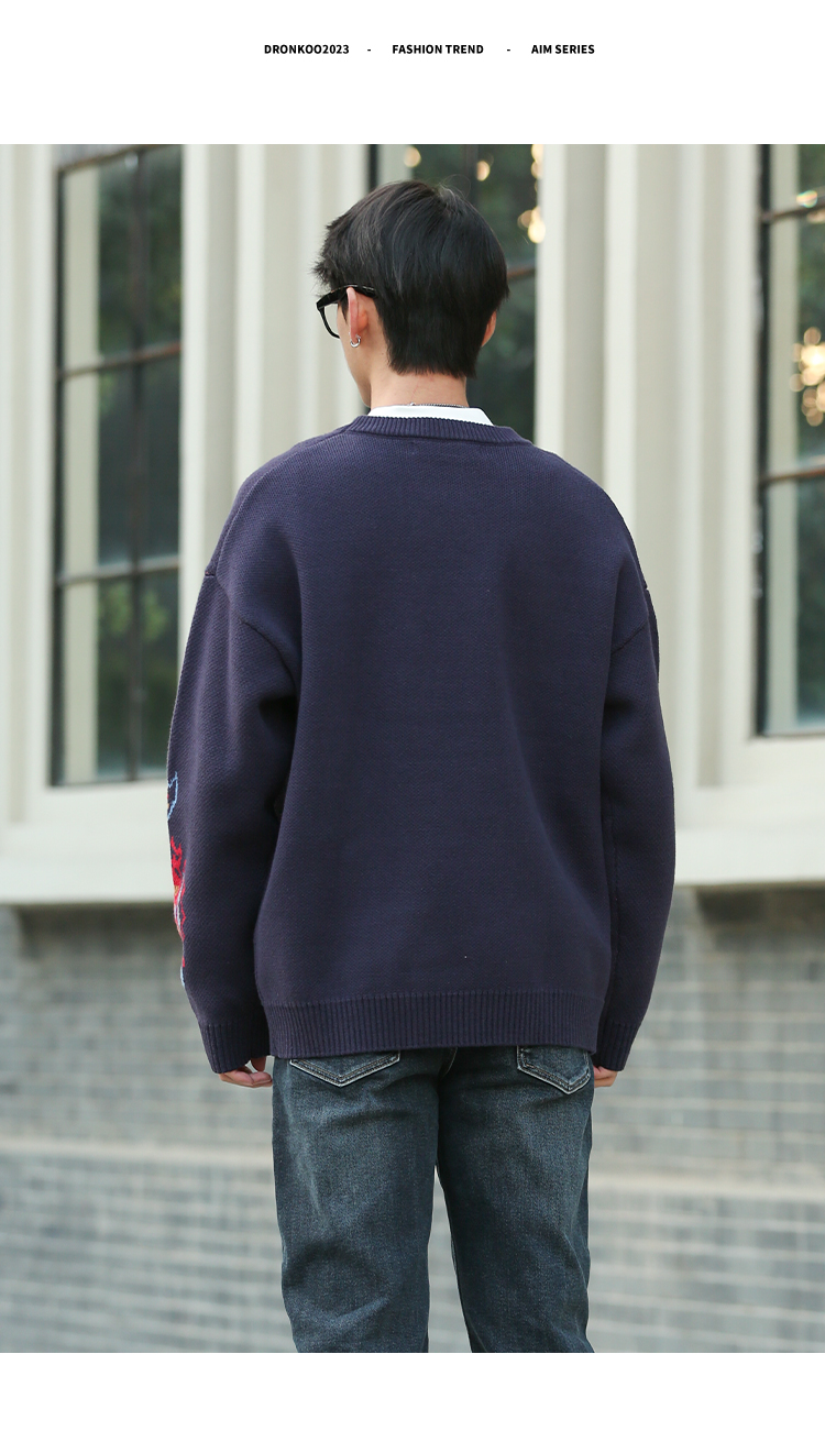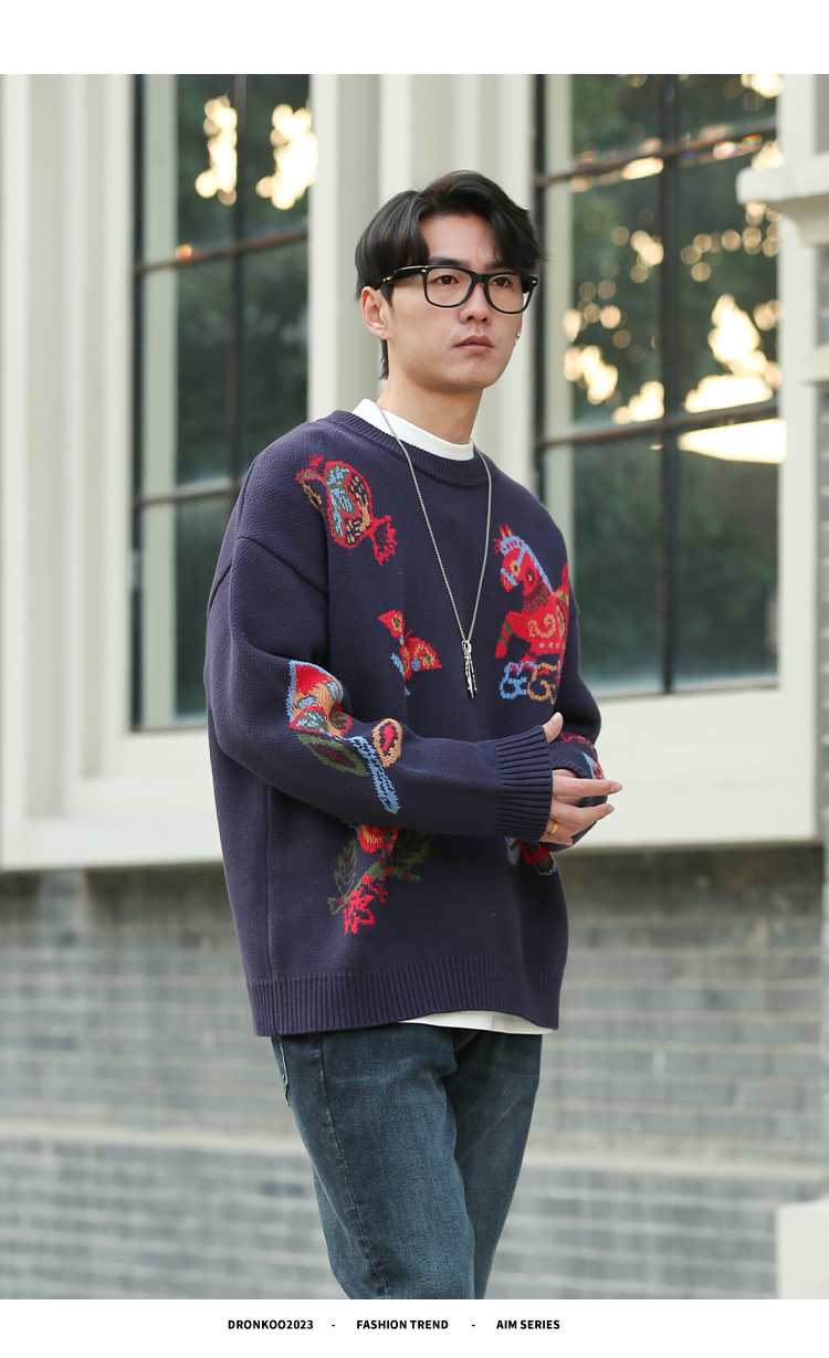 DRONKOO 2025 圆领满幅马蝴蝶植物提花厚毛衣