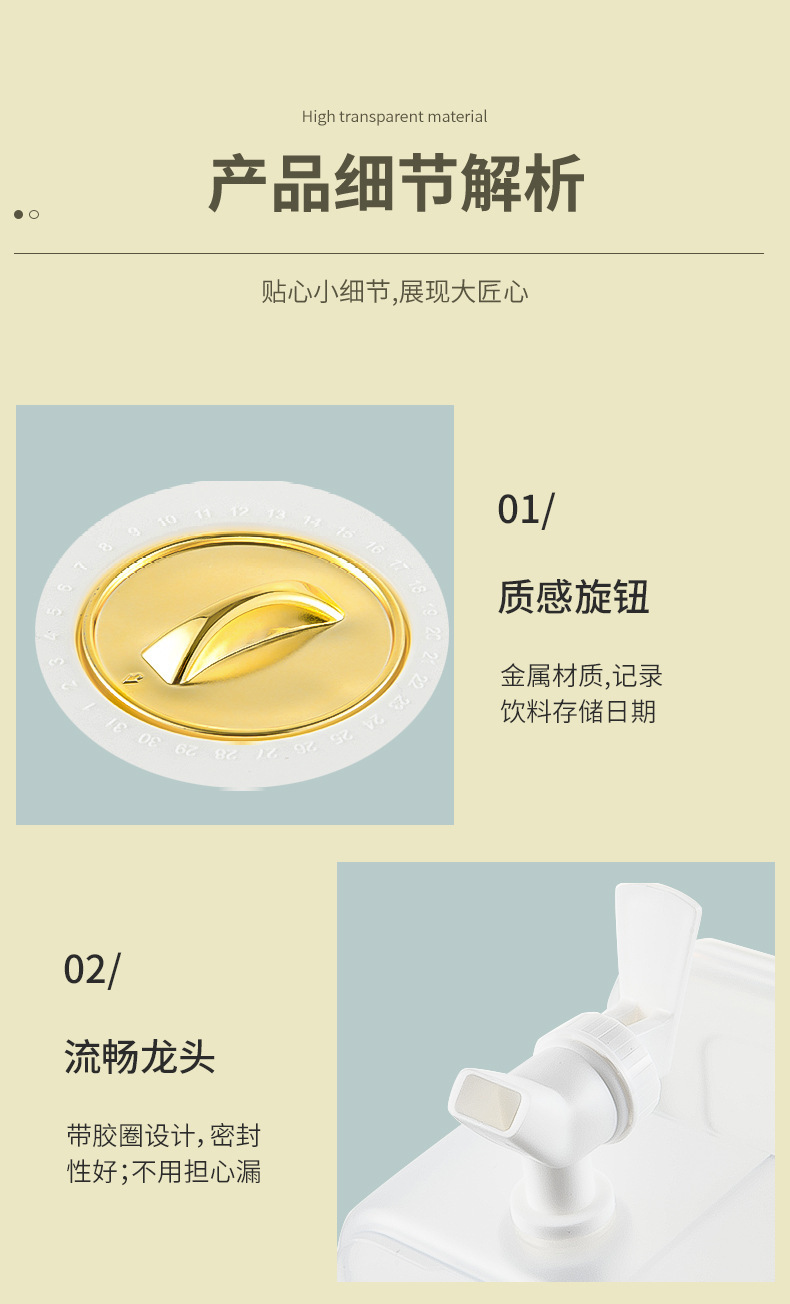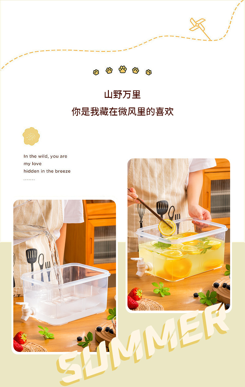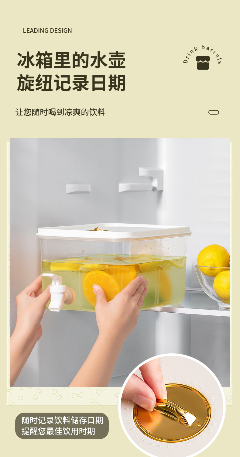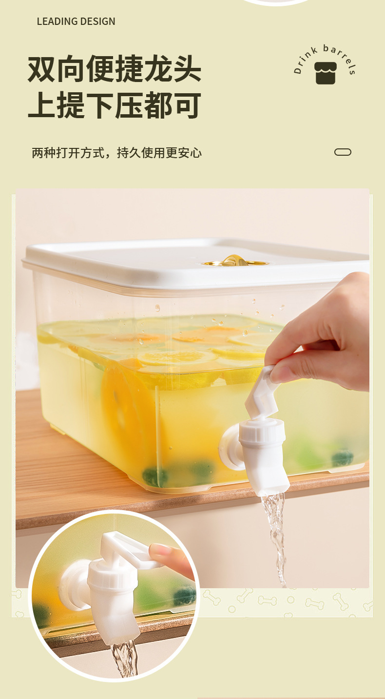「大容量5L装」冷饮大容量水果茶冰镇凉水桶冰箱冷水壶带龙头野餐露营冷水壶餐饮用具