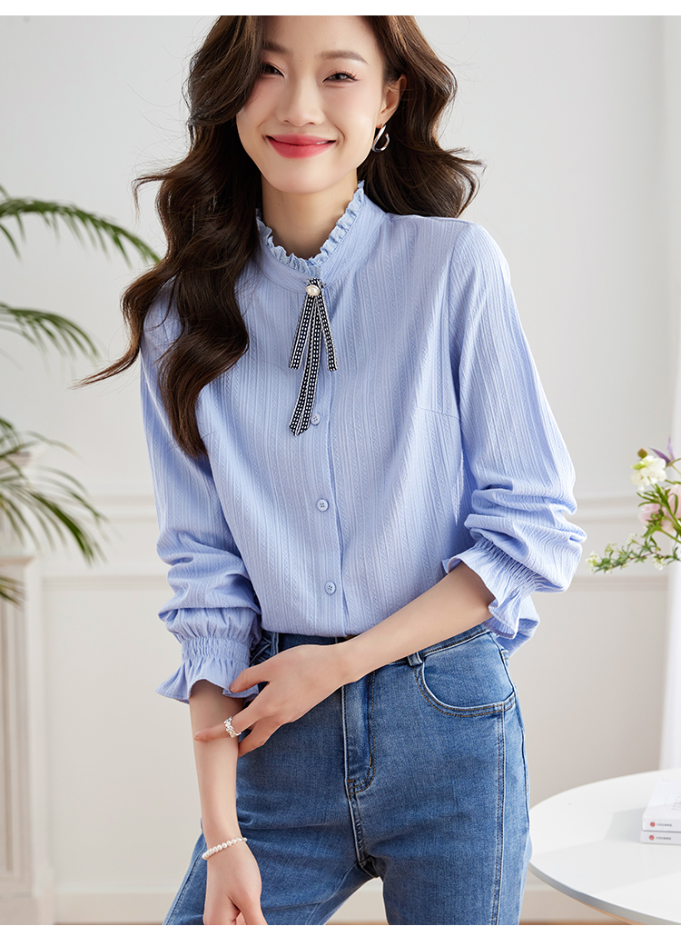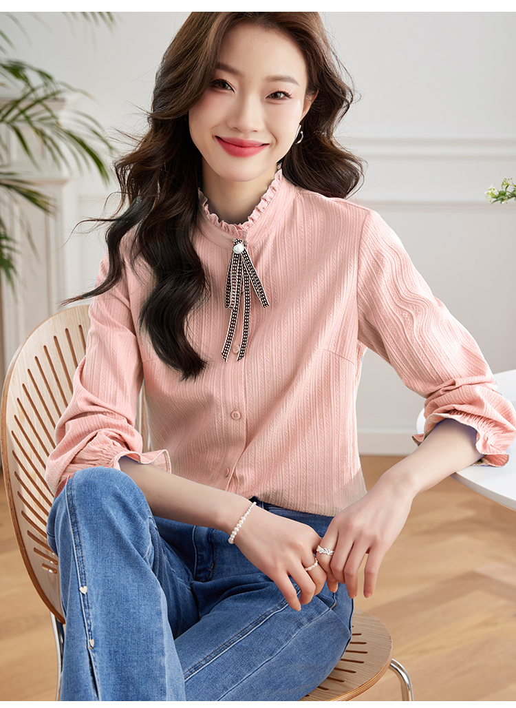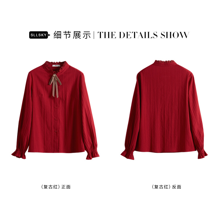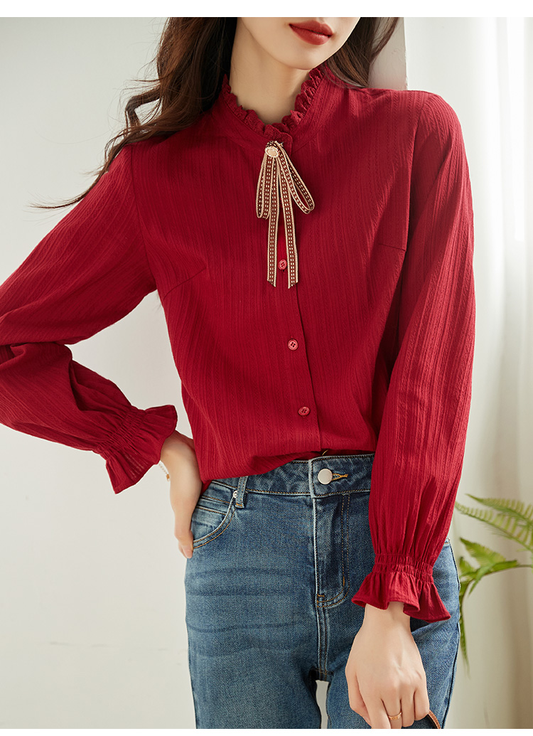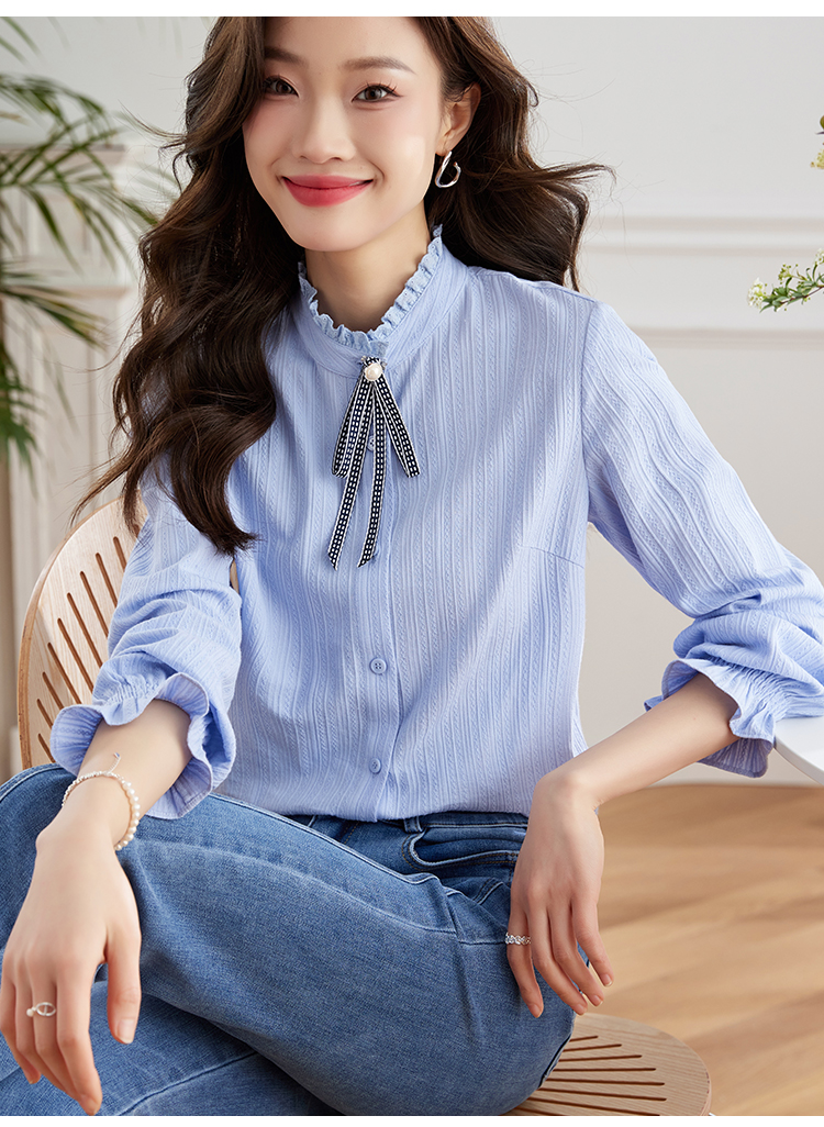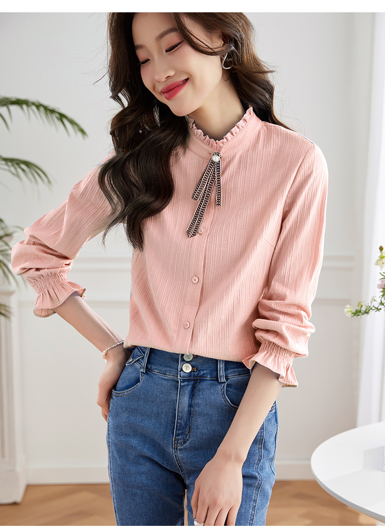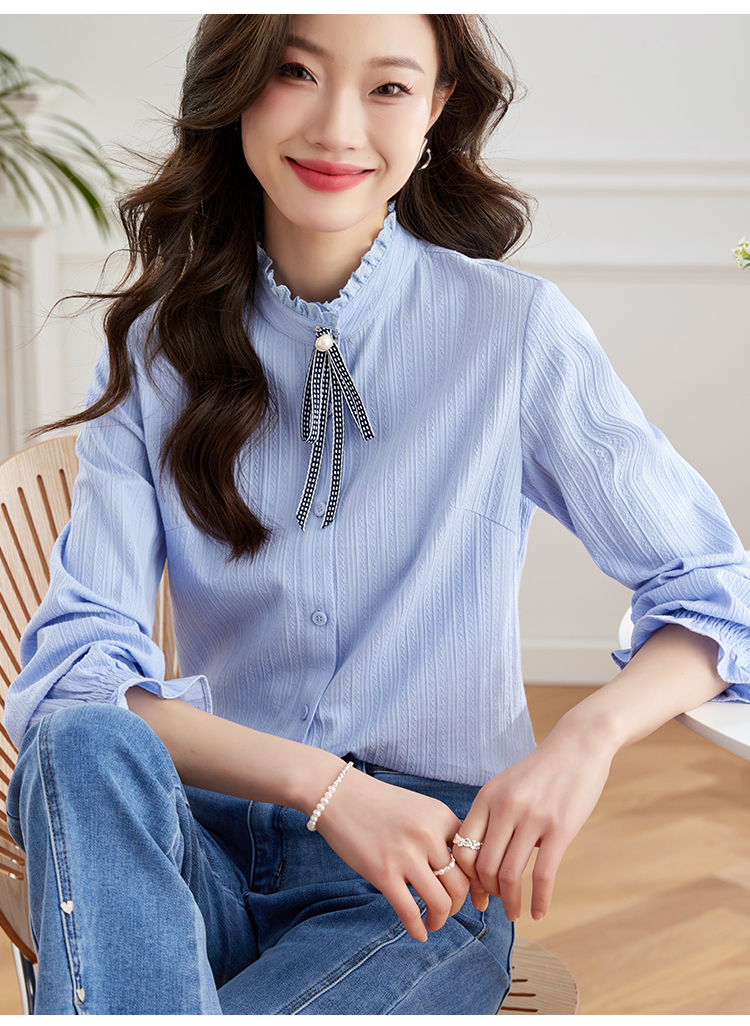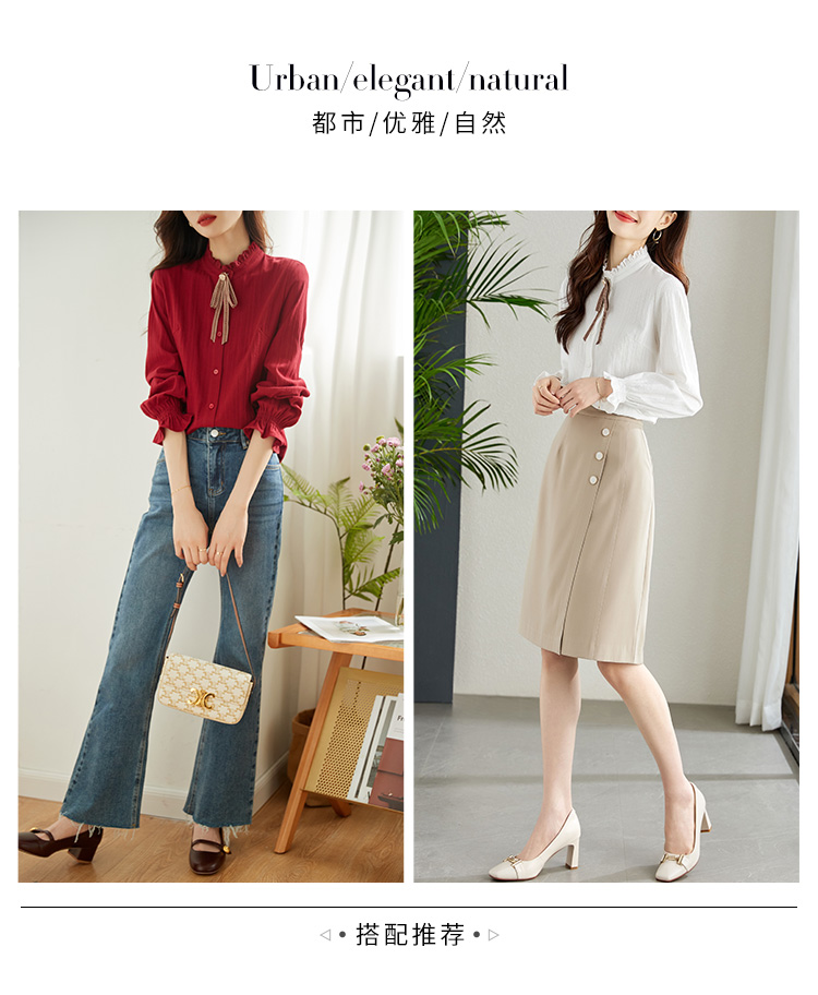 【专属特价】熙世界纯棉肌理衬衫设计感小众法式复古木耳边立领秋装上衣女新款