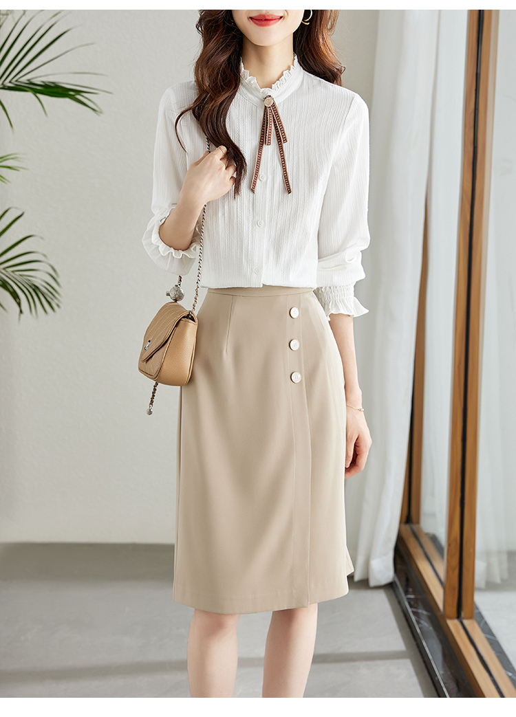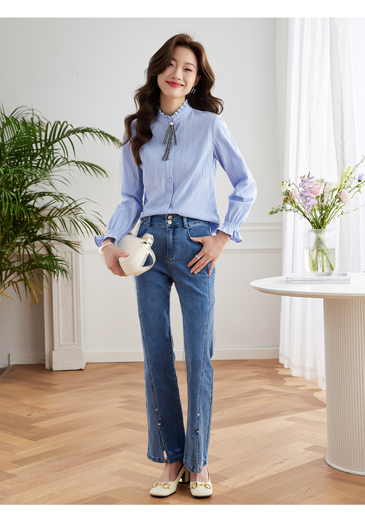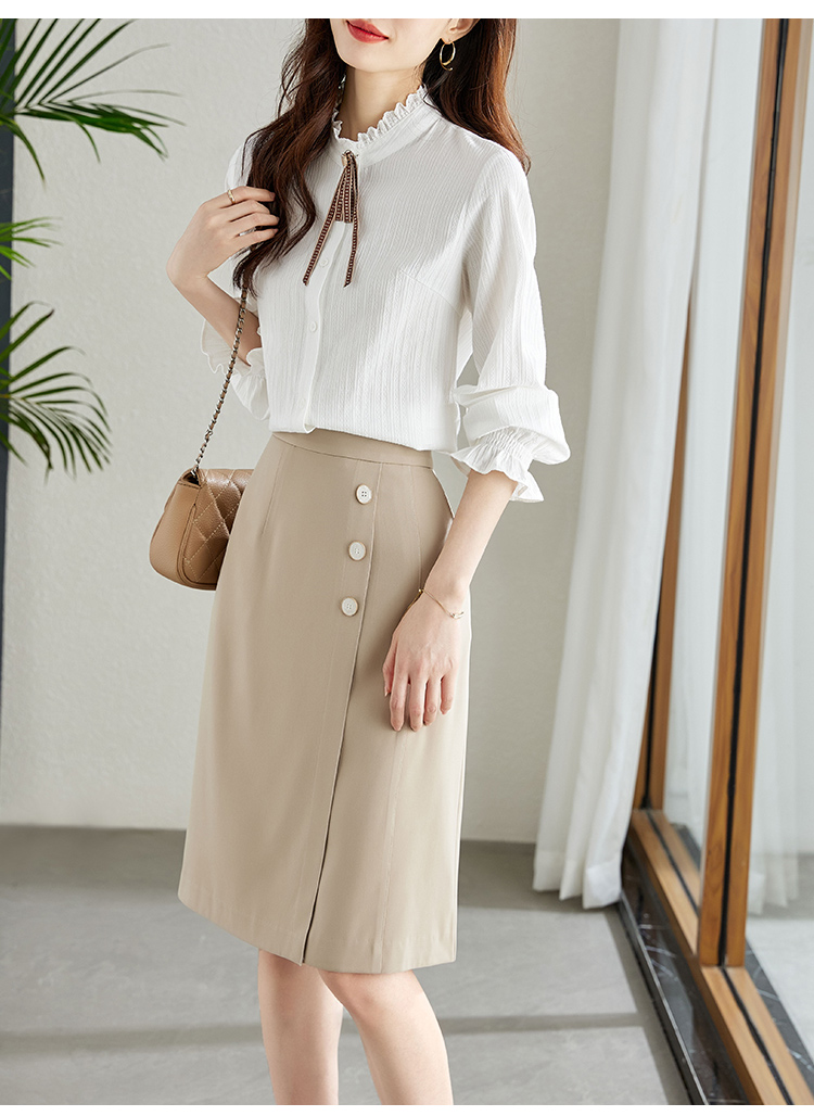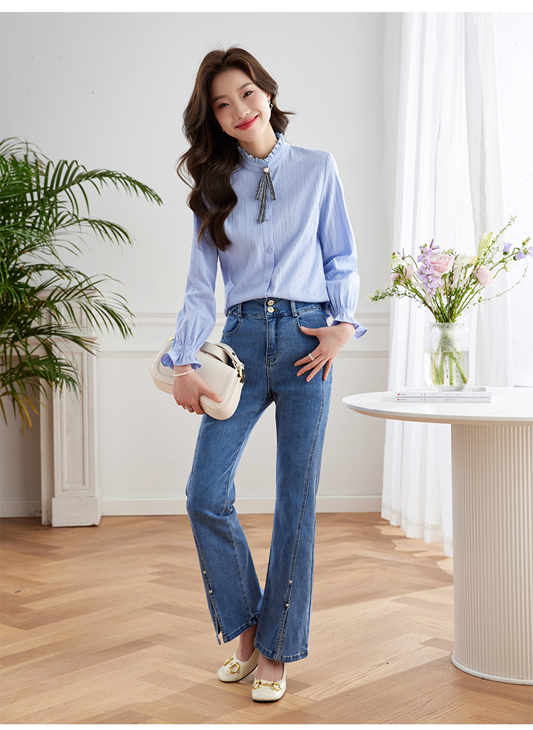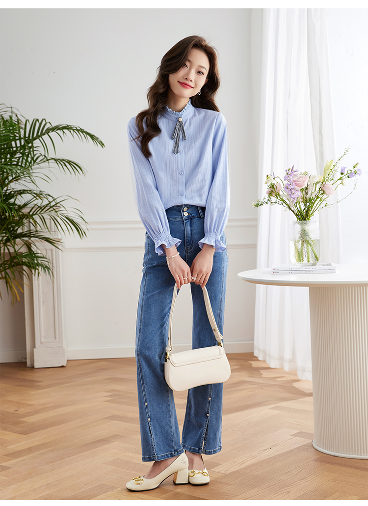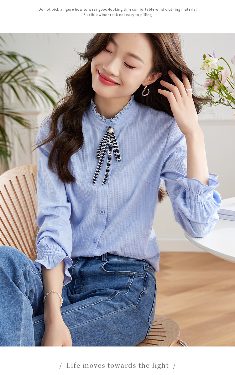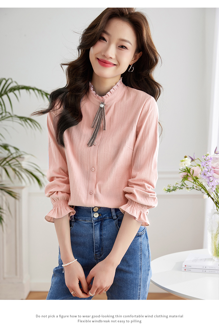 【专属特价】熙世界纯棉肌理衬衫设计感小众法式复古木耳边立领秋装上衣女新款