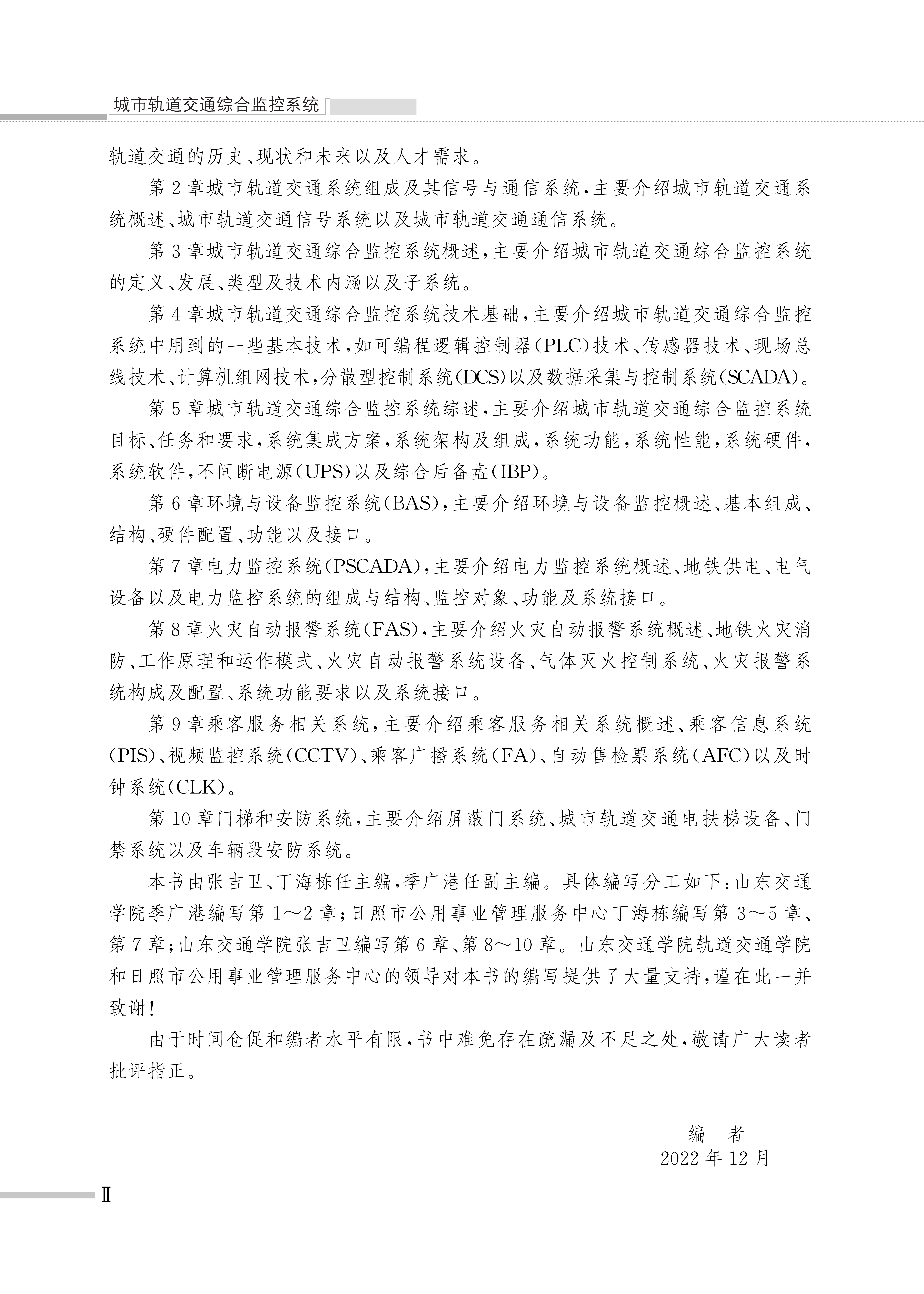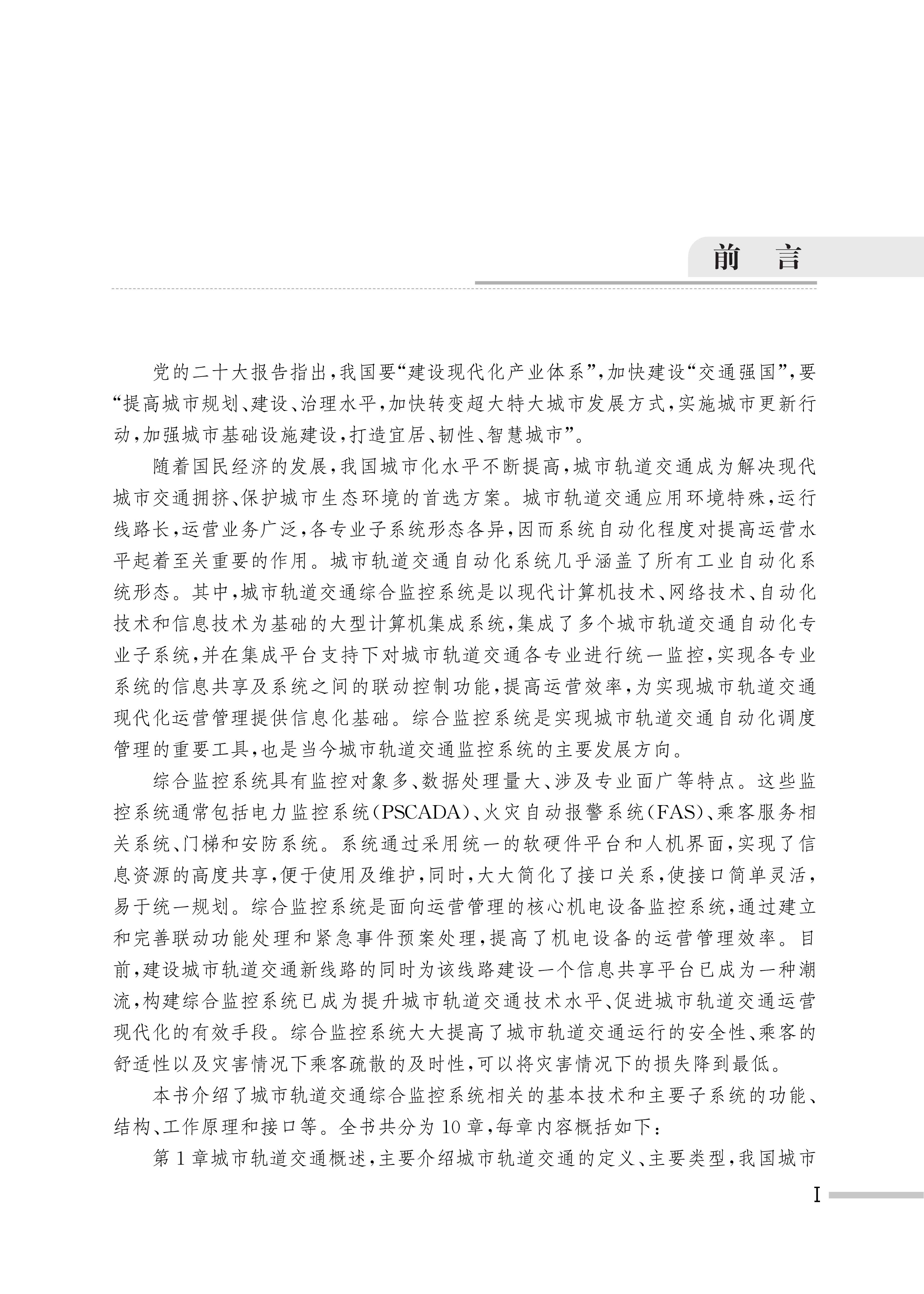 本书系统介绍了城市轨道交通综合监控系统的基本概念、基本技术和主要子系统的工作原理。内容包括:城市轨道交通概述、城市轨道交通系统组成及其信号与通信系统、城市轨道交通综合监控系统概述、城市轨道交通综合监控系统技术基础、城市轨道交通综合监控系统综述、环境与设备监控系统(BAS)、电力监控系统(PSCADA)、火灾自动报警系统(FAS)、乘客服务相关系统、门梯和安防系统。
