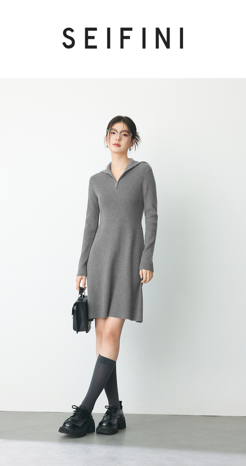 【严选】诗凡黎春时尚大翻领设计短款A摆连衣裙SF1290751