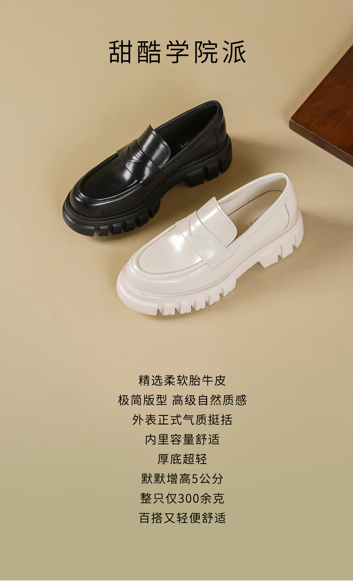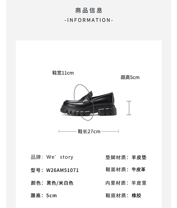 Westory2026年春季牛皮超轻厚底简约乐福鞋休闲通勤深口单鞋W26AM51071