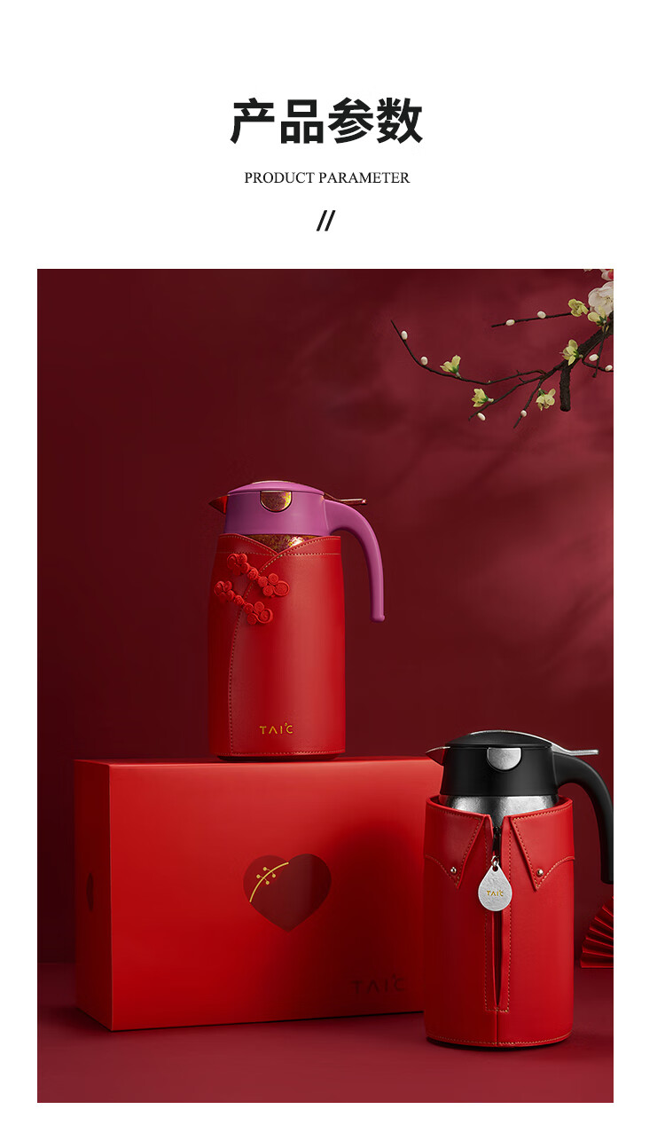 TAIC太可纯钛保温保冷大容量水壶套装家用暖水壶婚礼结婚新人礼品礼物
