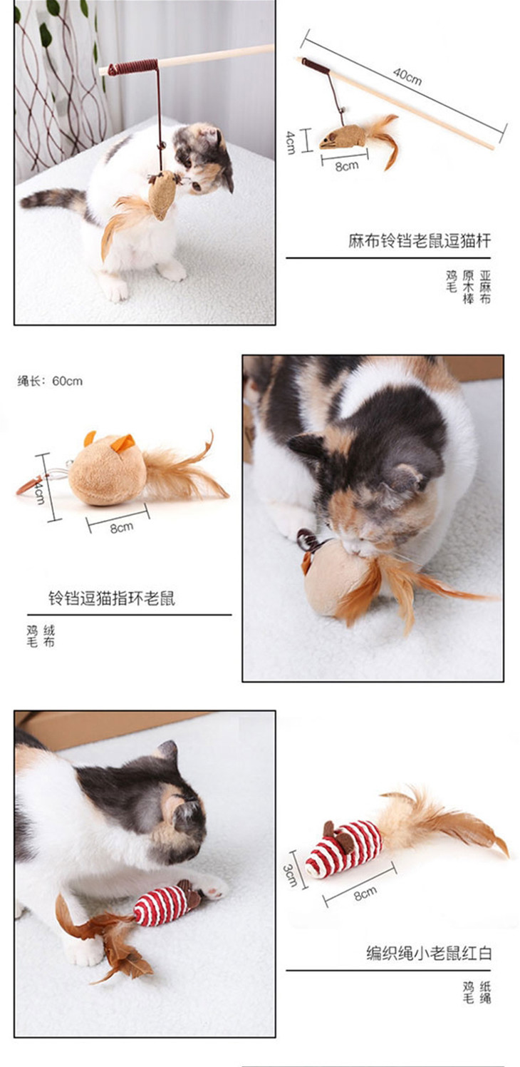 玲宠猫咪猫抓板七件套装仿真老鼠逗猫棒玩具互动益智玩具自嗨逗猫棒